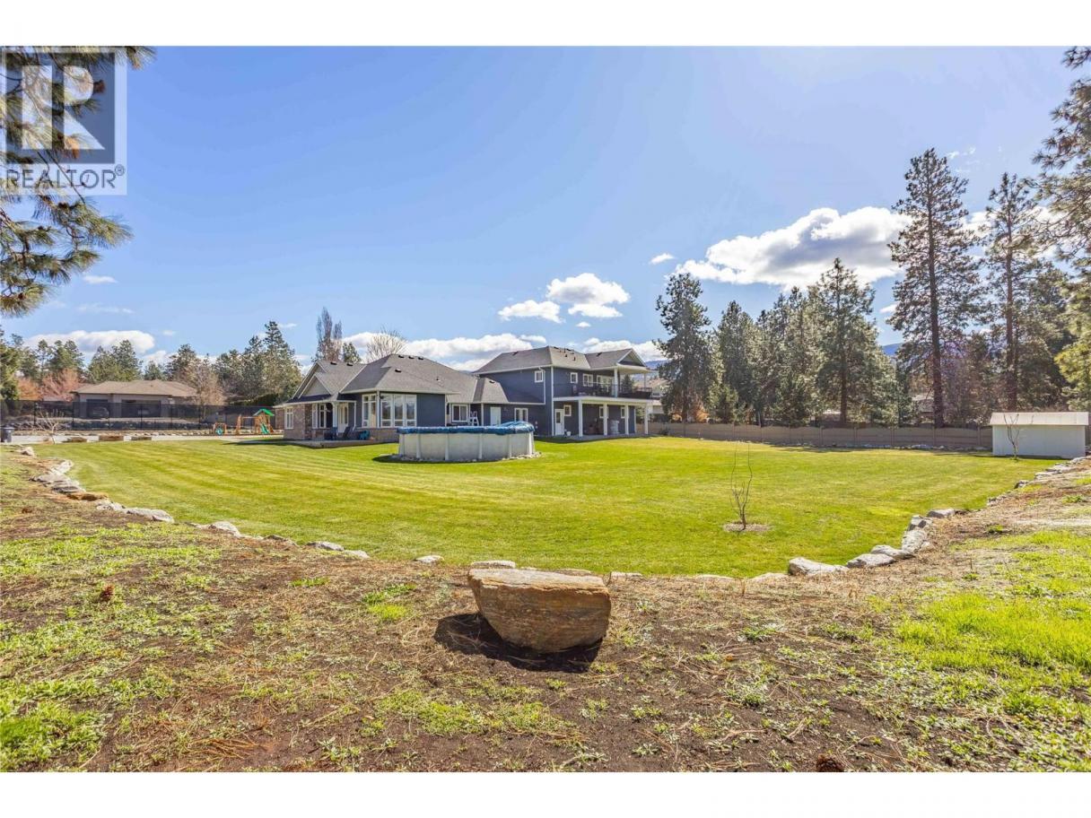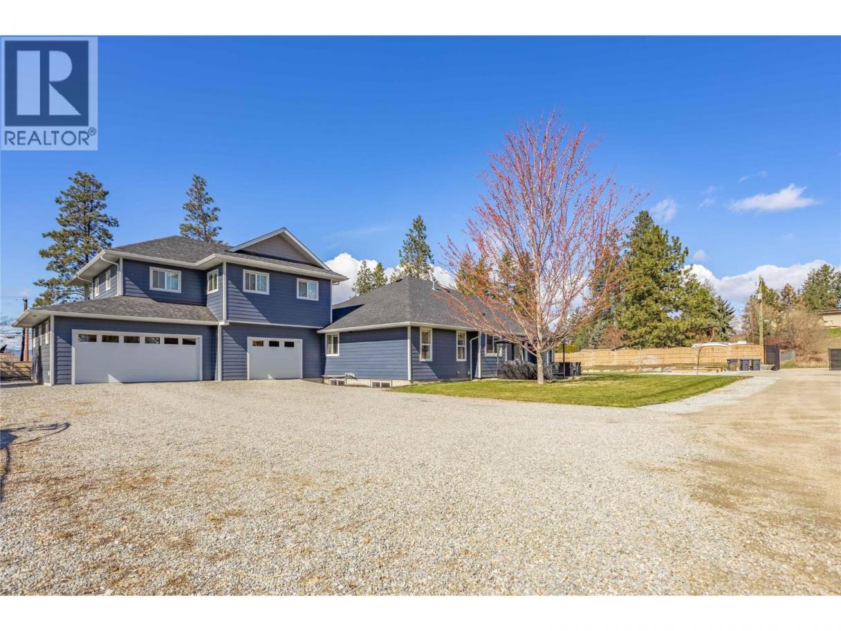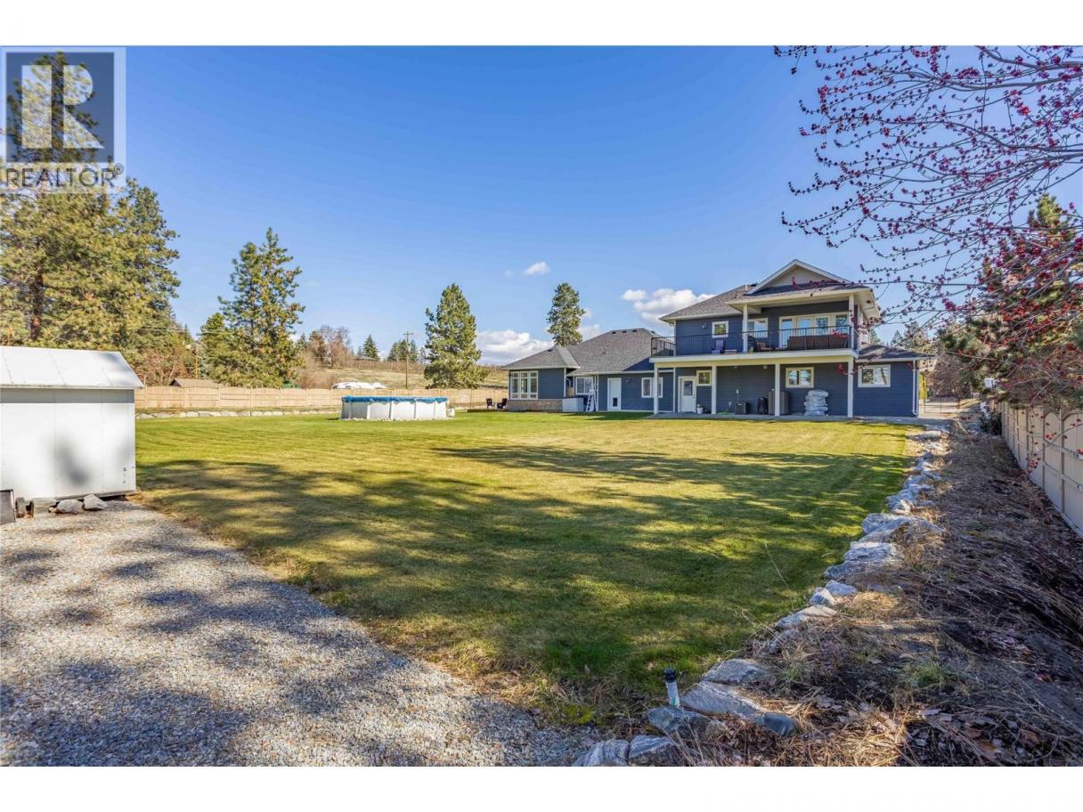 A rare opportunity to own a flat, square and fully fenced 1.09 acre property with huge renovated home! This 2002 built rancher with a full basement features an attached carriage style home which adds a triple garage and a LEGAL 2 bed apartment above! The main home has 3 bedrooms on the main floor, laundry and a chefs kitchen with high end 6 burner Wolfe range, commercial fan and Jenn Air fridge/freezer combo. The interior has a functional floor plan with formal dining room and new flooring throughout. The basement features another 2 bedrooms, large rec room and even a huge theatre room. The addition was constructed in 2023 and the living space above has 2 bedrooms and 1 bath at roughly 850sqft. It has its own electrical meter, laundry, kitchen and even a massive private balcony to take in the Kelowna Sunsets. The triple garage has so much space for your toys and tools. The main floor ""Gym"" area has a separate entrance to the exterior and would be perfect for a home based office. Many recent update with HVAC, flooring and much more! The Seller takes great pride in the lush lawns & garden areas during the summer. Hard side above ground pool is only a few years old. Underground irrigation system and parking for many vehicles! There are two entrances to this property, one off Larkspur and one off Water Rd so access is easy for trailers. A very well rounded property with so many uses! (id:6769)