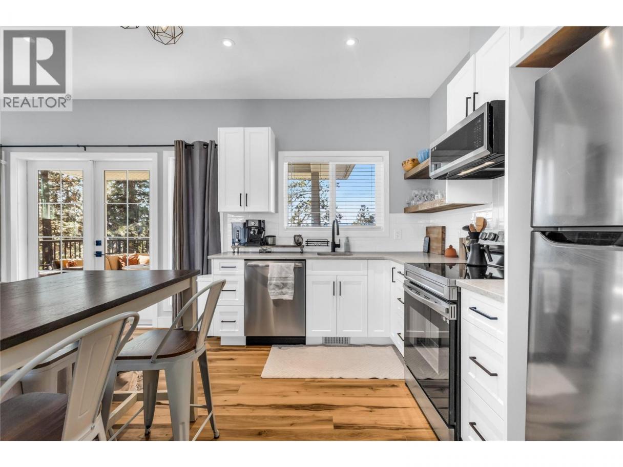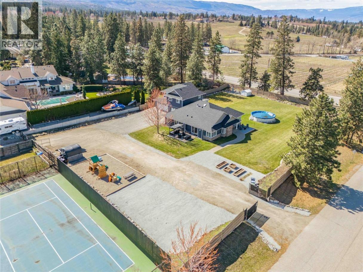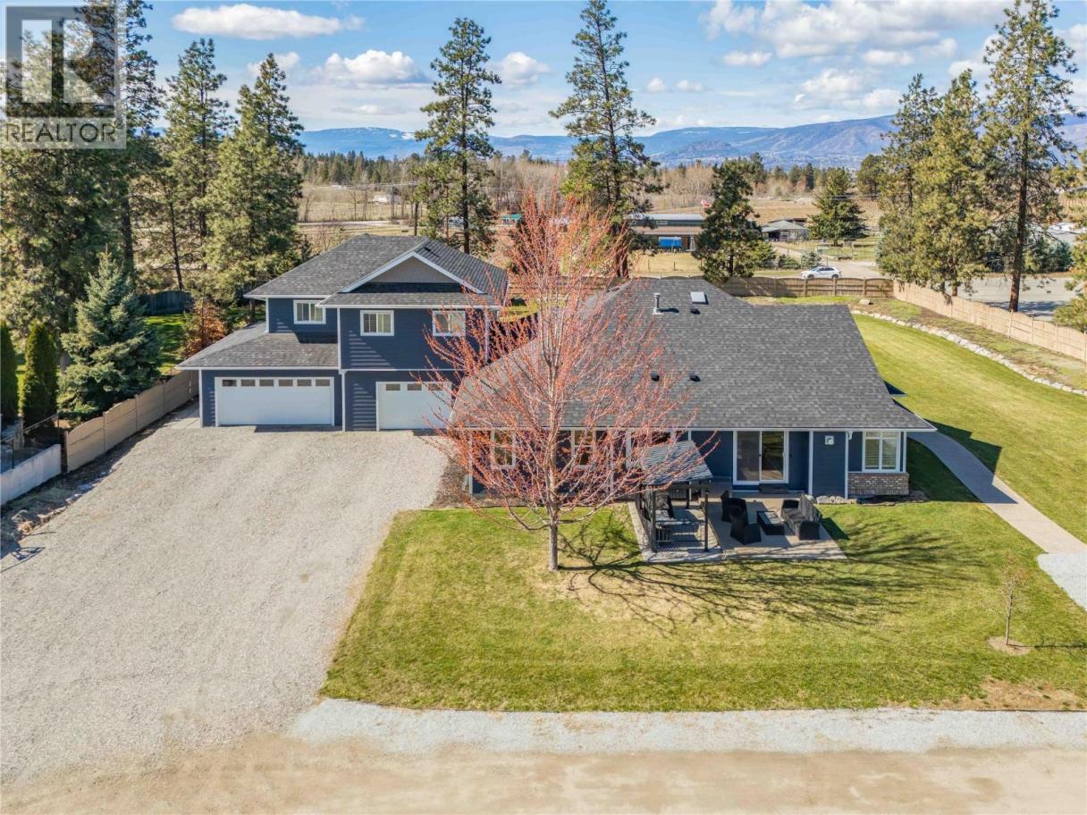 A rare opportunity to own a flat, square and fully fenced 1.09 acre property with huge renovated home! This 2002 built rancher with a full basement features an attached carriage style home which adds a triple garage and a LEGAL 2 bed apartment above! The main home has 3 bedrooms on the main floor, laundry and a chefs kitchen with high end 6 burner Wolfe range, commercial fan and Jenn Air fridge/freezer combo. The interior has a functional floor plan with formal dining room and new flooring throughout. The basement features another 2 bedrooms, large rec room and even a huge theatre room. The addition was constructed in 2023 and the living space above has 2 bedrooms and 1 bath at roughly 850sqft. It has its own electrical meter, laundry, kitchen and even a massive private balcony to take in the Kelowna Sunsets. The triple garage has so much space for your toys and tools. The main floor ""Gym"" area has a separate entrance to the exterior and would be perfect for a home based office. Many recent update with HVAC, flooring and much more! The Seller takes great pride in the lush lawns & garden areas during the summer. Hard side above ground pool is only a few years old. Underground irrigation system and parking for many vehicles! There are two entrances to this property, one off Larkspur and one off Water Rd so access is easy for trailers. A very well rounded property with so many uses! (id:6769)