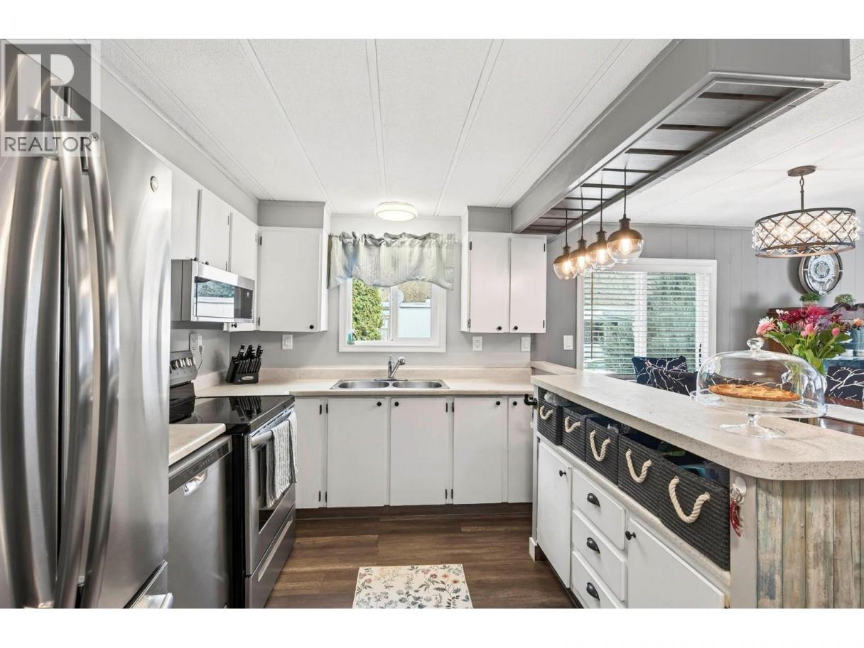 Welcome to Brock Estates, one of Kamloops' nicest parks. This well-maintained manufactured home is in the adult section. The bright and inviting interior features 2 bedrooms, a full 4-piece bathroom, and an open-concept kitchen, dining, and living area. There is also space for a laundry/mudroom, along with an addition that provides extra square footage, thoughtfully divided into two spacious rooms that are ideal for a den or office and a second living area. Additional highlights include central air conditioning, a covered sundeck, and a large yard with mature fruit trees and a garden. The home has seen several updates over the years, including windows, furnace, roof and fencing. This is one of the best-managed and best-maintained parks. Call and book your viewing! (id:6769)