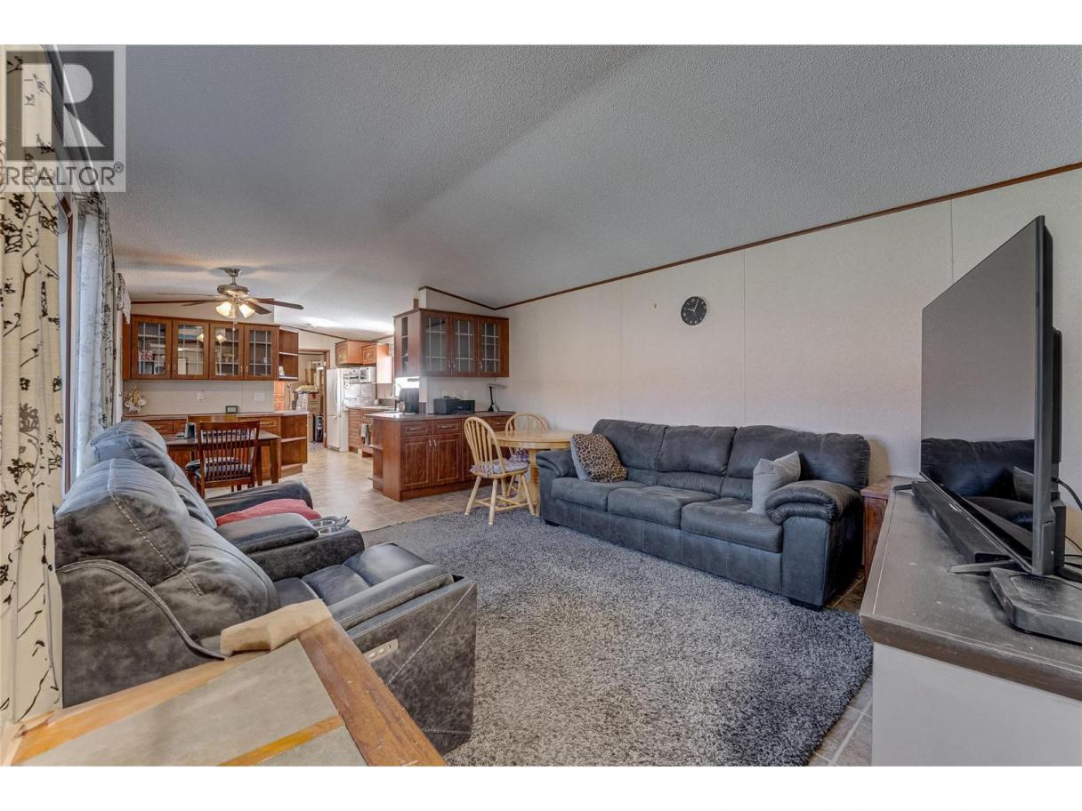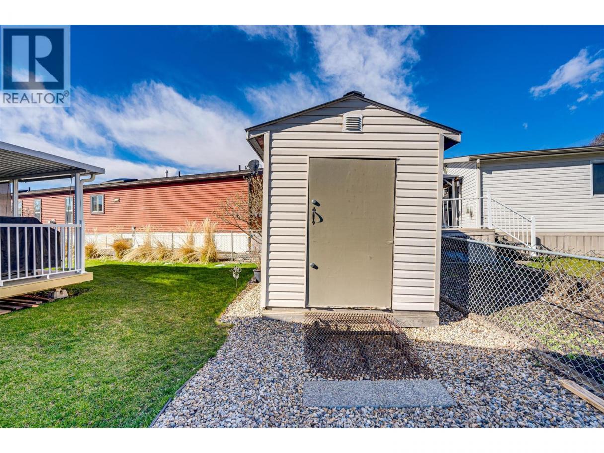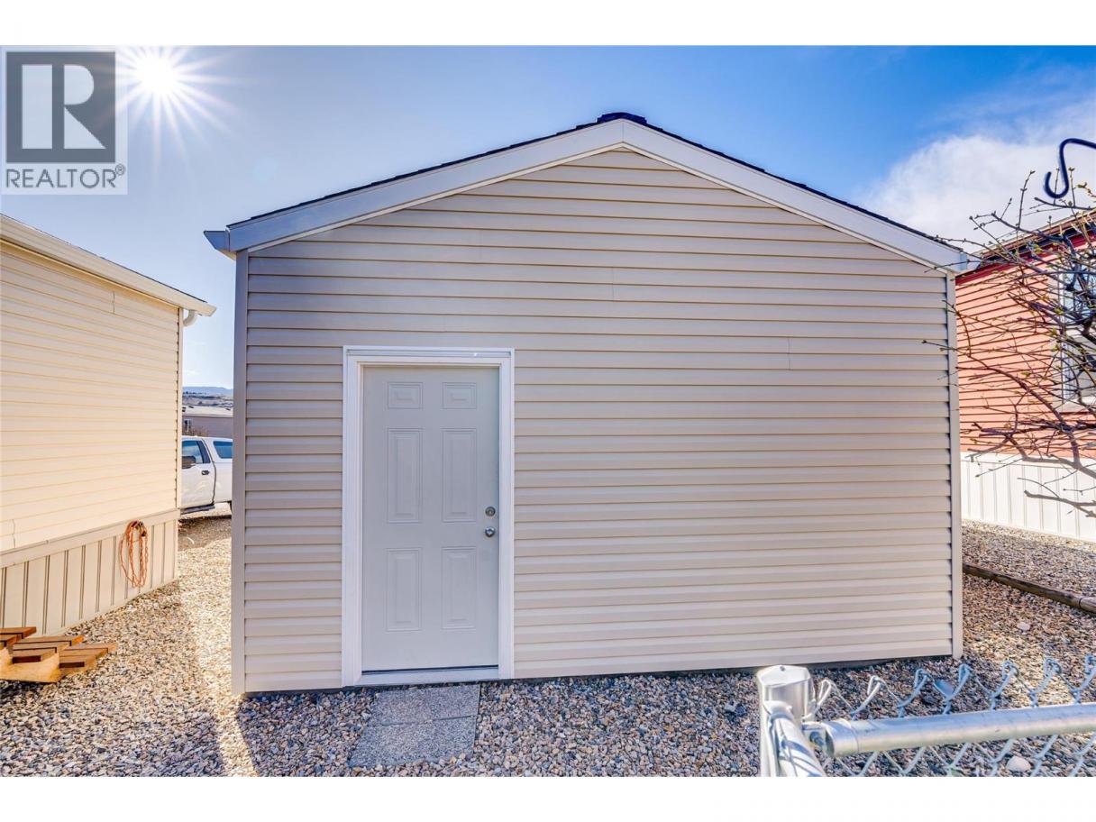 Welcome to Coyote Crossing Villas—where peaceful living meets everyday convenience. Ideally located just minutes from O’Keefe Ranch, Spallumcheen Golf & Country Club, and a short 10-minute drive to Vernon, this well-kept community offers a relaxed lifestyle in a beautiful setting. Tucked near the back of the park, this charming 2-bedroom, 2-bathroom home enjoys a quiet, private location—perfect for unwinding. The thoughtfully designed layout places the bedrooms at opposite ends, offering excellent privacy, while the open-concept living area creates a warm and inviting space for both everyday living and entertaining. The spacious kitchen is a standout feature, offering ample cabinetry and storage for all your needs. The primary bedroom includes a walk-in closet and a convenient 3-piece ensuite. Step outside to enjoy the large, covered deck along with a fully fenced yard. For those who value workspace and storage, this property shines with a brand-new garage, a 12’ x 8’ insulated shed/workshop with power, and an additional 6’ x 8’ shed. Parking is plentiful, with room for four vehicles and additional RV storage available within the park if needed. This pet-friendly community (with park approval) offers an affordable monthly fee that includes water, sewer, garbage, recycling, snow removal, and general maintenance. Whether you're looking to downsize, invest, or simply enjoy a quieter pace of life, this home offers exceptional value and comfort in a desirable location. (id:6769)
