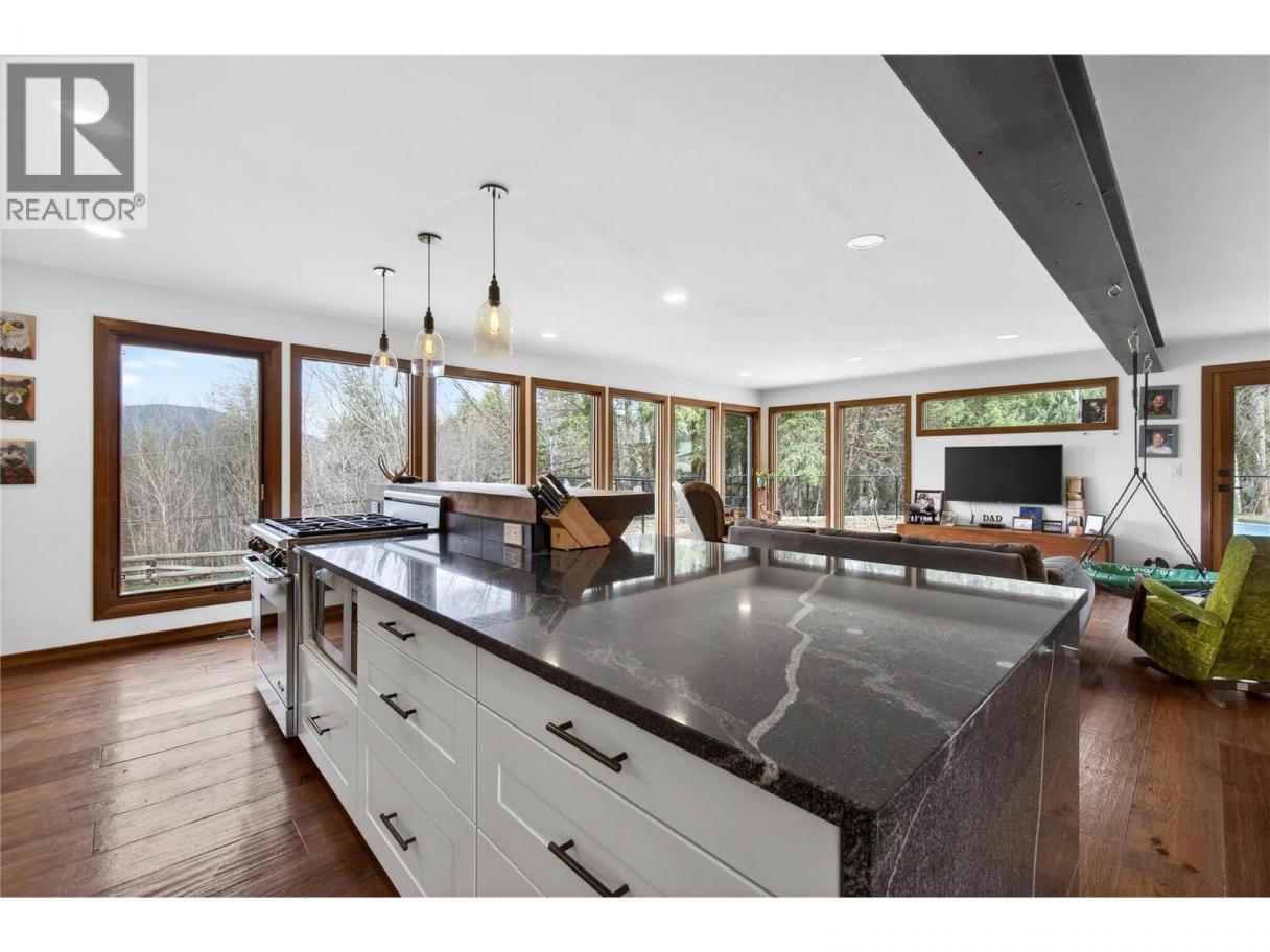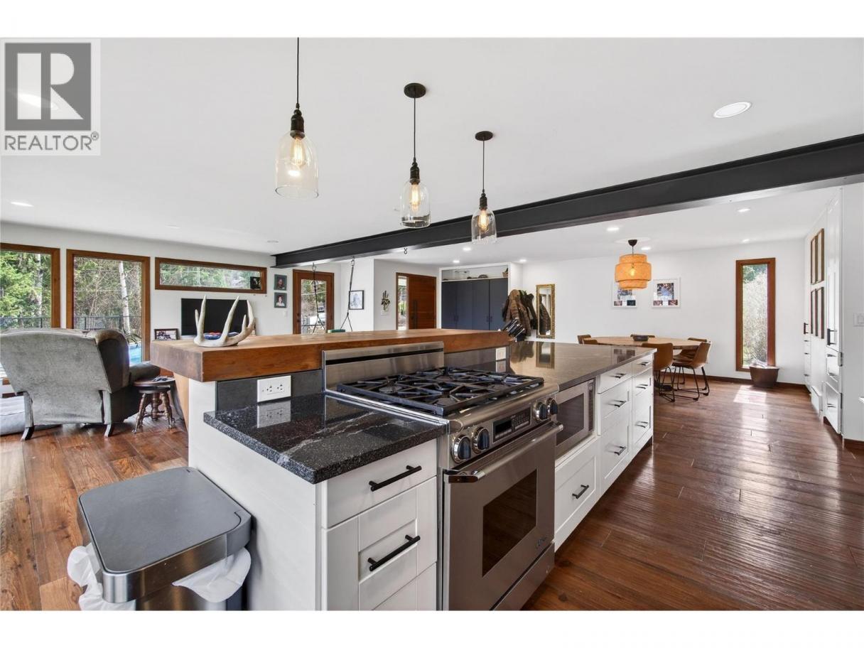 Set on nearly half an acre in town, this beautifully renovated rancher offers views and a functional layout. The main floor features hardwood flooring, 3 bedrooms and 2 bathrooms, including a comfortable primary bedroom with stunning on-suite and walk in closet. The open concept kitchen and living space has a cozy feel with large windows and lake and mountain views. The updated kitchen, has granite counters, gas range and plenty of room for entertaining. Downstairs, is an additional 1130 SF currently used as a rec room and full of potential for an additional bedroom or two and plumbed ready for a bathroom. Outside, enjoy the in-ground pool, shop, fire pit and ample parking for cars, boats or and RV. This is a rare chance to own this amazing property on old Auto Road! (id:6769)