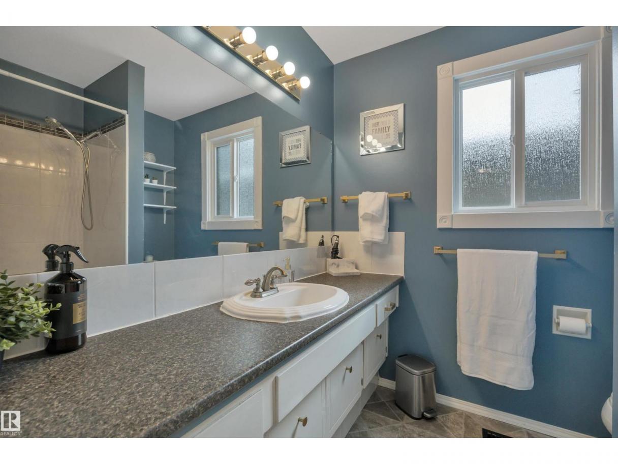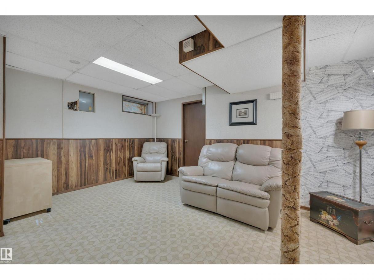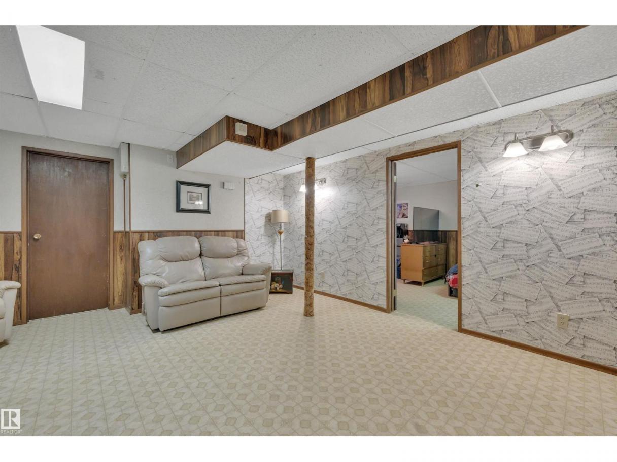 HUGE BACKYARD! RV PARKING! VINTAGE CHARM! Looking for room to park the RV, plant the garden, and still have space for the kids to play? This 1191 sq ft 4 bed, 2.5 bath bungalow has been well maintained & ready for new owners! Feat: newer shingles on the house, vinyl windows, fresh paint, HWT, covered deck, & more! Classic main floor layout w/ connected living & dining room area; terrific natural light flowing throughout! Spacious kitchen w/ wood cabinets, ample counter space & newer S/S fridge. Three bedrooms up inc the primary bed w/ 2 pce ensuite, 4 pce bath, & linen storage. Your basement is filled with 70s vibes and character, with a terrific family room for movie night or jamming to your favourite tunes & rec room for the board games or pool table. 4th bedroom, 3 pce bath, and laundry / storage room. Incredible backyard w/ alley access for the rear RV storage, 22' x 24' garage, covered deck for summer BBQs & hangouts. A great property on a quiet street; a must see! (id:6769)