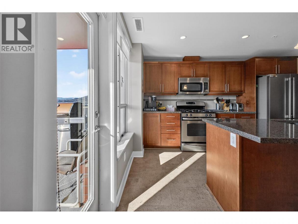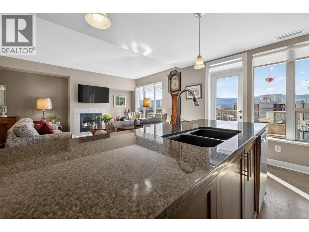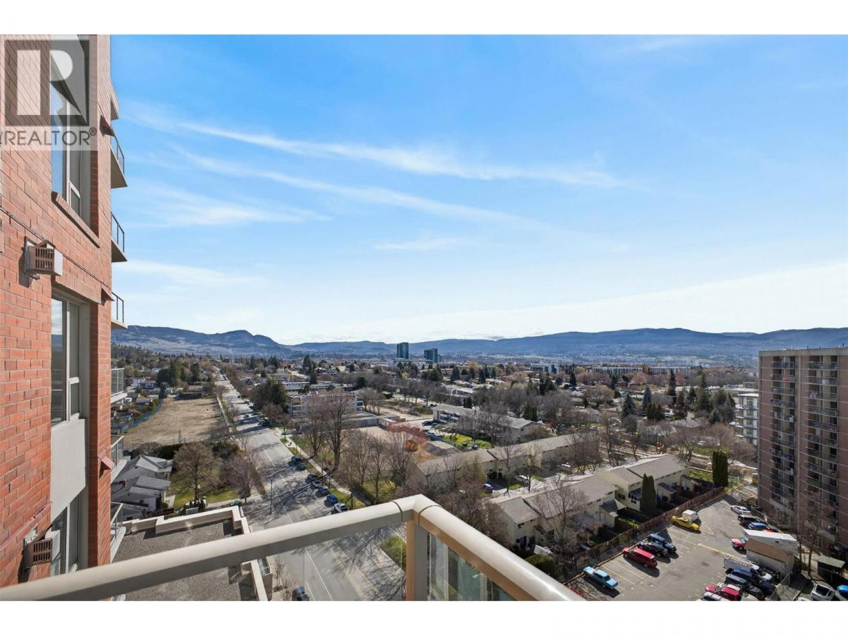 There’s nothing quite like the high standard of condo living that Centuria offers in the heart of Kelowna! This 11th-floor corner suite captures a 180-degree southwest view over the lake, city, and mountains, with natural light pouring in from multiple exposures throughout the day. With nearly 1,500 sq ft, the layout is open and functional, featuring 2 bedrooms with huge walk-in closets, a functional den, and 2 full bathrooms. The kitchen is designed for everyday ease and entertaining, with granite countertops, a large sit-up island, and newer stainless steel appliances. The main living area features cork flooring, with carpet in the bedrooms and tile in the bathrooms for a balanced, comfortable finish. Located just minutes to all the amenities one needs: a grocery store downstairs, downtown dining, shops and entertainment - everything is within easy reach whether you walk, bike, or drive. Residents enjoy access to an outdoor pool, hot tub, sauna, car wash, and a fitness facility. This condo also includes two secured underground parking stalls and a storage locker. Centuria is also pet friendly! (id:6769)