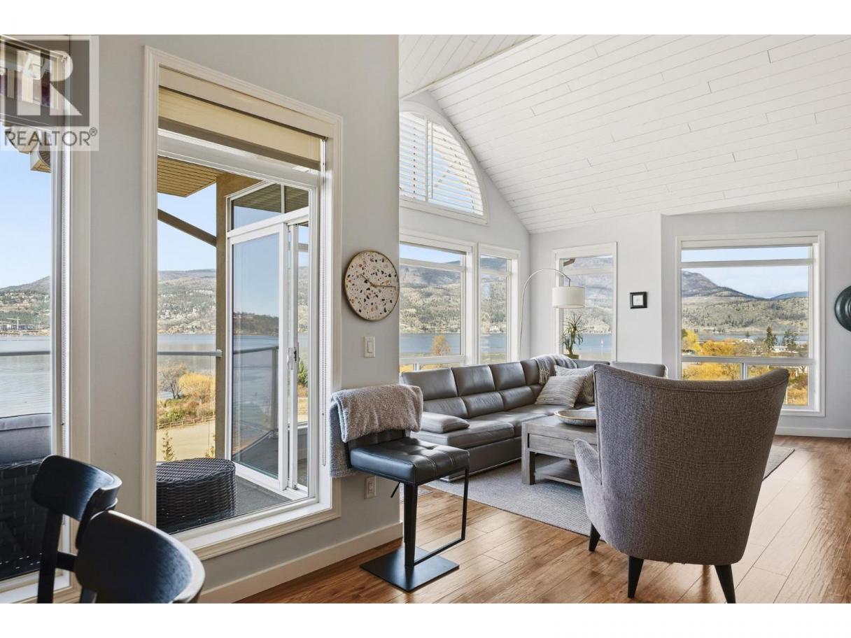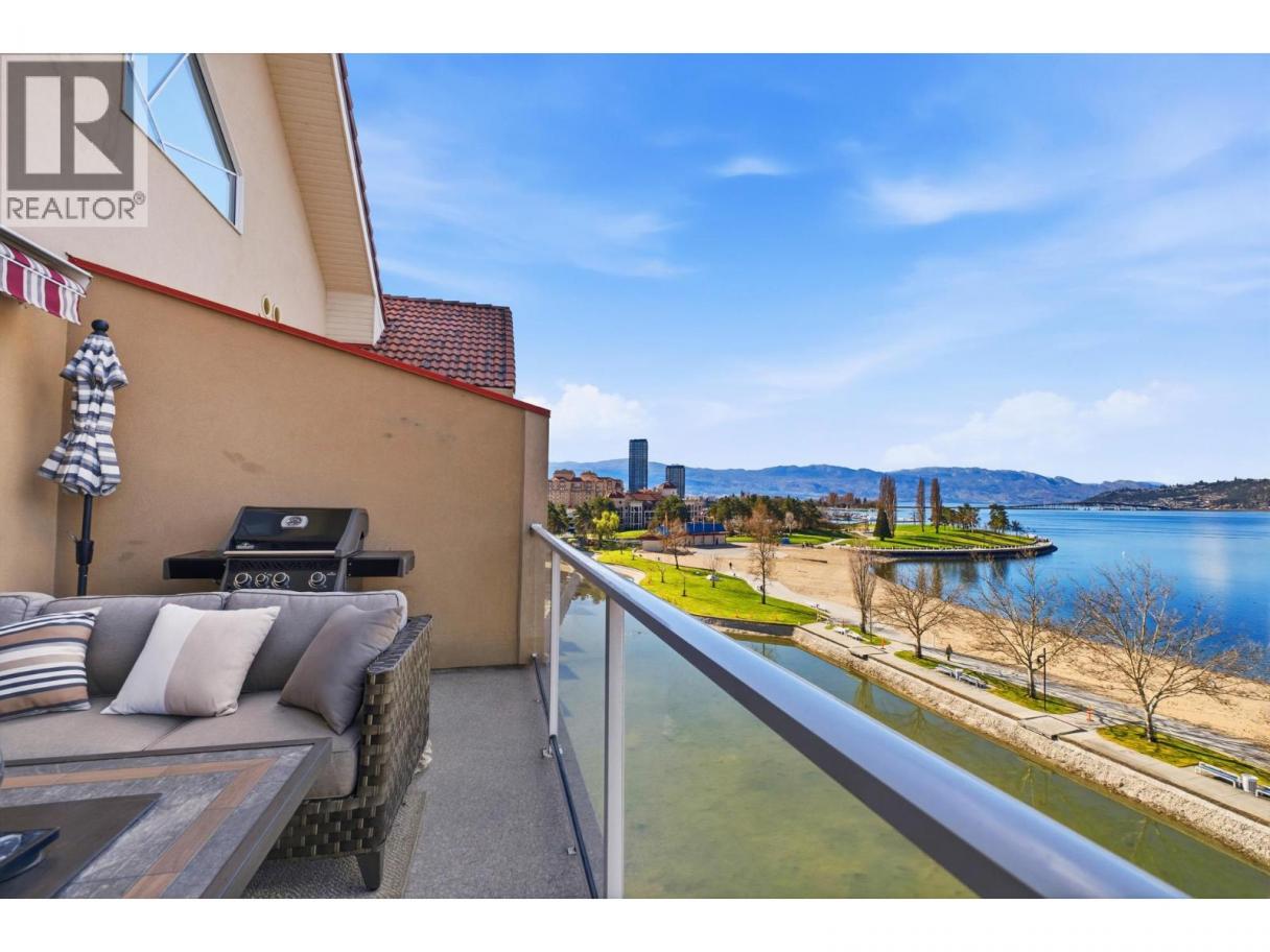 Enjoy close-up waterfront views of Okanagan Lake from this beautifully appointed 2-bedroom, 3-bathroom + loft condo in Discovery Bay. Perfectly positioned along the water, the lagoon offers direct lake access—bringing the Okanagan lifestyle right to your doorstep. Set in the heart of downtown, you’re just steps to sandy beaches, the scenic boardwalk, and moments from Prospera Place, along with an array of restaurants, cafes, shops, and parks. The bright and airy layout features soaring ceilings and oversized windows, flooding the space with natural light while showcasing the lake. The open-concept kitchen flows into the living and dining areas—perfect for entertaining or unwinding. The primary bedroom offers a relaxing retreat. The second bedroom is complemented by a full bathroom and a versatile loft—perfect for a home office or additional living space. Just bring your suitcases because this home features designer furnishings included for your convenience. Resort-style amenities include indoor and outdoor pools, hot tub, fitness center, billiards and event room, and beautifully maintained grounds. Whether as a full-time residence, vacation getaway, or investment, this is effortless lock-and-leave living in one of Kelowna’s most sought-after waterfront communities. This home has been lovingly maintained with fresh paint, both heat pumps replaced, and a state of the art water leak monitoring system for peace of mind, complete with auto shut off. Please view the virtual tour. (id:6769)