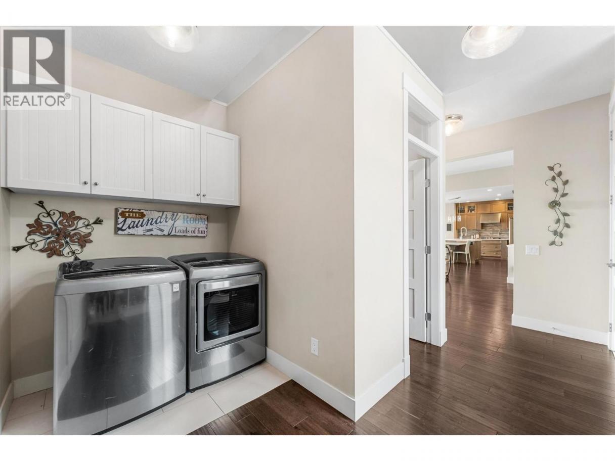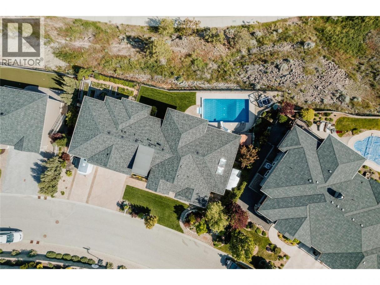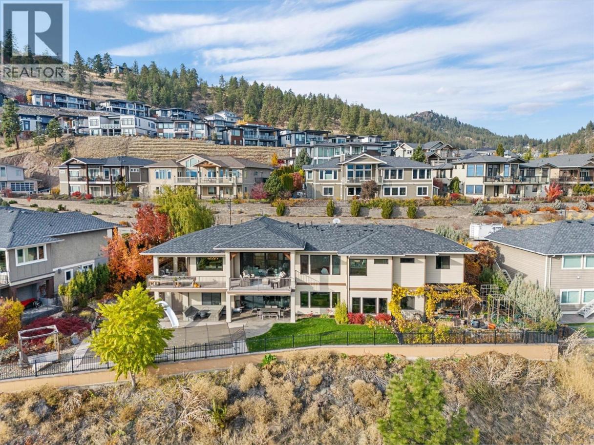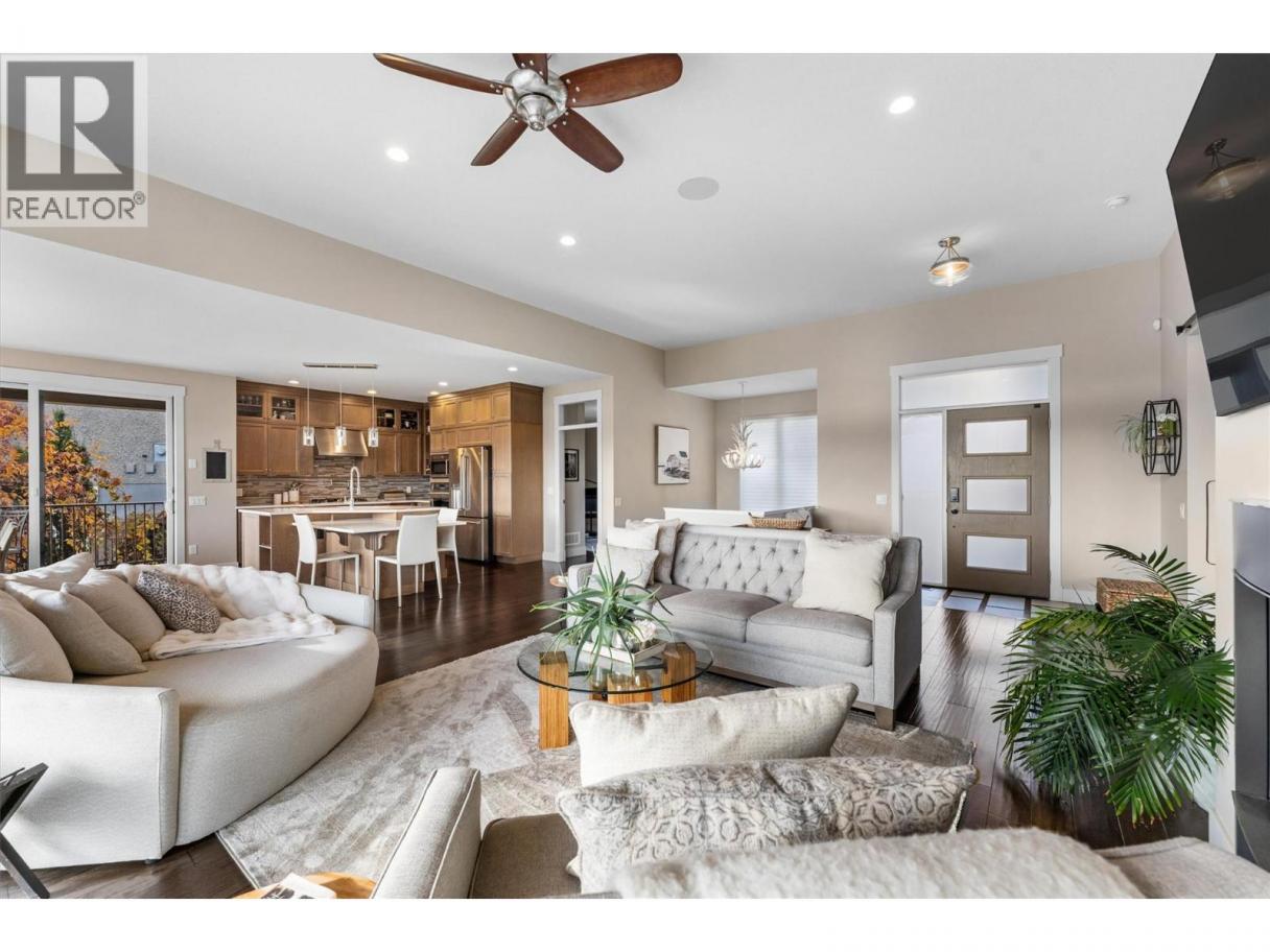This meticulously crafted walkout rancher offers the best of Okanagan living. A wall of windows frames views of Dilworth Mountain, the city skyline, and Okanagan Lake. The open-concept main level features hardwood floors, 11’ ceilings, and a wraparound sun deck perfect for morning coffee or evening wine. A gas fireplace and dual sliding doors with phantom screens enhance the bright, open feel. The chef’s kitchen is outfitted with GE Cafe appliances, a gas stove with pot filler, quartz counters, and a two-tiered island. Soft-close white oak cabinetry, open shelving, and hidden organizers elevate the functionality. The dining space includes built-in bench seating and access to the deck and BBQ area. The primary suite showcases city views, a spa-inspired ensuite, soaker tub, glass shower, heated tile floors, dual vanities, and a walk-in closet with custom built-ins. A second bedroom or office and powder room round out the main floor. Downstairs offers a bright rec room, wet bar, theater room, two bedrooms, and a 5-piece bath. Outside, enjoy your private oasis: in-ground heated pool, hot tub and a fully fenced yard. Other features include radiant in-floor heating on the lower level, Sonos speakers throughout, Navien instant hot water, triple car garage and multi-zone irrigation. A 1-bed legal suite with private entrance adds flexibility for guests or family. Close to downtown, bus routes and Knox Mountain hiking and biking trails, this home blends comfort, luxury, and location. (id:6769)