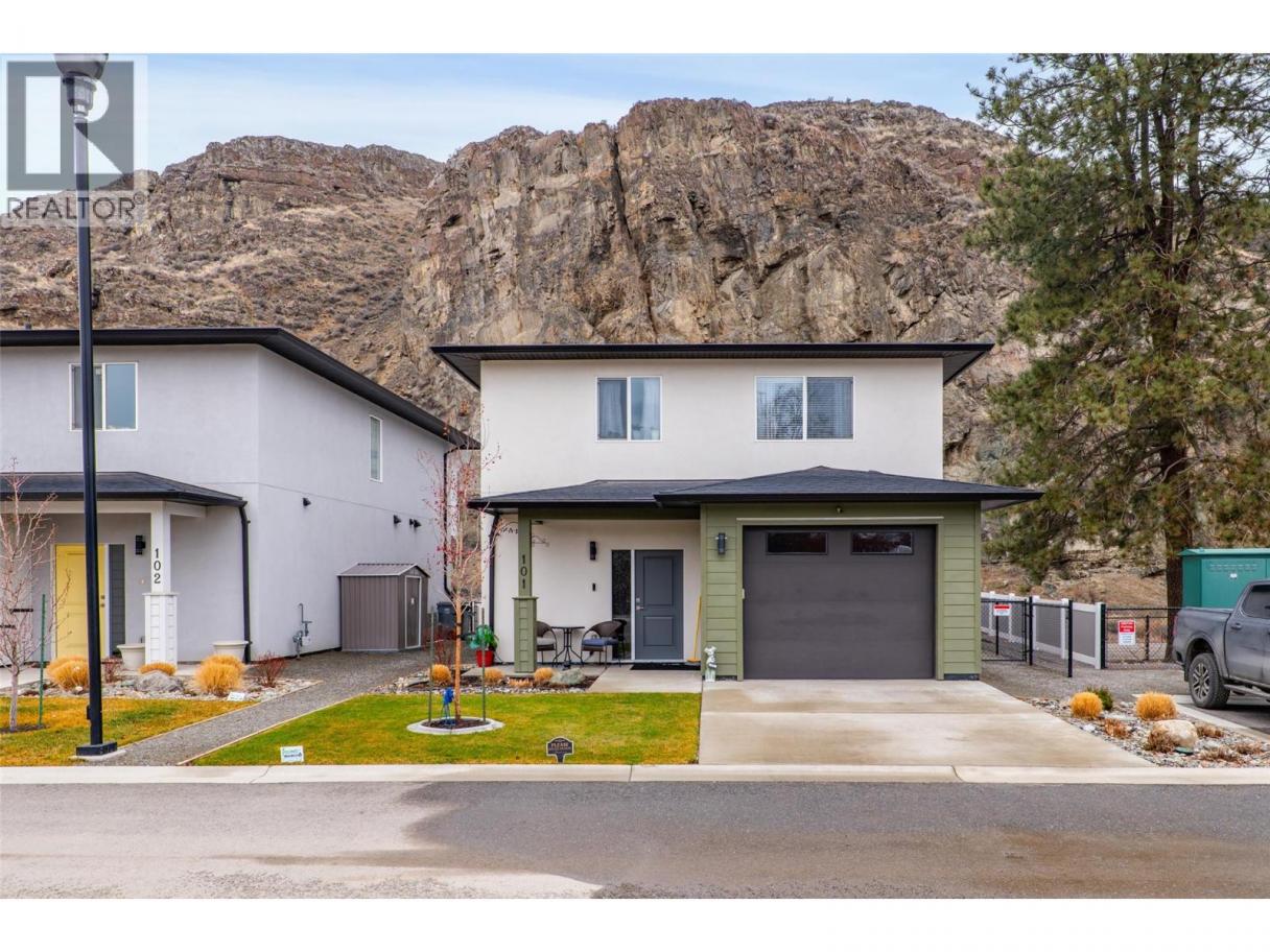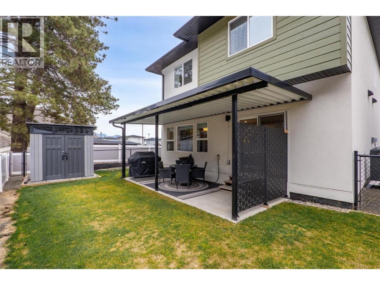 Welcome to Catalpa Community—where lifestyle meets low-maintenance living. Surrounded by scenic trails, a championship golf course, and Kamloops’ renowned 18km Rivers Trail, this location is perfect for staying active year-round. Residents also enjoy an on-site park with picnic areas and the city’s only 5km private walking loop. This well-designed, freestanding home offers 1,790 sq ft of comfortable living with 3 bedrooms and 2.5 bathrooms—ideal for young professionals or downsizers seeking space without the upkeep. The open-concept layout showcases quartz countertops throughout, a sleek multi-coloured LED electric fireplace, and modern, high-end finishes. Step outside to a private, fully fenced yard with a patio off the living room, plus the convenience of a single-car garage. The primary suite features a generous walk-in closet and ensuite with double sinks. Thoughtful, strata-approved upgrades include a covered pergola and backyard storage shed. A rare bareland strata opportunity offering privacy, style, and ease of living. (id:6769)
