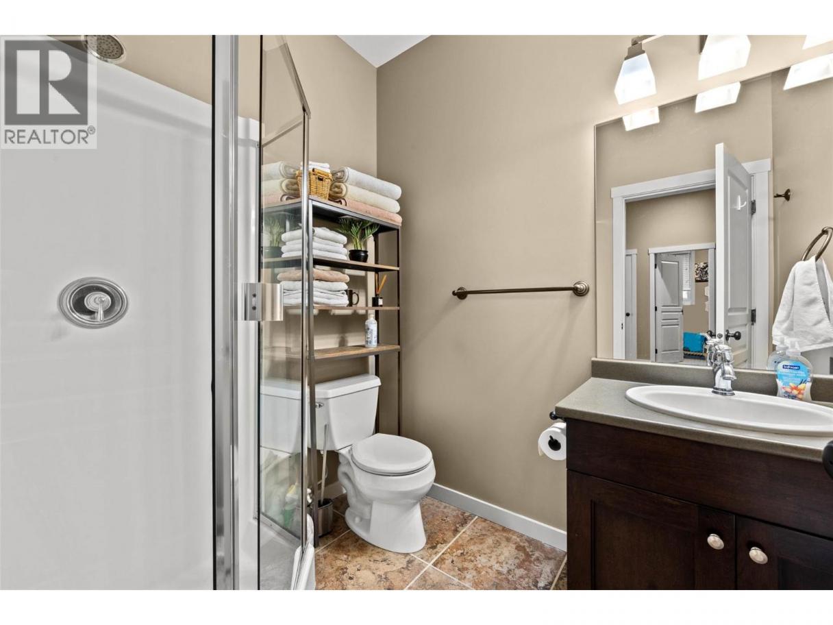 Breathtaking panoramic views, and refined living are offered in this beautifully maintained Golf Ridge, corner unit townhome. The main level features a bright, open-concept layout with a generous kitchen complete with granite countertops, a spacious dining area, and an inviting living room that opens onto a large sundeck—perfect for enjoying the scenery from every angle.Two bedrooms are located on the main floor, including a spacious primary retreat positioned to take in the view, complete with a walk-in closet and full ensuite. This level also includes an additional bathroom, convenient laundry, and direct access to the double car garage. Comfort and efficiency are enhanced by a geothermal heating and cooling system installed in 2022($19k). The walkout lower level provides exceptional versatility, featuring a third bedroom, full bathroom, and a large recreation room ideal for entertaining or creating a gym, media space, hobby area, or wine room. A private patio extends the living space outdoors and is perfect for quiet mornings or relaxing evenings.Immaculate and move-in ready, this home is situated in a premium location. Residents of Golf Ridge enjoy access to an amenity building for social gatherings, a charming dipping pool, and excellent proximity to golf courses, restaurants, grocery shopping and walking trails. (id:6769)