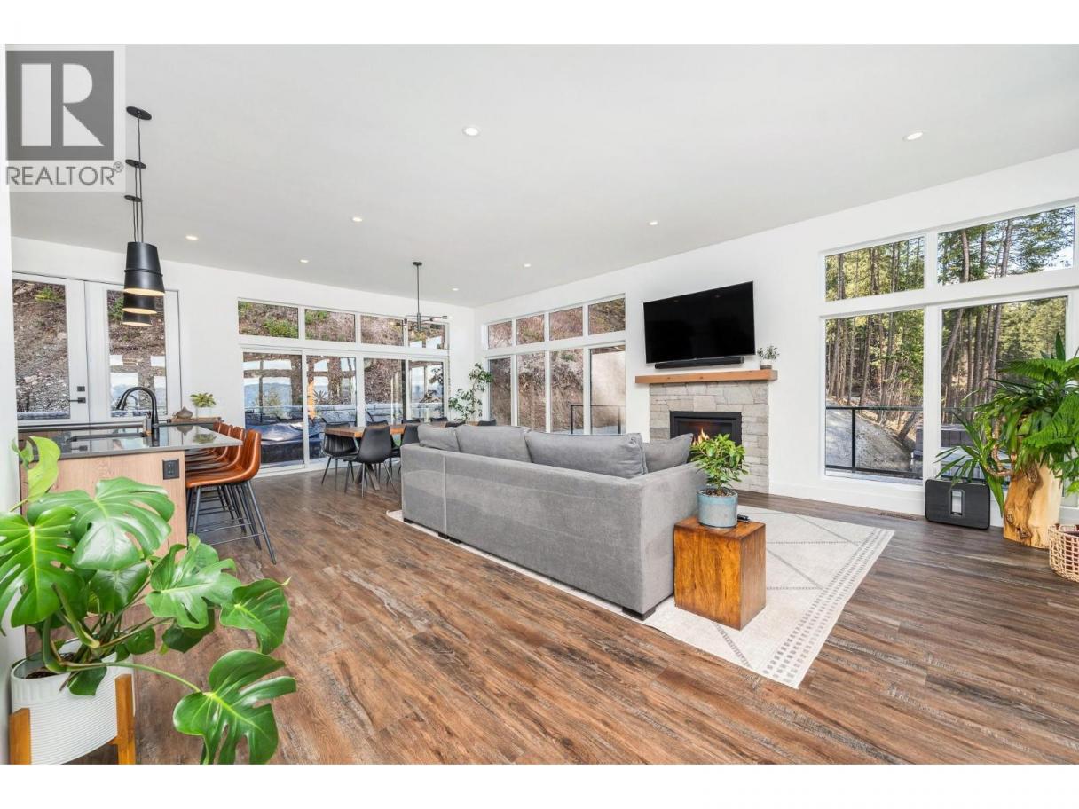 A custom-built home by Richbuilt Homes, offering exceptional quality and features throughout. Set on 7.41 private acres overlooking Swan Lake and the BX Valley. The main living area features 2 bedrooms, 2 bathrooms, tall ceilings, and large windows that capture the spectacular valley views. A large deck extends along two sides of the home, offering multiple vantage points to enjoy the setting, including a dedicated outdoor TV setup and lounge space designed for relaxing or entertaining. The kitchen is designed for both everyday living and entertaining, with direct access to a large rear patio and an indoor-outdoor serving bar. The lower level includes a fully self-contained legal suite, including laundry, and a private outdoor gazebo/lounge area—ideal for extended family or income potential. The outdoor features are a true highlight of the property. The home offers a wraparound deck and large rear patio, along with a separate custom-built entertaining area featuring a covered timber-frame structure, built-in smoker/BBQ, concrete bar, wired setup, and a firepit seating area positioned to take in the views. The oversized, over-height heated garage/shop is a key feature, offering excellent functionality, including 11.5’ ceilings for vehicles, storage, or projects. Infrastructure is also in place for future expansion, including a prepared plunge pool area. A rare opportunity combining lifestyle, flexibility, and panoramic views in a sought-after Vernon rural setting. (id:6769)
