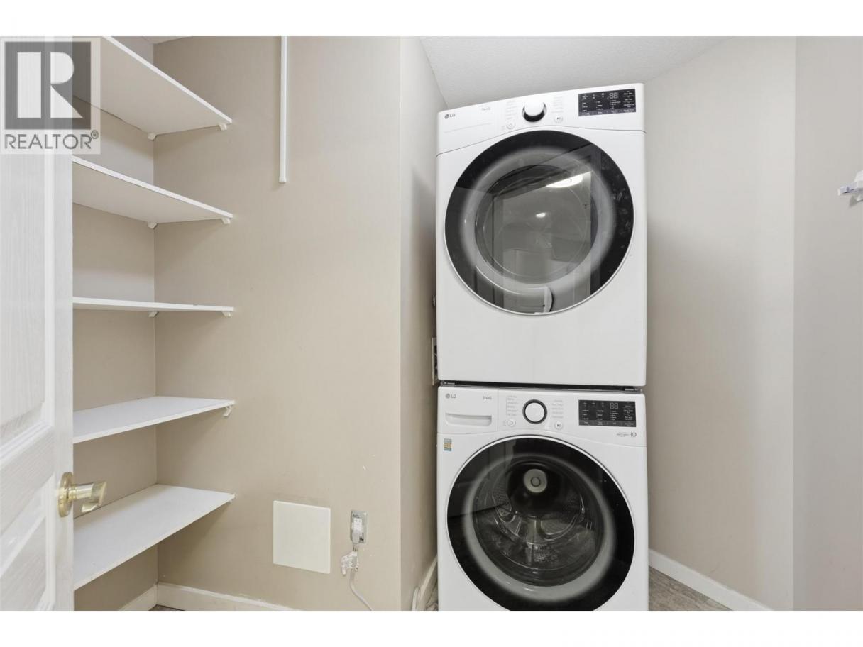 Spacious 1 bedroom condo in a quiet complex located steps from downtown amenities, Riverside park, professional offices and much more! Walk through the main entry of this unit and you will find a bright open plan with a large living and dining room space which can accommodate good sized furniture. Off of the living room there is a large covered deck that is east facing for morning sun. The kitchen Is a nice size with stainless steel appliances and a laundry room off of the main entry which also doubles as storage and pantry area. Down the hall you will find multiple closets and a large bathroom with an updated tub and flooring. The bathroom has a second access to the bedroom. Great for privacy! The bedroom has new carpeting and is huge with lots of room for a king sized bed and extra furniture. Other features of this property include updated paint throughout, a large storage locker (6’6x8’6) and one secure underground parking spot. The building itself has great street parking for guests along with visitor stalls. Very nice unit with lots to offer for a one bedroom home. Easy to show and quick possession possible. (id:6769)