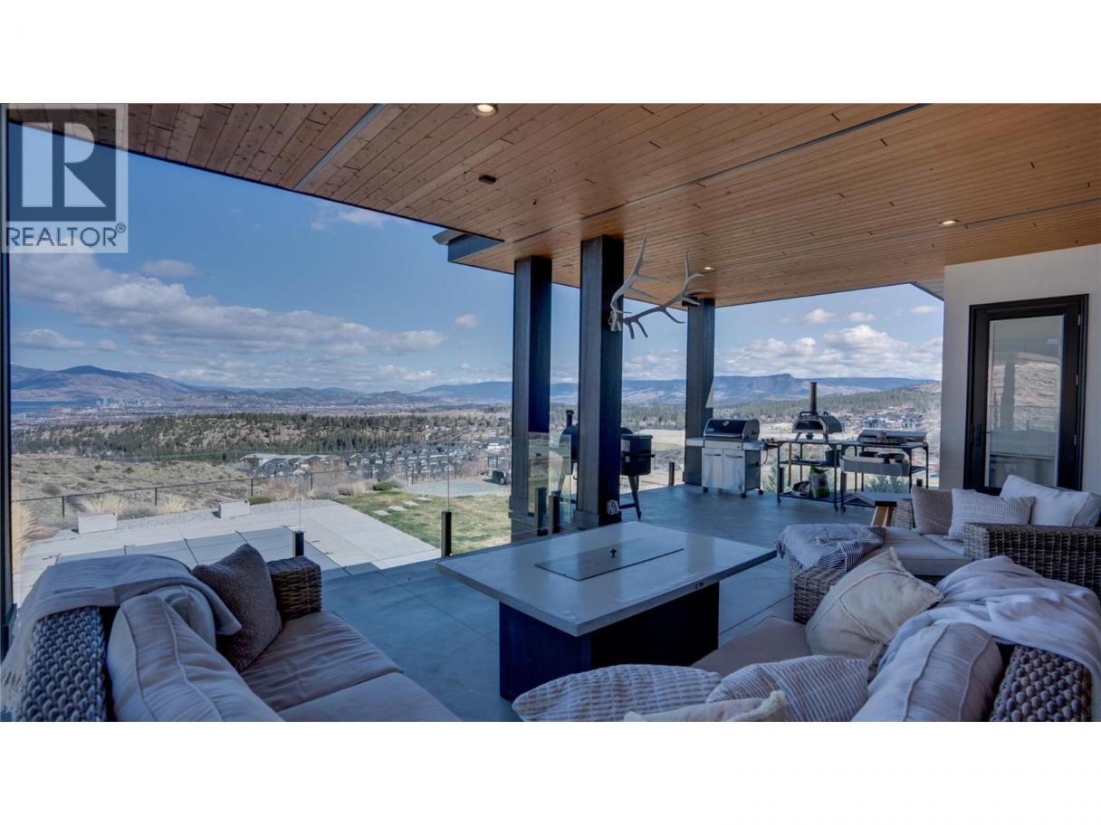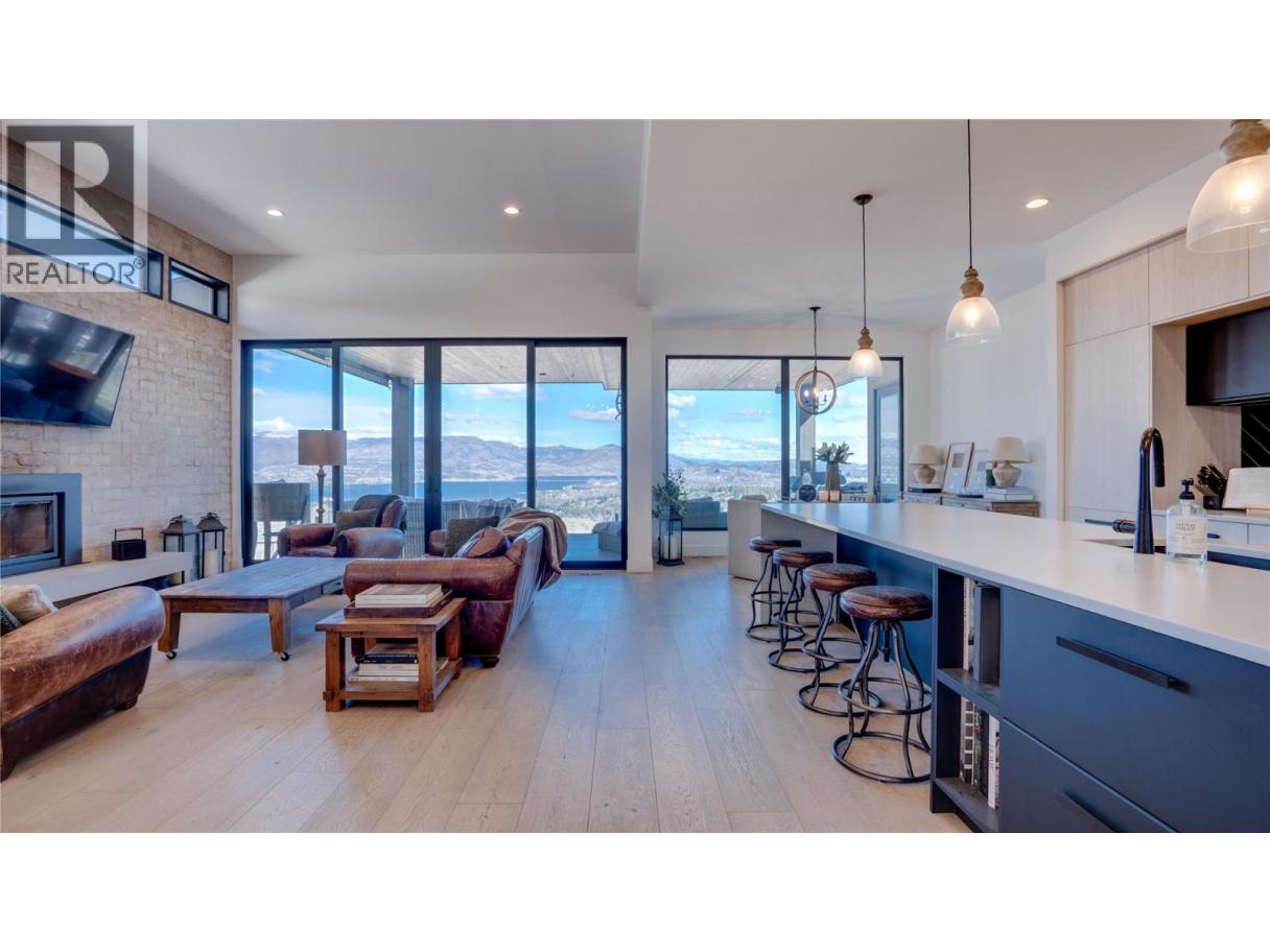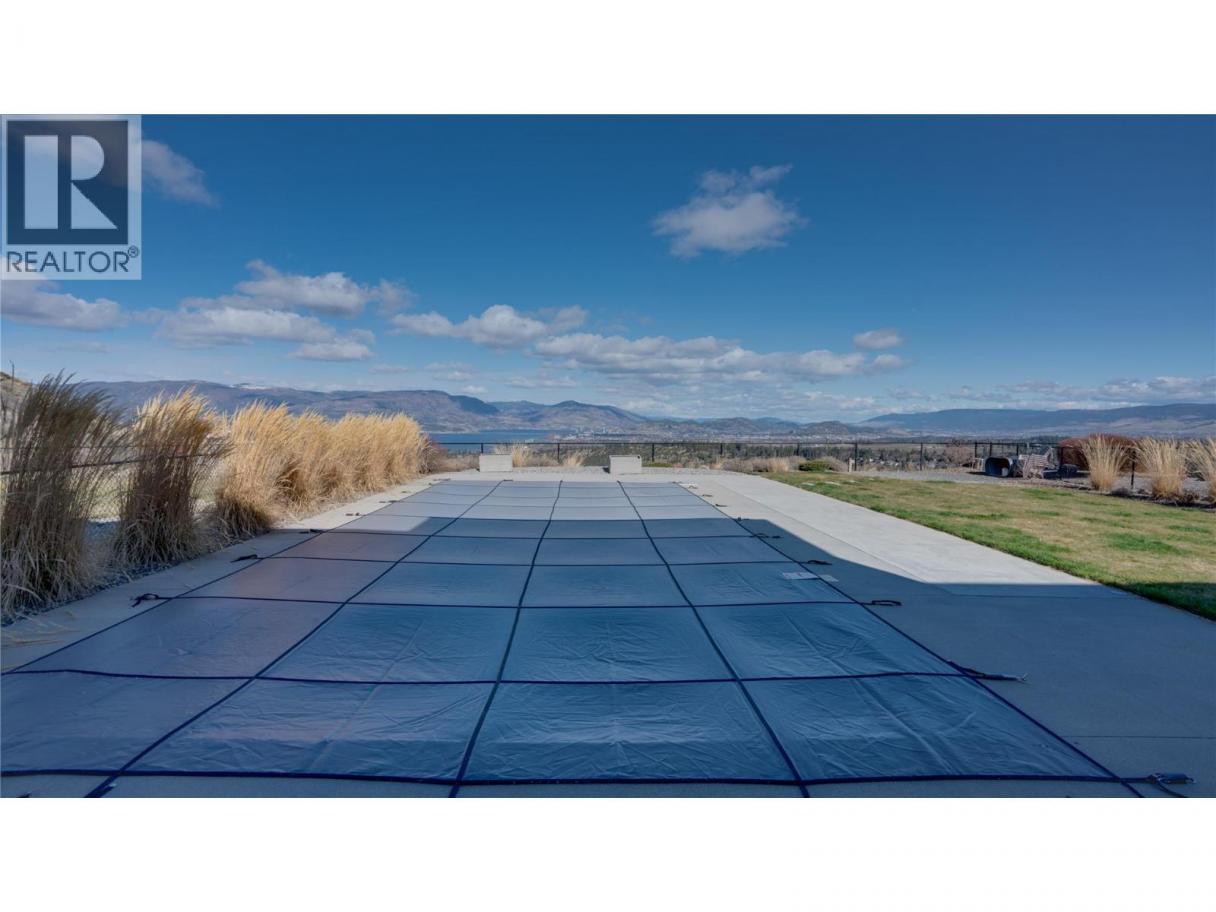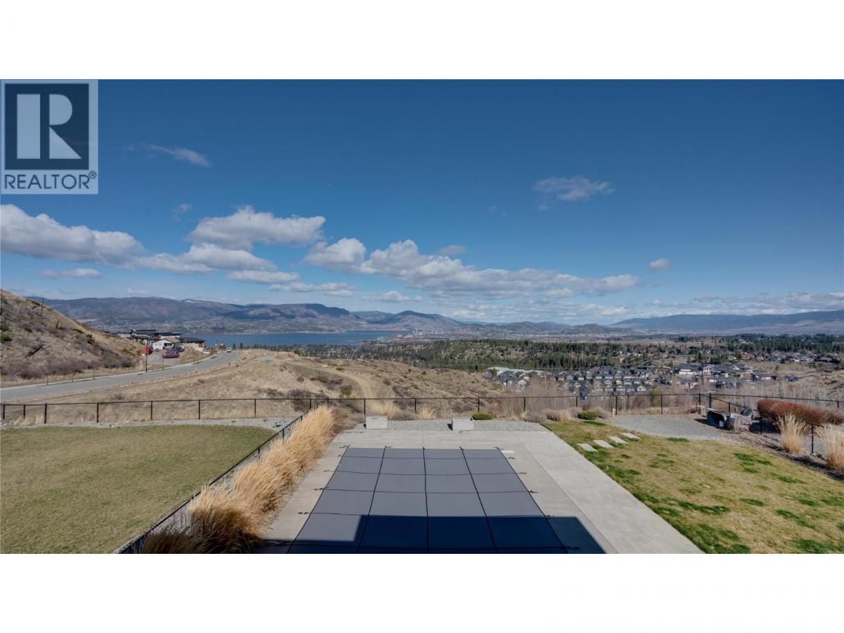 Beautifully crafted West Coast contemporary home offering breathtaking lake, city, and mountain views in the highly sought-after Ponds community. This custom-designed walkout rancher blends modern style with everyday functionality, set on a generous 0.33-acre lot backing onto parkland for added privacy and open outlook. The main level is designed for seamless one-level living and effortless entertaining, featuring a bright open-concept layout that connects the kitchen, dining, and living areas to a spacious covered patio—perfect for taking in the panoramic views. The chef-inspired kitchen is anchored by a massive island, complemented by high-end appliances and a full butler’s pantry. The primary suite is ideally positioned on the main floor and offers a true spa-like retreat with a walk-in closet, double vanity, heated floors, soaker tub, and a luxurious steam shower. The lower walkout level is built for lifestyle, complete with a wet bar, expansive recreation space, two additional bedrooms, and a fully soundproofed theatre room. Step outside to your private backyard oasis featuring a heated in-ground pool with automatic cover, hot tub, and multiple lounging areas designed for both relaxation and entertaining. Thoughtful extras set this home apart, including a dog wash station off the heated garage, ample storage, and high-quality finishes throughout—an exceptional offering that combines privacy, views, and elevated Okanagan living. (id:6769)
