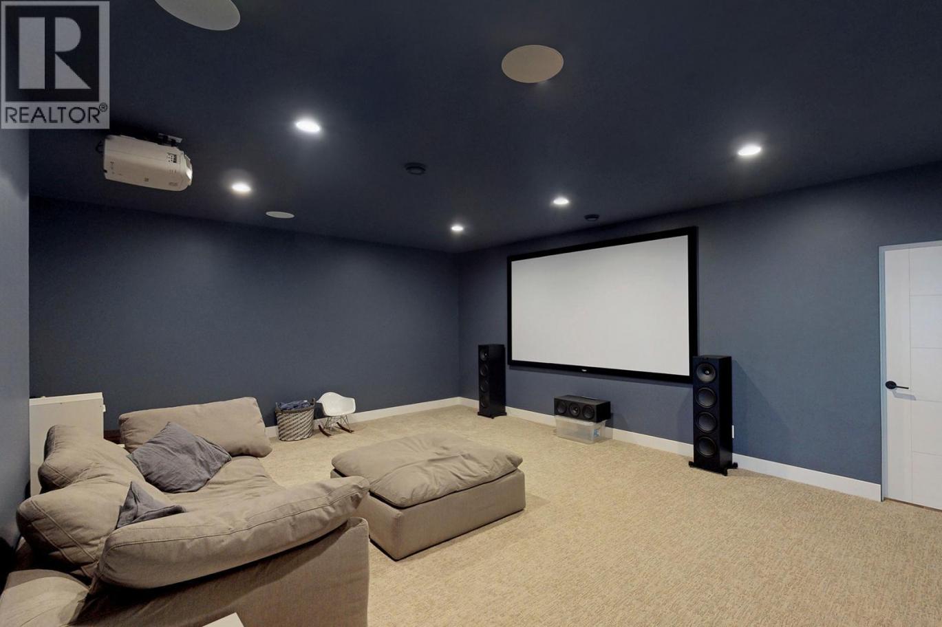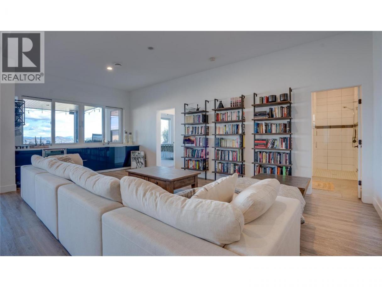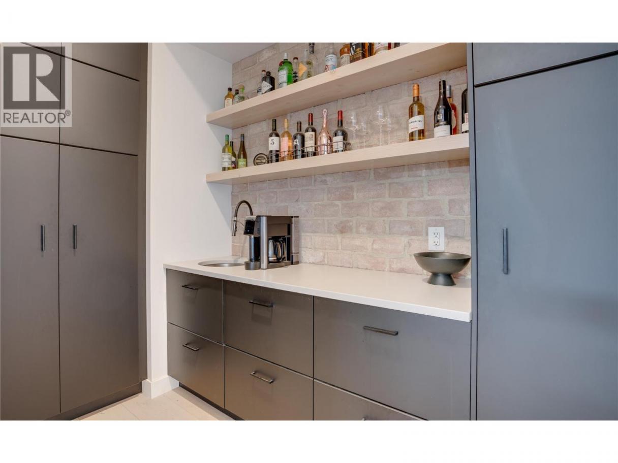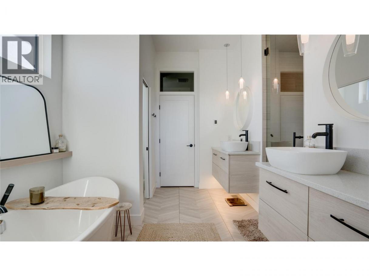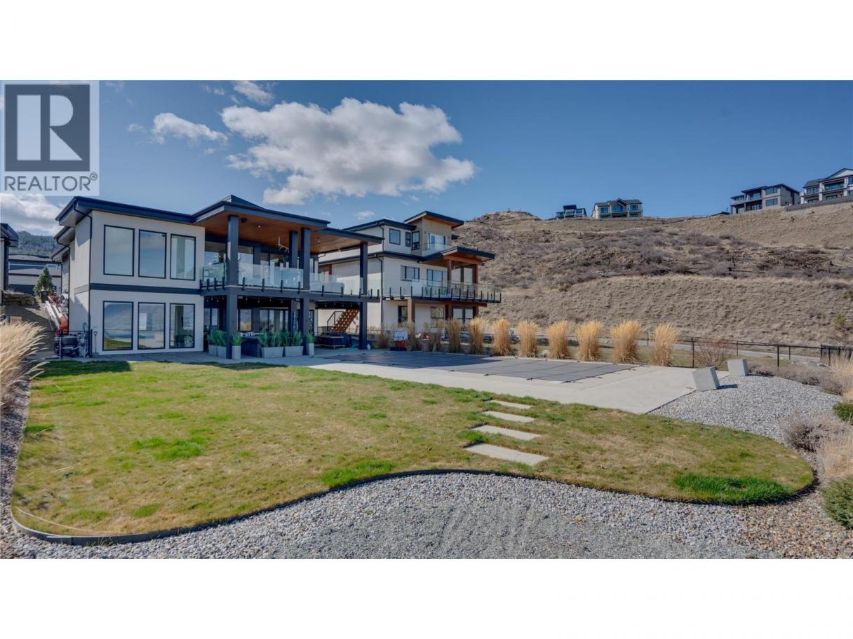 Beautifully crafted West Coast contemporary home offering breathtaking lake, city, and mountain views in the highly sought-after Ponds community. This custom-designed walkout rancher blends modern style with everyday functionality, set on a generous 0.33-acre lot backing onto parkland for added privacy and open outlook. The main level is designed for seamless one-level living and effortless entertaining, featuring a bright open-concept layout that connects the kitchen, dining, and living areas to a spacious covered patio—perfect for taking in the panoramic views. The chef-inspired kitchen is anchored by a massive island, complemented by high-end appliances and a full butler’s pantry. The primary suite is ideally positioned on the main floor and offers a true spa-like retreat with a walk-in closet, double vanity, heated floors, soaker tub, and a luxurious steam shower. The lower walkout level is built for lifestyle, complete with a wet bar, expansive recreation space, two additional bedrooms, and a fully soundproofed theatre room. Step outside to your private backyard oasis featuring a heated in-ground pool with automatic cover, hot tub, and multiple lounging areas designed for both relaxation and entertaining. Thoughtful extras set this home apart, including a dog wash station off the heated garage, ample storage, and high-quality finishes throughout—an exceptional offering that combines privacy, views, and elevated Okanagan living. (id:6769)