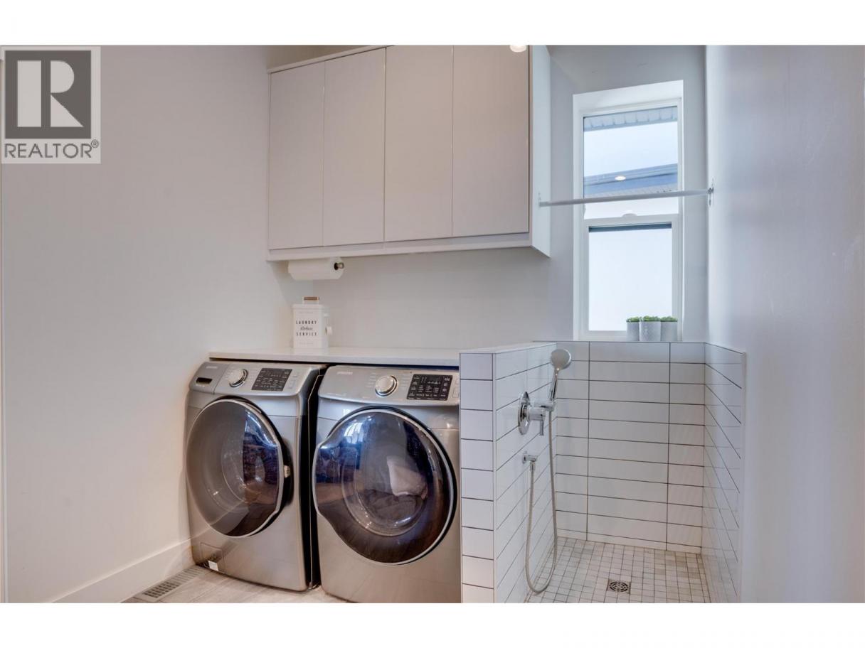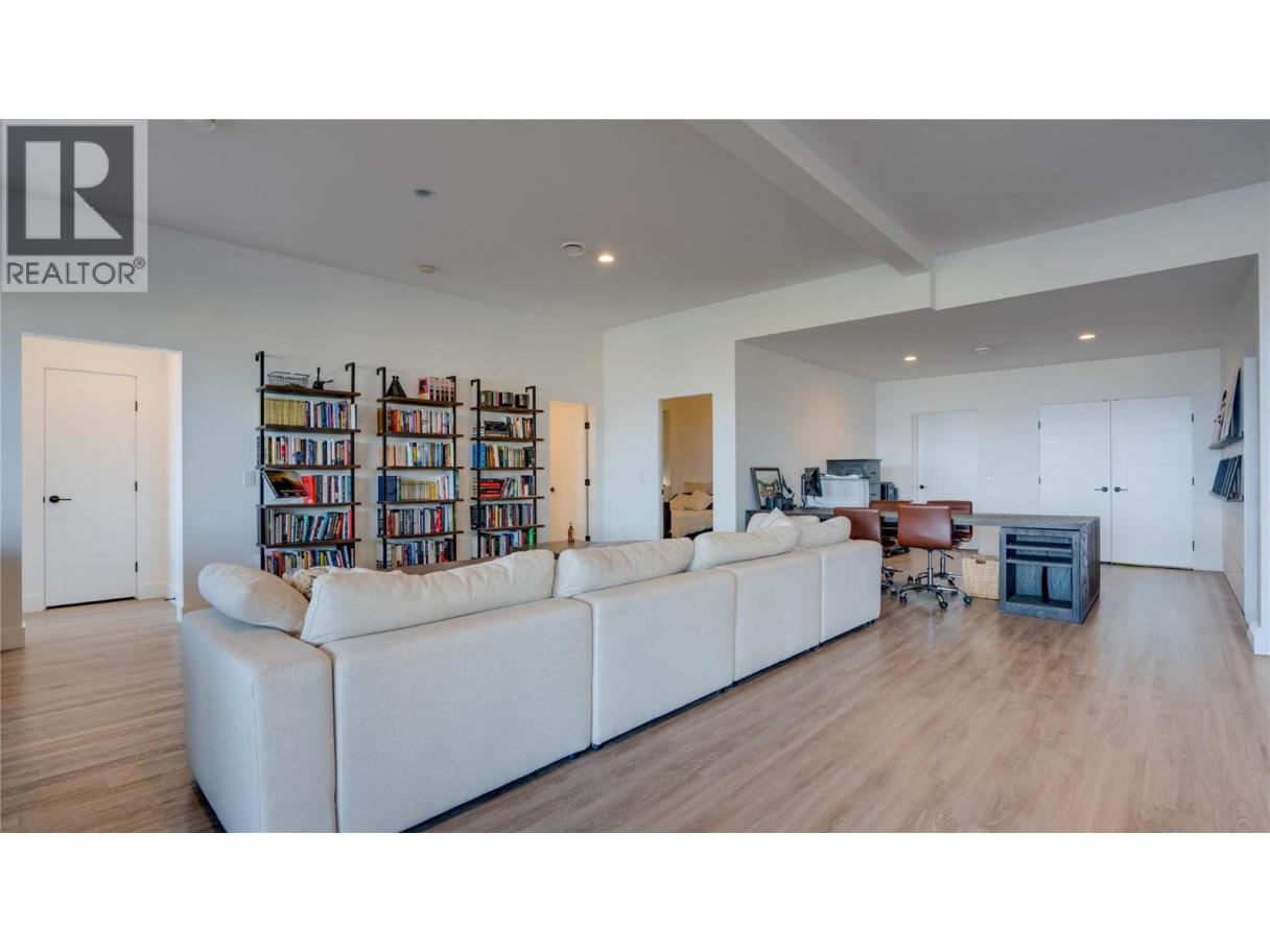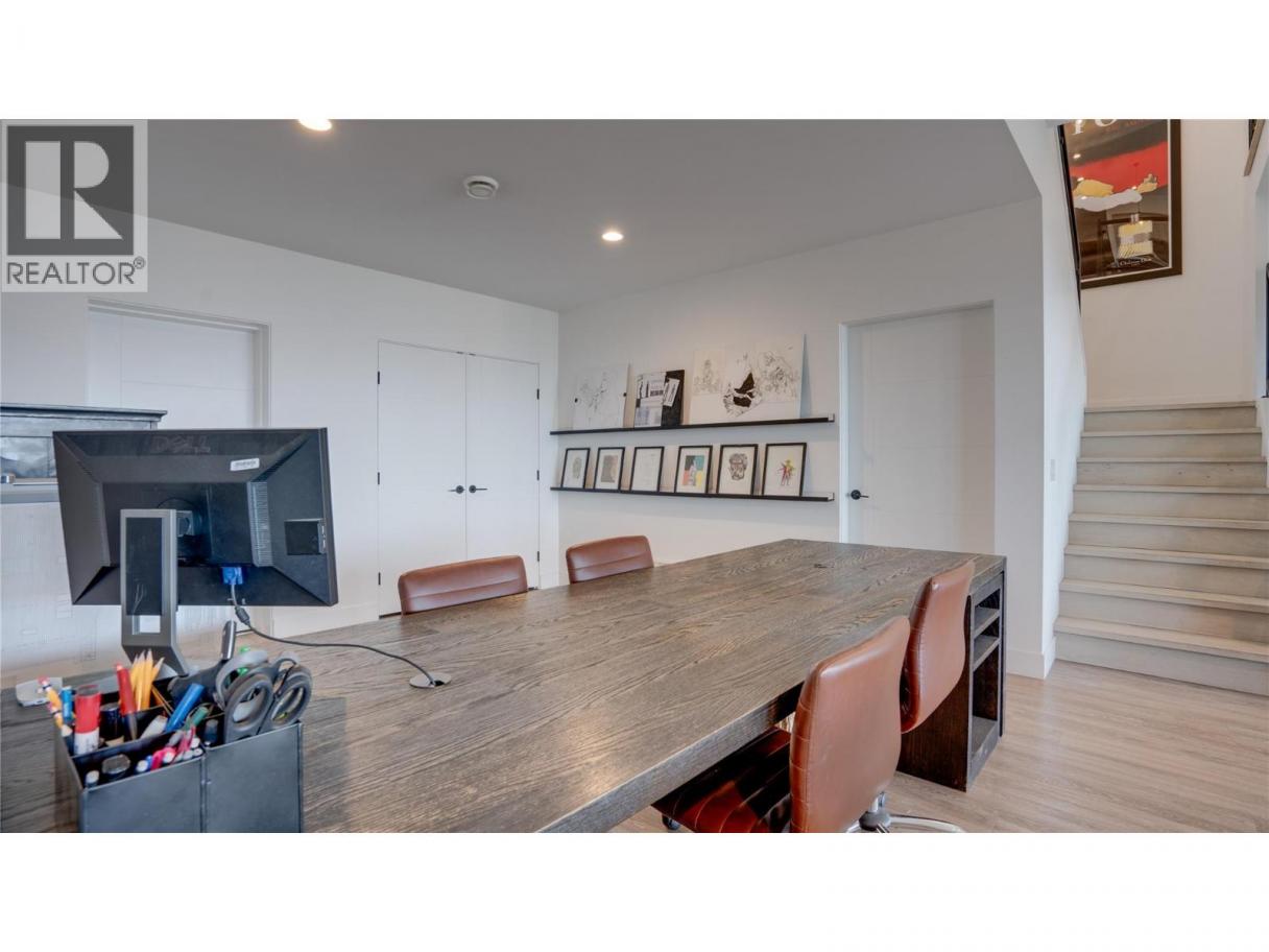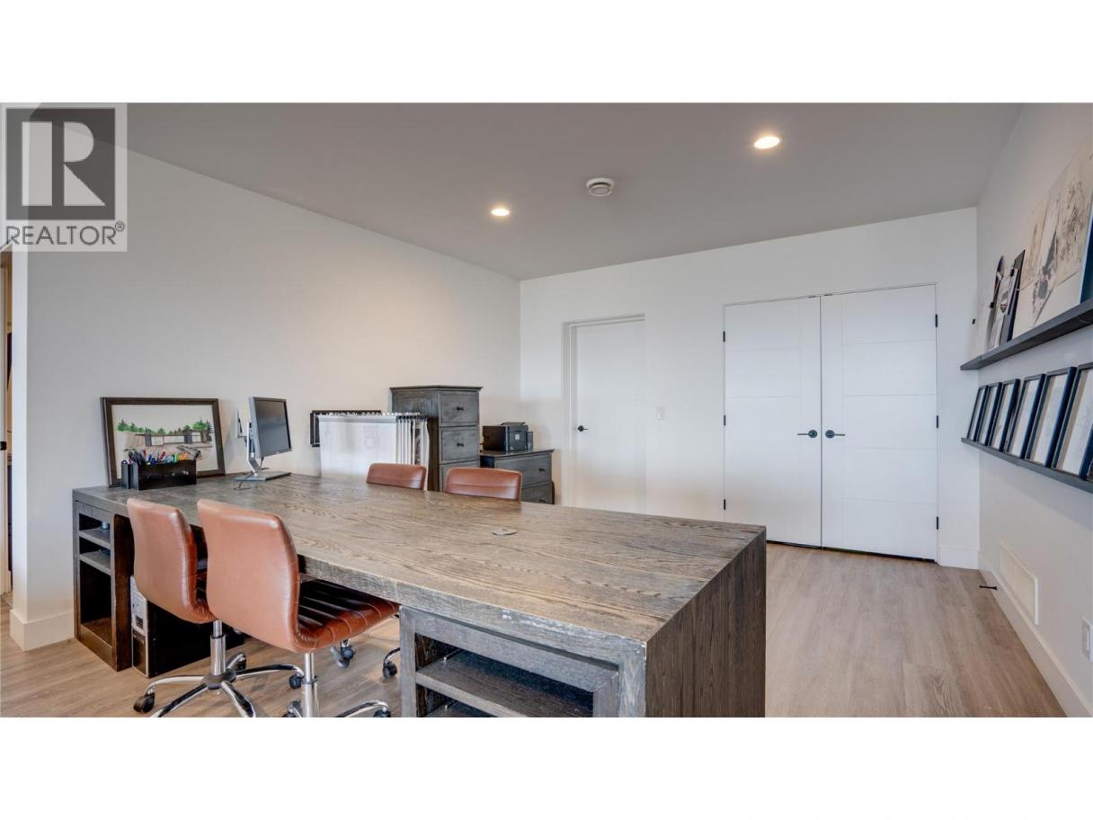 Beautifully crafted West Coast contemporary home offering breathtaking lake, city, and mountain views in the highly sought-after Ponds community. This custom-designed walkout rancher blends modern style with everyday functionality, set on a generous 0.33-acre lot backing onto parkland for added privacy and open outlook. The main level is designed for seamless one-level living and effortless entertaining, featuring a bright open-concept layout that connects the kitchen, dining, and living areas to a spacious covered patio—perfect for taking in the panoramic views. The chef-inspired kitchen is anchored by a massive island, complemented by high-end appliances and a full butler’s pantry. The primary suite is ideally positioned on the main floor and offers a true spa-like retreat with a walk-in closet, double vanity, heated floors, soaker tub, and a luxurious steam shower. The lower walkout level is built for lifestyle, complete with a wet bar, expansive recreation space, two additional bedrooms, and a fully soundproofed theatre room. Step outside to your private backyard oasis featuring a heated in-ground pool with automatic cover, hot tub, and multiple lounging areas designed for both relaxation and entertaining. Thoughtful extras set this home apart, including a dog wash station off the heated garage, ample storage, and high-quality finishes throughout—an exceptional offering that combines privacy, views, and elevated Okanagan living. (id:6769)