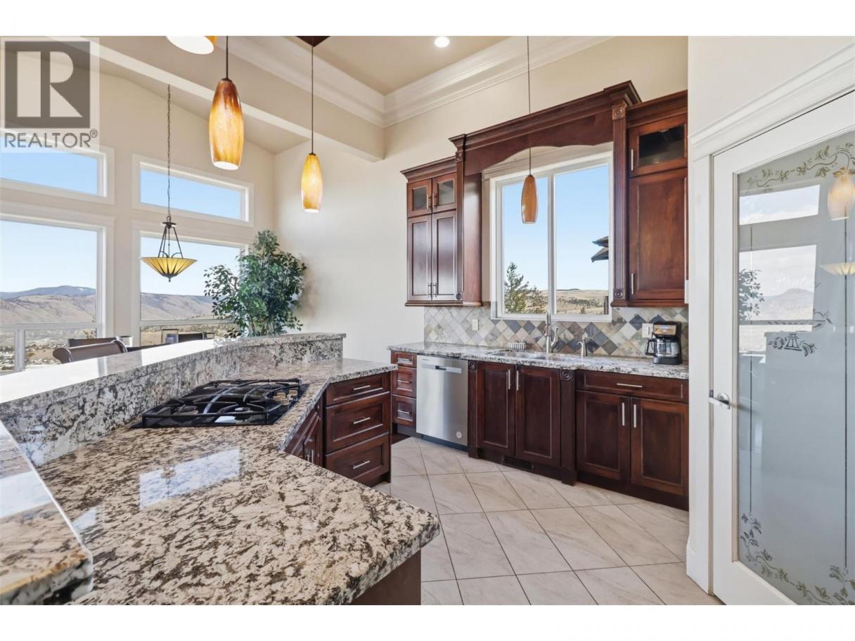 Perched in sought-after Aberdeen, this impressive home offers breathtaking panoramic views and over 3,600 sq. ft. of thoughtfully designed living space—perfect for growing families and multi-generational living. From the moment you step inside, you’re welcomed by a bright front office with double doors, a convenient powder room, and a laundry room with sink. The main living area showcases soaring 14’ vaulted ceilings and a cozy natural gas fireplace, creating an inviting space to relax or entertain. The kitchen is both stylish and functional, featuring granite countertops, a large eating bar, gas cooktop, and built-in desk, seamlessly connecting to the dining area framed by expansive windows and access to a view deck—ideal for soaking in the stunning surroundings. Upstairs offers four generous bedrooms and a full bathroom, including a spacious primary retreat complete with a walk-in closet and luxurious 5-piece ensuite. The fully finished basement adds incredible value with a bright 2-bedroom in-law suite, separate entrance, and high ceilings—perfect for extended family or potential rental income. Additional highlights include ample parking with room for your RV or boat, underground irrigation, hot tub hookup, high-efficiency furnace, and hot water tank. This is the complete package in one of Kamloops’ most desirable neighbourhoods. (id:6769)