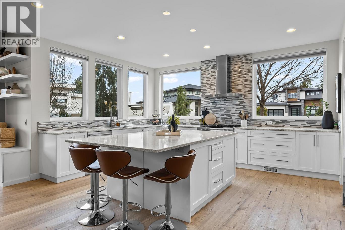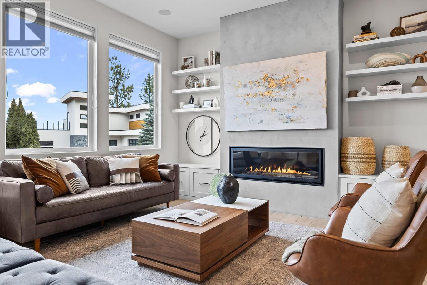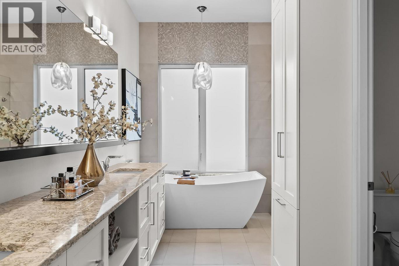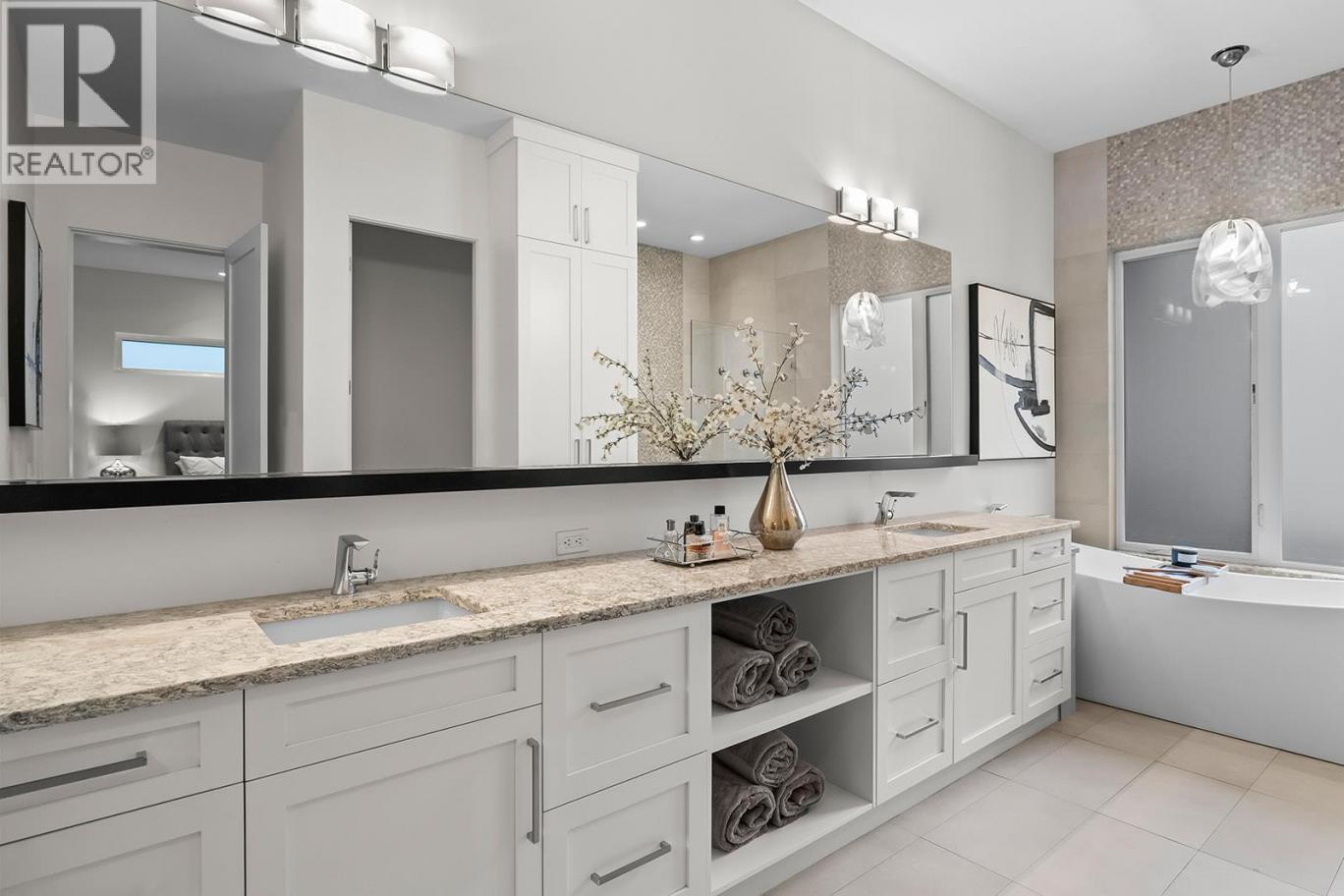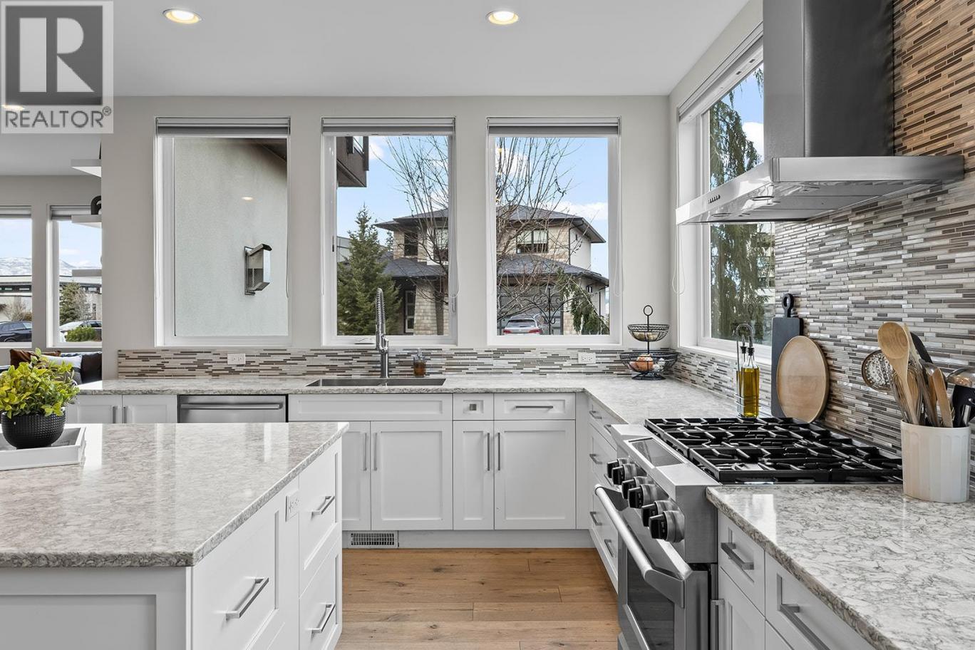 Welcome to 1091 Westpoint Drive, a stunning executive home perched at the summit of Woodland Hills. With over $350,000 in improvements & upgrades to indoor and outdoor areas by current owners, this residence has been thoughtfully designed, built, & finished to reflect its prestigious setting. This is a home that truly rewards coming home — ideal for busy professionals, productive work-from-home days, entertaining friends & family, or enjoying relaxed family weekends. The main floor layout is exceptional, featuring a spacious great room with generous living & dining areas capable of hosting a dozen or more guests. The gourmet kitchen will impress any home chef, offering premium appliances including a double-door refrigerator, 6-ring gas stove, oversized island, & Quartz countertops. A large office/den with a striking floating carbon fibre desk accommodates multiple workstations & a glass-fronted wine room adds function & flair. The primary suite on the main floor is a private retreat, complete with a spa-inspired ensuite featuring a soaker tub, walk-in shower, & direct access to a primary-adjacent hot tub. Upstairs, four additional spacious bedrooms are connected by a central loft and media area with a built-in wet bar, plus access to two upper decks, one with outdoor fireplace & lake view. Additional features include white oak plank flooring, in-floor heating on the main, instant hot water on demand, smart lighting, 6-zone audio, & dual 5.1 surround systems. (id:6769)