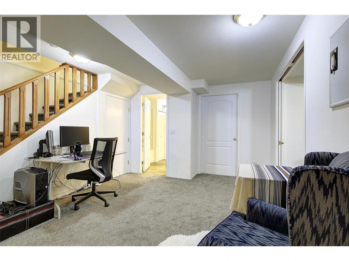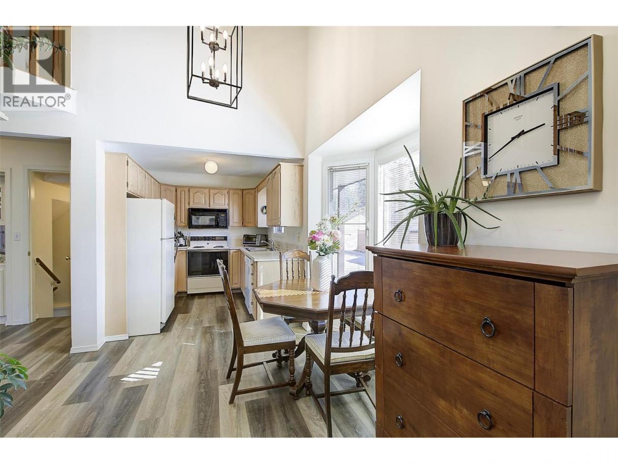 AFFORDABLE AND UPDATED 3-4 BEDROOM 3 BATH TOWNHOME - PERFECT FOR FAMILIES...CENTRALLY LOCATED ONLY STEPS TO MISSION CREEK PARK and GREENWAY, and all your SHOPPING! Contemporary styled with open spacious plan. Appealing Living room features a corner gas fireplace, Soaring 16' ceilings and Glass sliding door to patio for inside outside enjoyment, evening barbecues and more. Tastefully updated with quality wide plank laminate floors, updated plush carpets up, modern warm white paint, and trendy new dining and main light fixtures that are sure to impress. Light bleached raised OAK kitchen with window over sink. Bright Bay window eating area for morning coffees. Full 4 piece bathroom with new sink. Large main floor bedroom with walk in closet. 3 bedrooms on 3 floors plus additional small 4th bedroom/den up (no closet but a great nursery)! Upstairs features a Spacious primary bedroom with walk in closet, lovely 4 piece bathroom with vinyl plank floors, Lofted area with the additional Den/4th bedroom, with glass door to cheery sundeck with some view to mission creek park. Full basement with family room, bedroom with separate study/gmes area, added 4 piece bathroom and huge unfinished storage room for all the stuff! B/I vac. 5 appliances. 3 Year old Hi eff furnace and gas hot water. Central Air for summer comfort. Quiet inside unit in well maintained complex. Clean & Bright family townhome in a Fabulous Location! (id:6769)