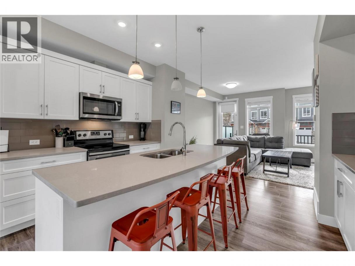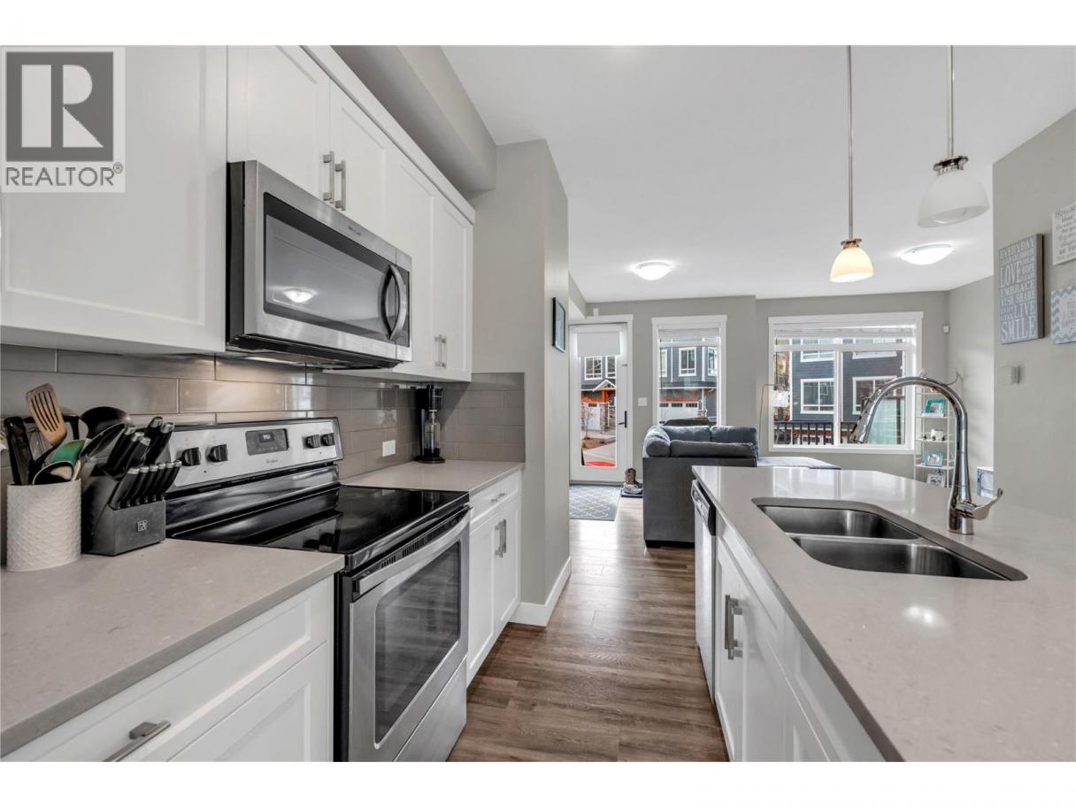Welcome to Sendero Gate! Modern move in ready Townhouse in desirable Sendero Canyon. This floorplan has many options, living room and spacious dining/family area, the central modern white kitchen, stainless appliances & quartz countertops. This main living level includes a powder room, french door access to the deck for soaking up the sun while enjoying a beverage & BBQ dinner. Stairs off the deck to the private fenced lower yard level with french door to the flex space currently used as a bedroom with storage closet, HVAC & access to the garage. On the top floor, full bathroom, 3 bedrooms including the Primary bedroom with walk in closet, 4 piece bathroom with double sinks and large shower. Laundry is conveniently located on this level. This home has newer high end carpet on stairs and top floor. Unit boasts additional parking spot, no age restrictions, pet friendly & rentals allowed. Single garage & 2nd spot outside. Live a low maintenance lifestyle in the Okanagan Valley, with recreation steps away. Wonderful area and sense of community , book your showing today! (id:6769)