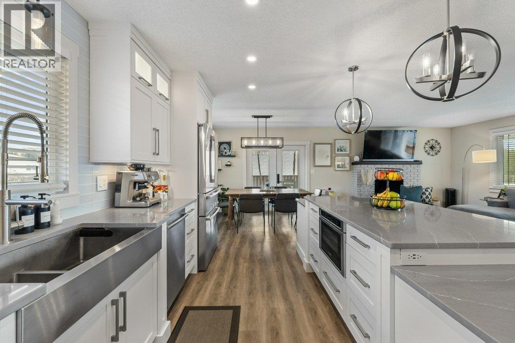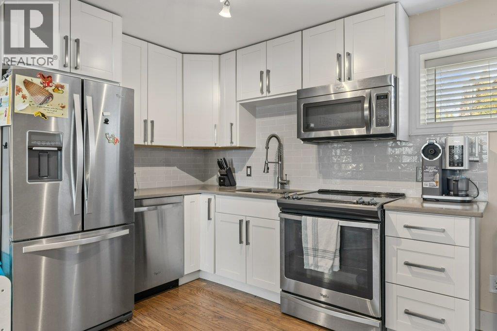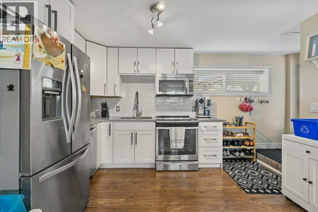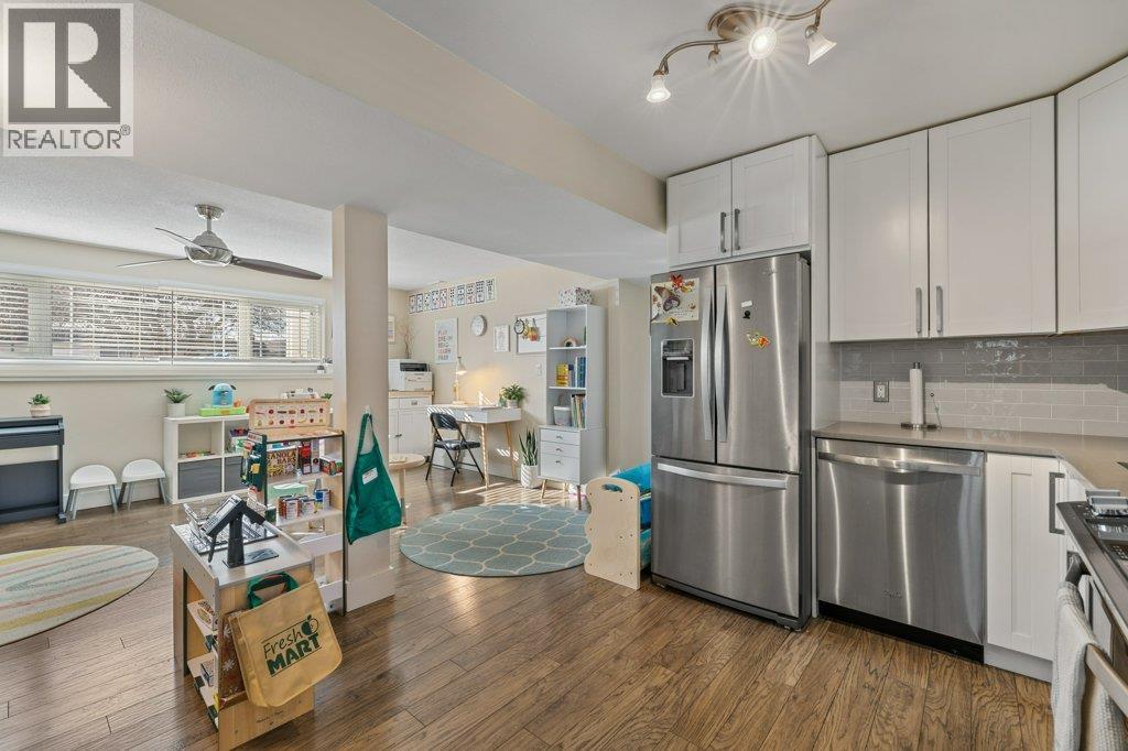 Welcome to this fantastic family home nestled on a quiet street in desirable Kelowna. Thoughtfully updated and move-in ready, this home features a bright, open-concept living, dining, and a fantastic custom kitchen complete with stainless steel appliances—perfect for modern family living and entertaining. The main level offers three spacious bedrooms, including a primary suite with a walk-in closet and a convenient 3-piece ensuite. Downstairs, the fully finished lower level provides excellent flexibility with a large family room, second kitchen, three additional bedrooms, and laundry—ideal for large or extended family. Set on a generous 0.21-acre MF1-zoned lot, this property offers future development potential. The fully fenced yard is perfect for kids and pets, and the home’s prime location—directly across from a school—makes it an exceptional choice for families seeking convenience and community. (id:6769)