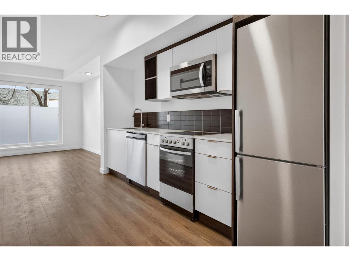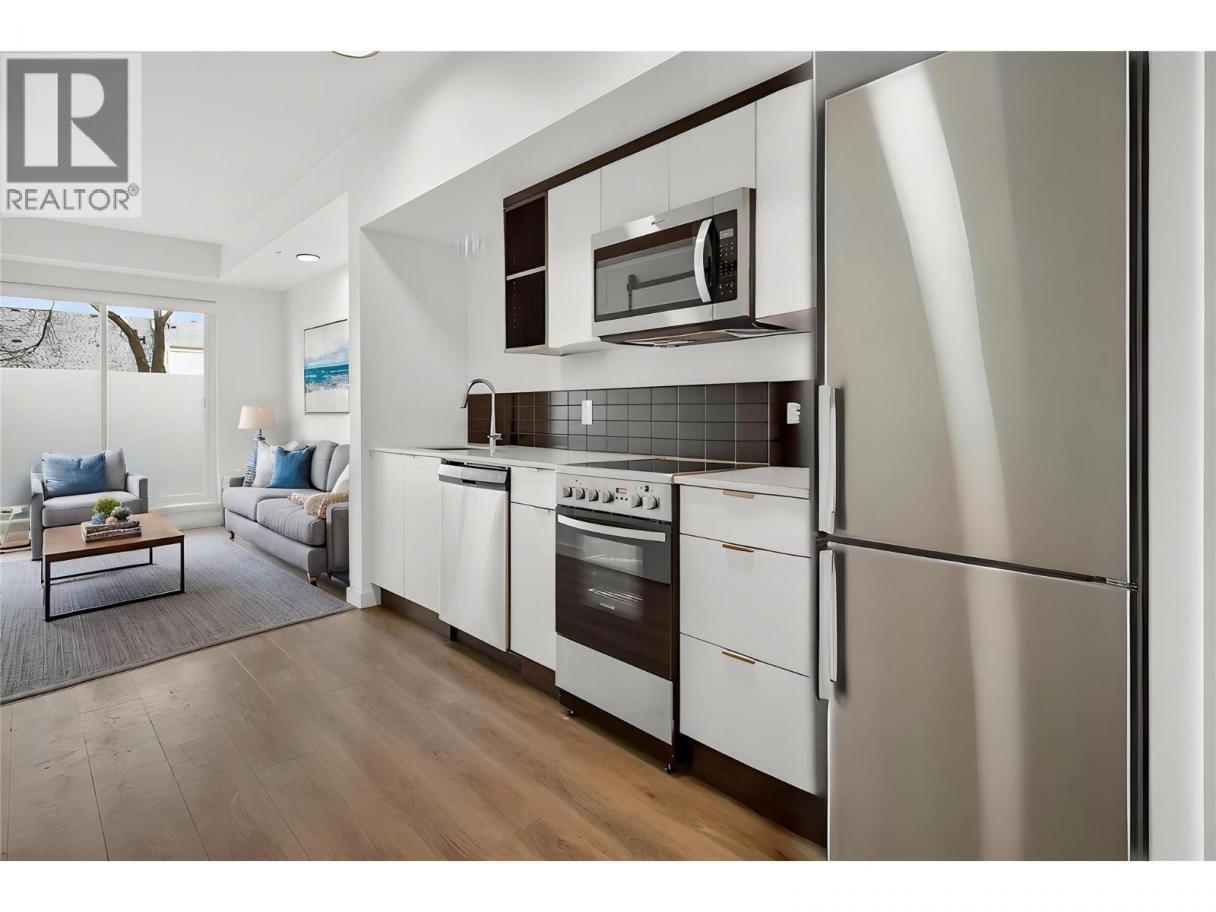 Welcome to SOLE Rutland—a thoughtfully designed ground-level home offering 2 bedrooms, 1 bathroom, and a seamless blend of comfort and functionality. This well-appointed unit features a bright open-concept layout with a linear kitchen complete with quartz countertops, stainless steel appliances, and sleek European-style cabinetry. The spacious living and dining area flows effortlessly to a private patio, extending your living space outdoors—perfect for relaxing or entertaining, with easy access for pets. Despite their efficient size, both bedrooms offer closet space, making this home practical and versatile. Additional highlights include in-suite laundry, secure fob entry, and underground parking (stall #6), a generously sized and well-located space. Built by reputable Sole Developments, this modern building offers low-maintenance living with low strata fees. Ideally located near UBC Okanagan, transit routes, schools, parks, and shopping, this property is perfect for first-time buyers, students, downsizers, or investors seeking a strong and convenient location. (id:6769)