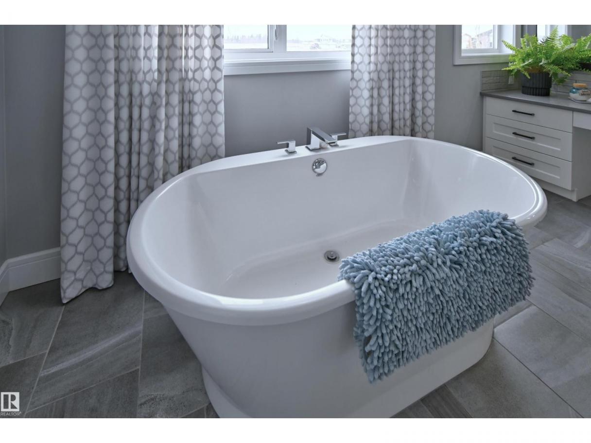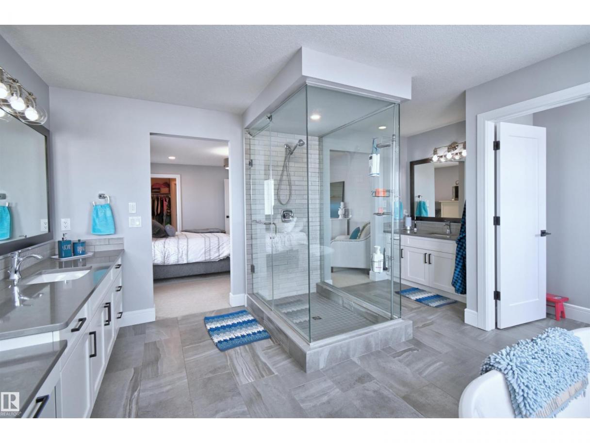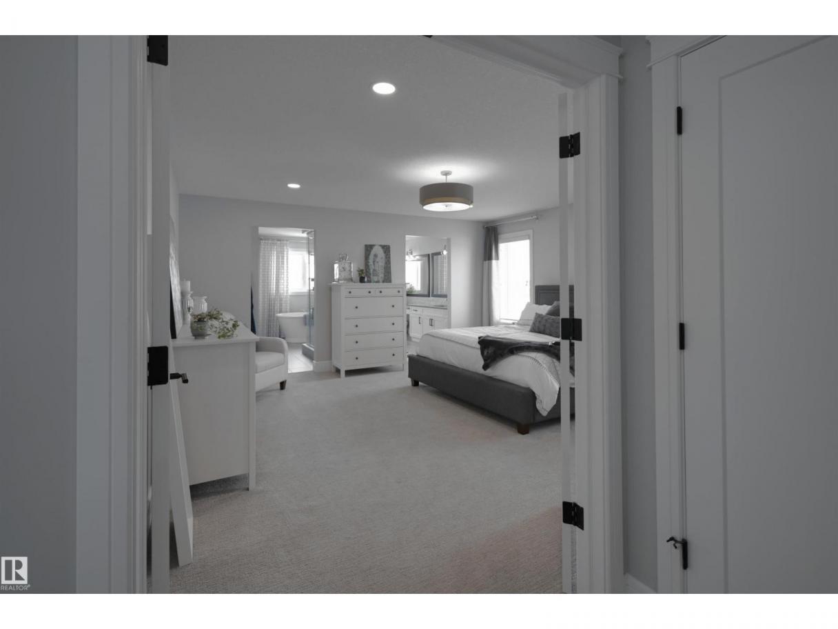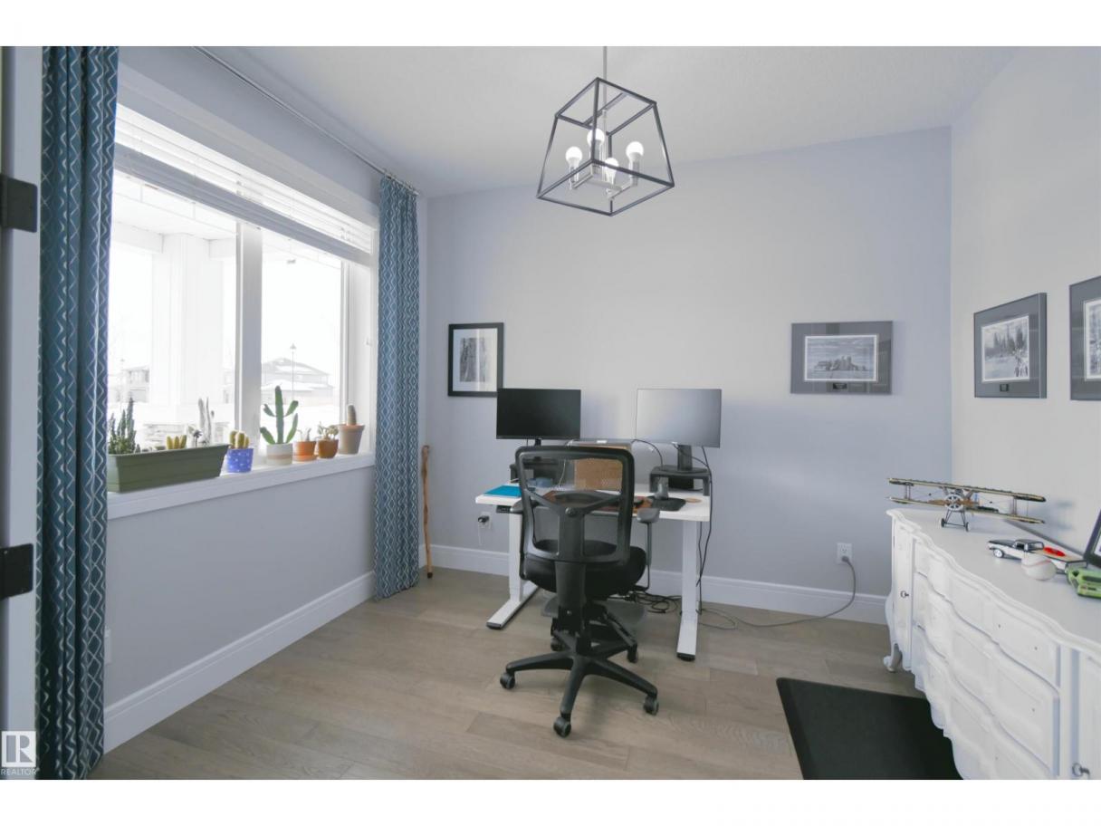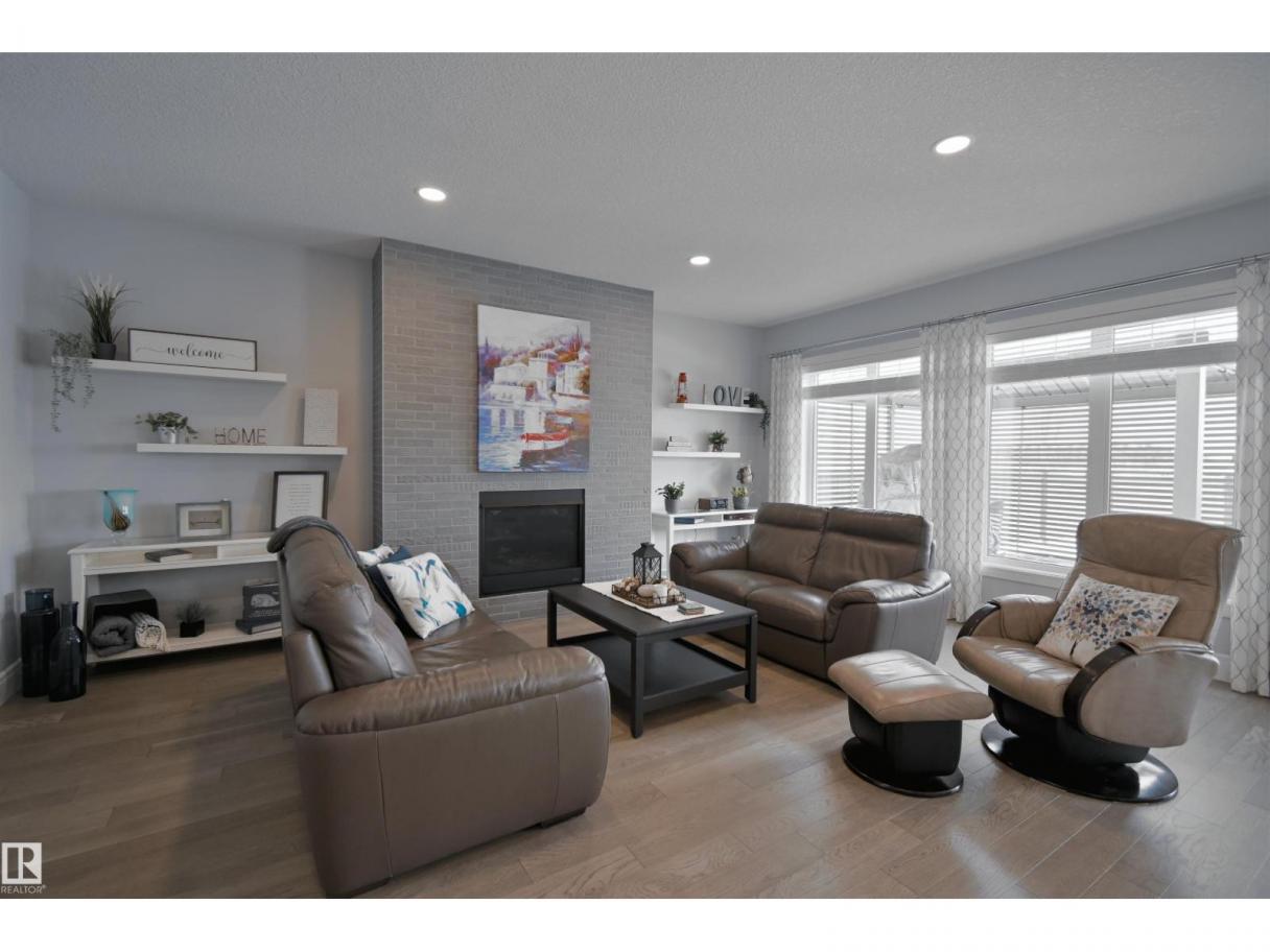 Welcome to Genesis Lake, an exceptional residence combining luxury, function and thoughtful upgrades. This home features a four-car heated garage with convenient pass-through to a private backyard, professionally landscaped beds with concrete curbing, and a composite deck with gazebo for summer entertaining. Inside, enjoy 9-foot ceilings, 8-foot doors, engineered hardwood, central A/C, and a front office overlooking the patio. The gourmet kitchen offers white cabinetry to the ceiling, a massive island, stainless hood, and chevron tile backsplash. Adjoining dining with coffered ceiling opens to a generous eating area. A walk-through pantry,with butler/coffee bar lead to a mudroom with custom shelving. A tiled dog wash with glass door and abundant storage add everyday convenience. Upstairs, a vaulted bonus room, spacious bedrooms with views, and a primary suite with laundry access and a luxurious 5-piece ensuite complete the home. The basement is fully finish & solar power and LED lighting (id:6769)