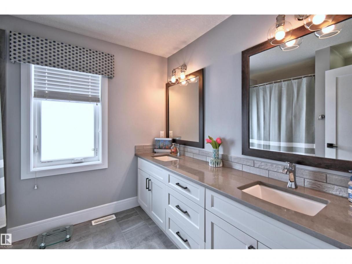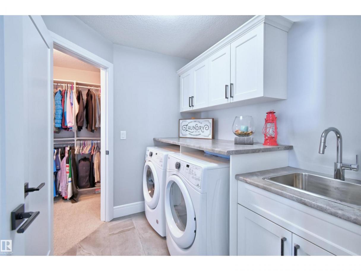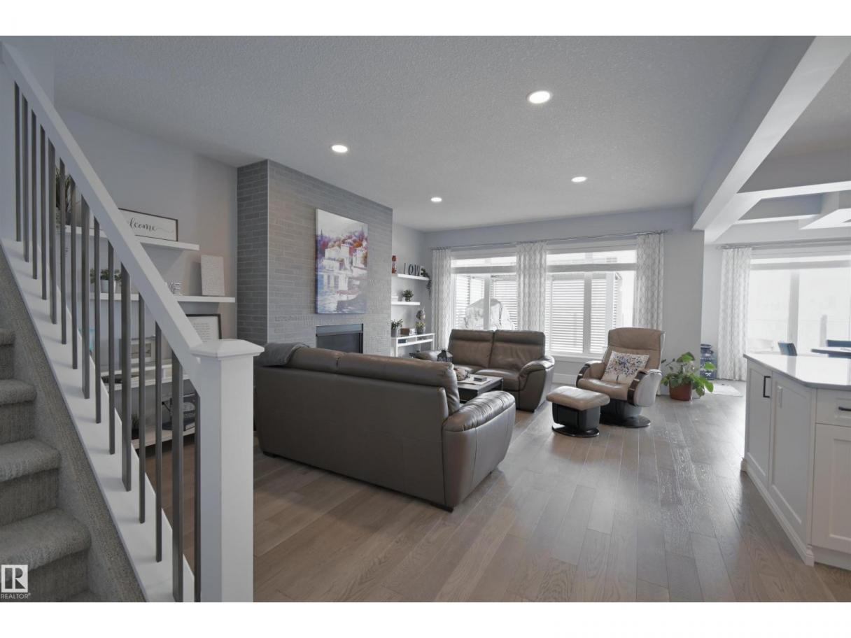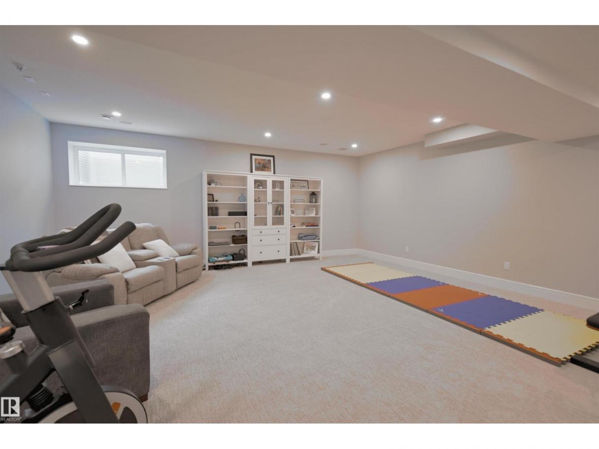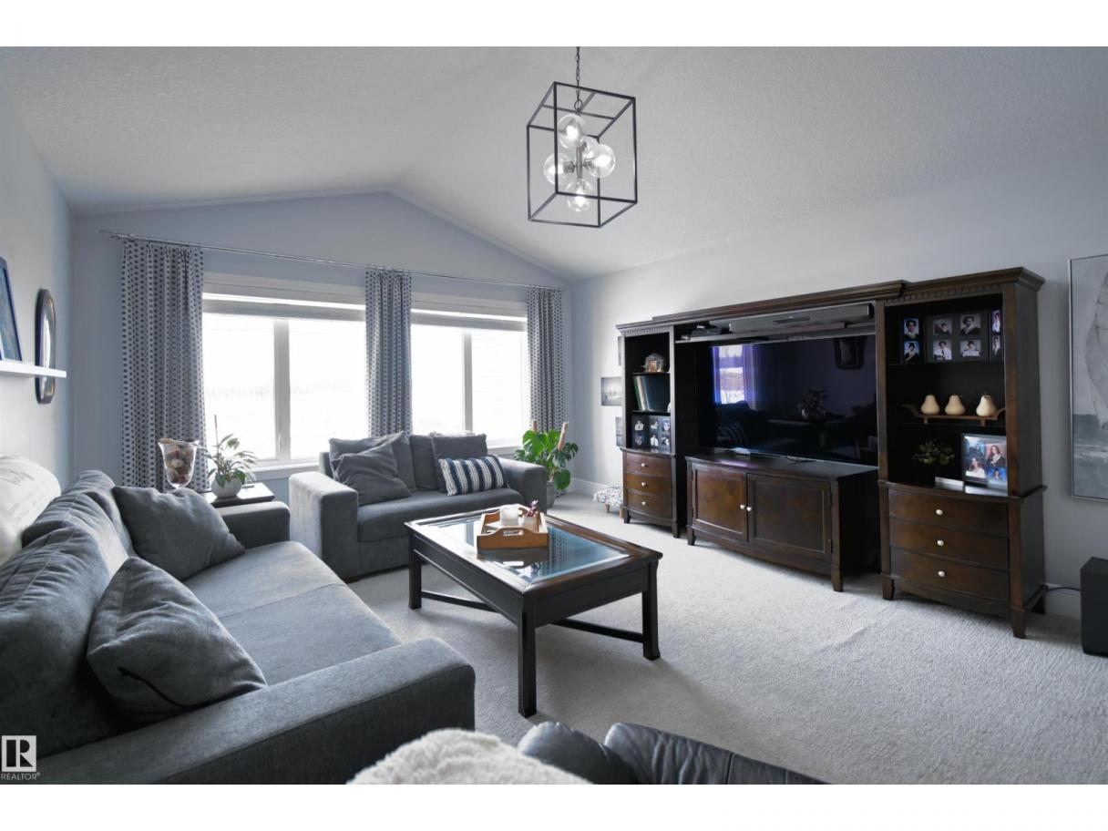Welcome to Genesis Lake, an exceptional residence combining luxury, function and thoughtful upgrades. This home features a four-car heated garage with convenient pass-through to a private backyard, professionally landscaped beds with concrete curbing, and a composite deck with gazebo for summer entertaining. Inside, enjoy 9-foot ceilings, 8-foot doors, engineered hardwood, central A/C, and a front office overlooking the patio. The gourmet kitchen offers white cabinetry to the ceiling, a massive island, stainless hood, and chevron tile backsplash. Adjoining dining with coffered ceiling opens to a generous eating area. A walk-through pantry,with butler/coffee bar lead to a mudroom with custom shelving. A tiled dog wash with glass door and abundant storage add everyday convenience. Upstairs, a vaulted bonus room, spacious bedrooms with views, and a primary suite with laundry access and a luxurious 5-piece ensuite complete the home. The basement is fully finish & solar power and LED lighting (id:6769)