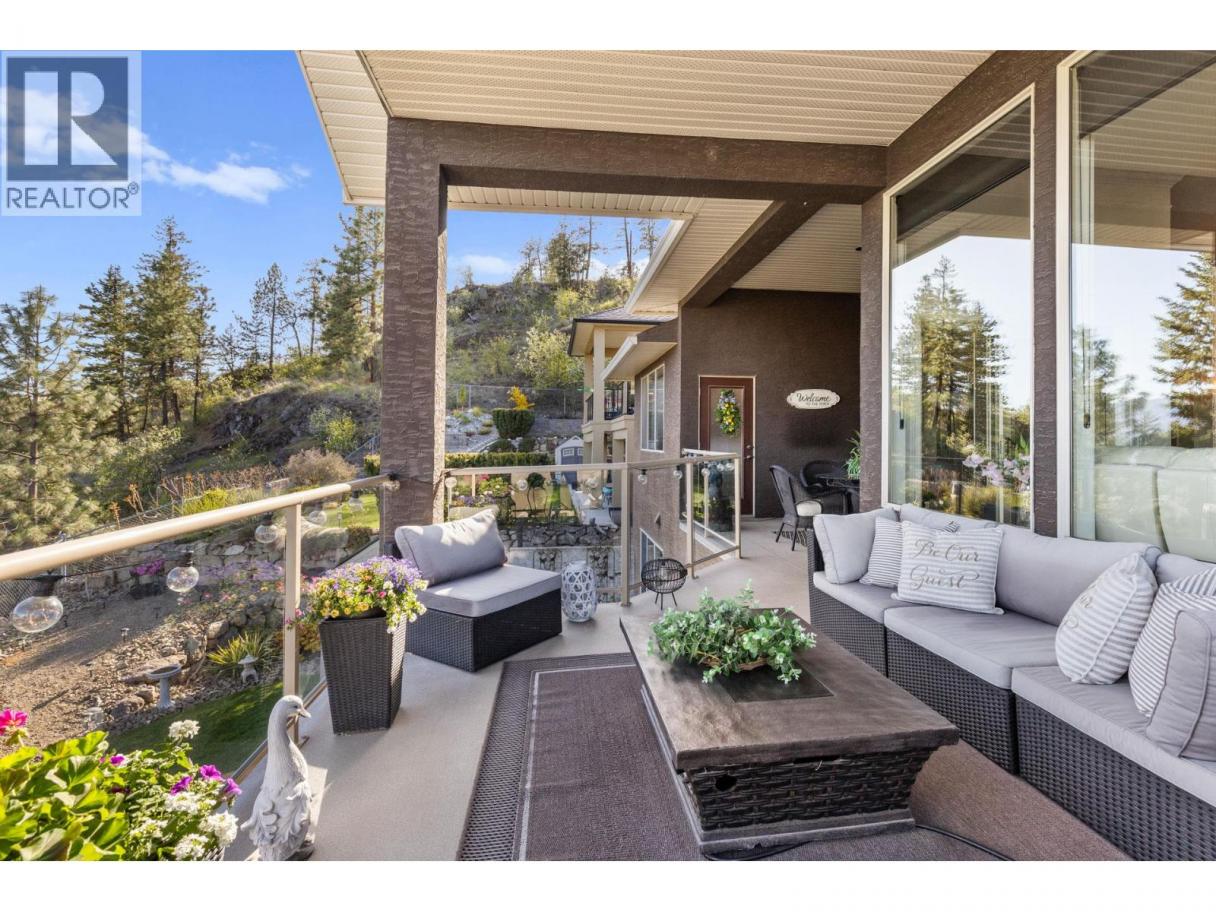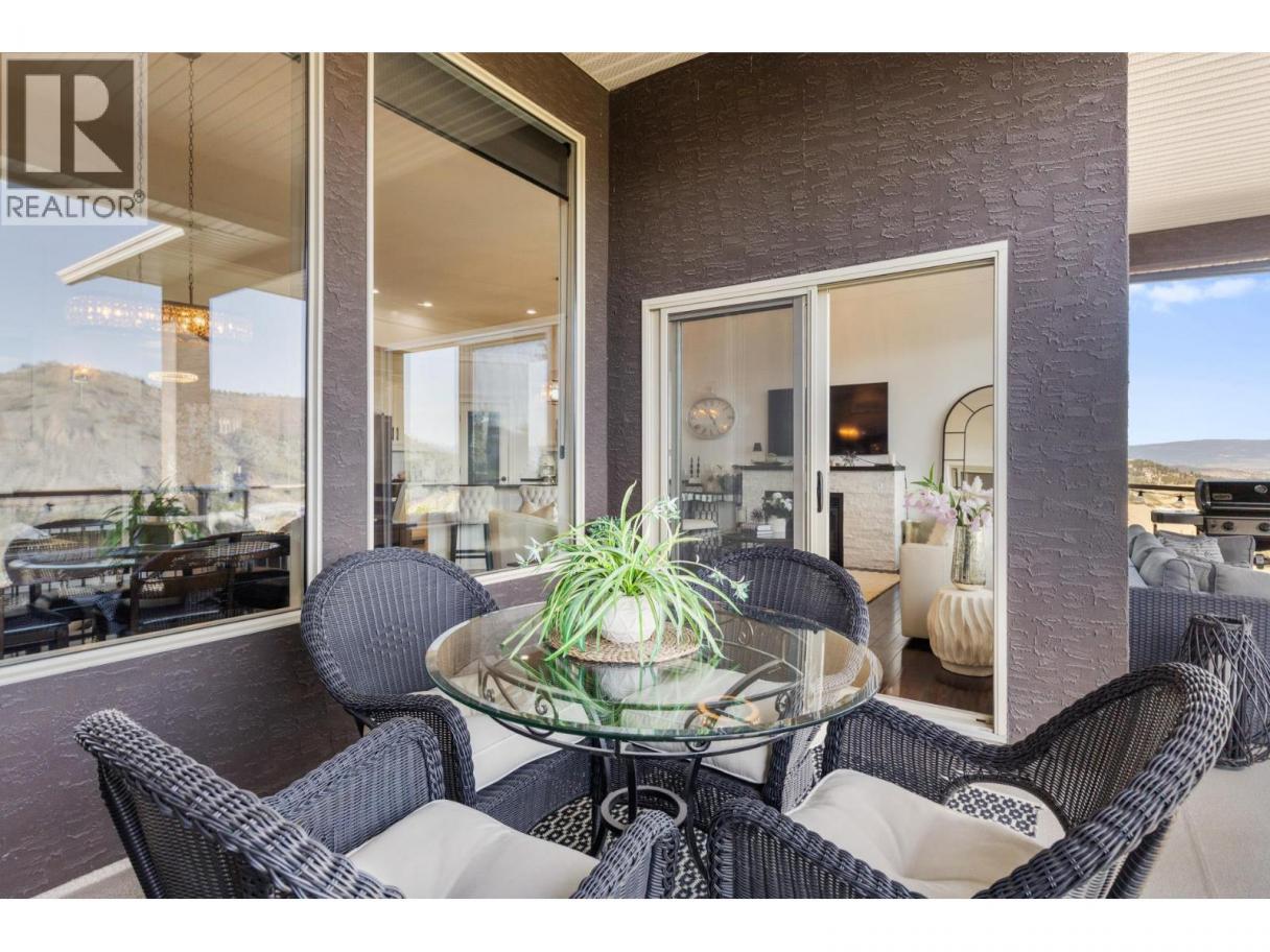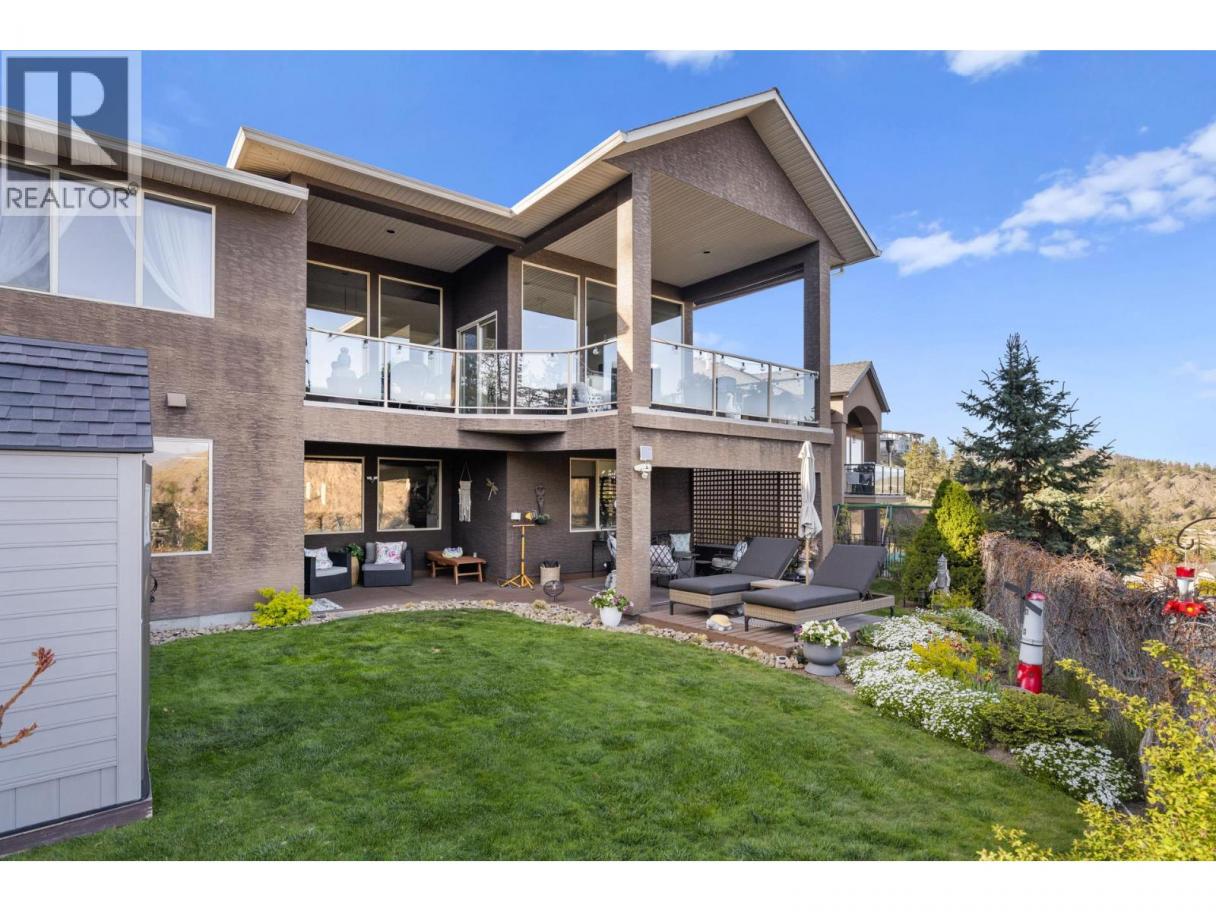 Discover elevated luxury living in The Highlands, one of West Kelowna’s most prestigious gated communities. This impeccably maintained 3,300+ sq ft walkout rancher offers impressive scale, refined finishes, and unobstructed lake, mountain, and valley views. Designed for grand entertaining and everyday comfort, the open-concept main level is enhanced by 12-foot ceilings, expansive windows, rich crown moulding, and gleaming hardwood floors that frame the stunning lake view outlook. The chef-inspired kitchen features newer stainless steel appliances, a convection range with built-in air fryer, granite island, and walk-in pantry. Step outside to the private, covered upper balcony with gas hookup—ideal for sunset dining and with exceptional privacy. The expansive primary suite is a nice retreat with a spa-inspired ensuite showcasing a double granite vanity, soaker tub, and separate shower. The lower level with two additional bedrooms, a full bathroom, and a spacious family room with oversized windows and walkout access to a covered patio offering secluded outdoor living and hot tub hookup. The fully fenced, beautifully landscaped backyard provides a serene, private setting. A standout media and recreation room with built-in bar, beverage fridge, and wine cooler completes this exceptional home. Quietly tucked away in a secure community yet minutes to schools, golf, shopping, and dining, this residence delivers luxury, space, privacy, and iconic Okanagan views without compromise. (id:6769)