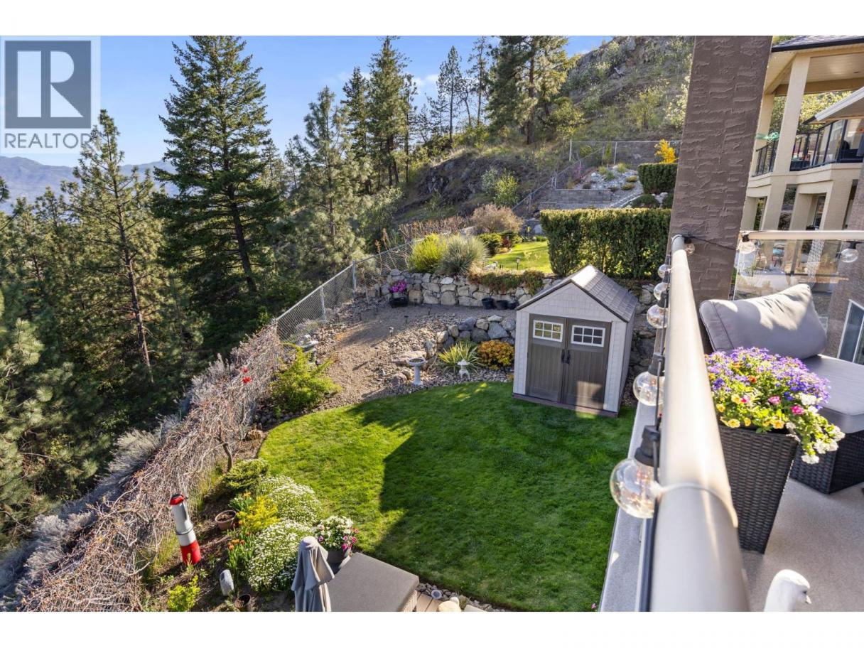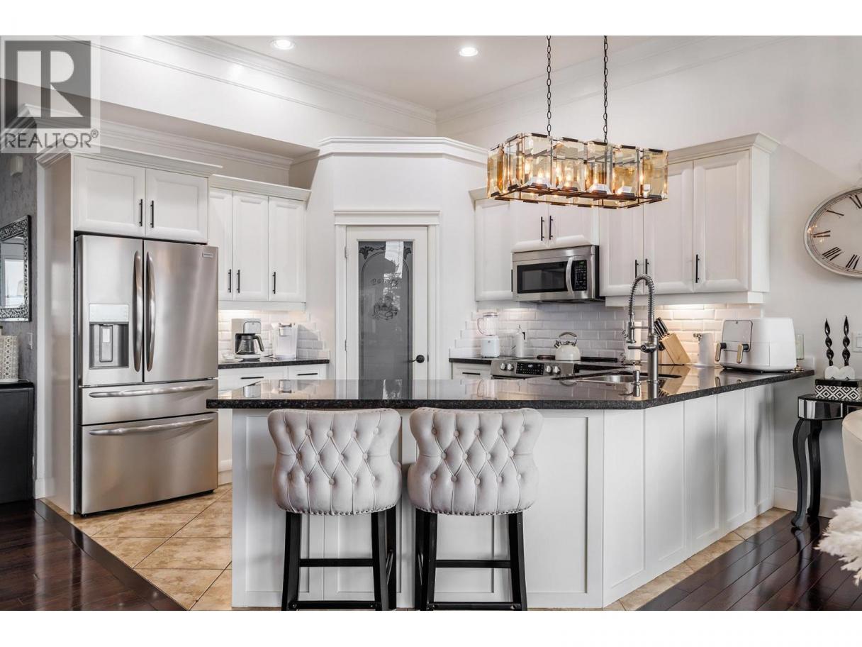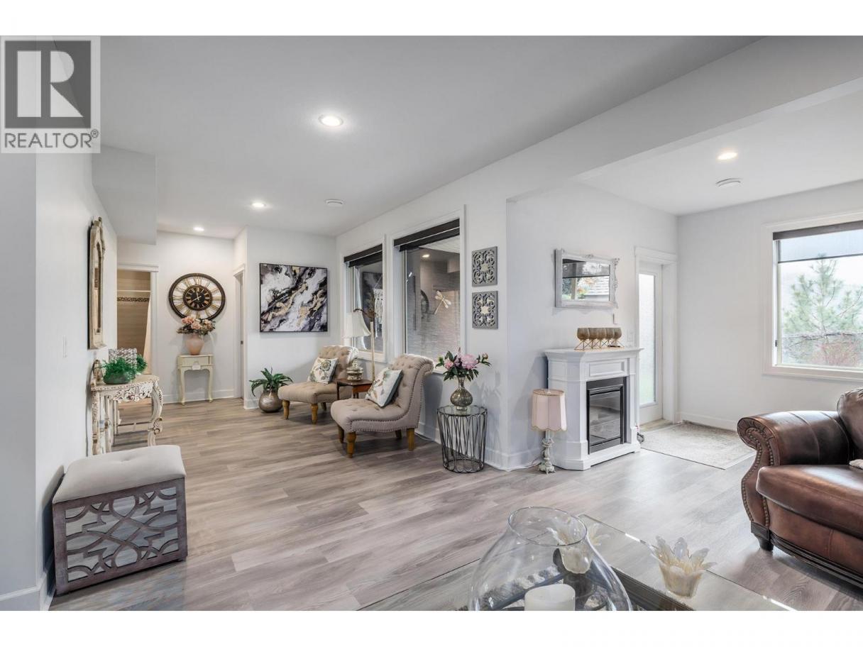 Discover elevated luxury living in The Highlands, one of West Kelowna’s most prestigious gated communities. This impeccably maintained 3,300+ sq ft walkout rancher offers impressive scale, refined finishes, and unobstructed lake, mountain, and valley views. Designed for grand entertaining and everyday comfort, the open-concept main level is enhanced by 12-foot ceilings, expansive windows, rich crown moulding, and gleaming hardwood floors that frame the stunning lake view outlook. The chef-inspired kitchen features newer stainless steel appliances, a convection range with built-in air fryer, granite island, and walk-in pantry. Step outside to the private, covered upper balcony with gas hookup—ideal for sunset dining and with exceptional privacy. The expansive primary suite is a nice retreat with a spa-inspired ensuite showcasing a double granite vanity, soaker tub, and separate shower. The lower level with two additional bedrooms, a full bathroom, and a spacious family room with oversized windows and walkout access to a covered patio offering secluded outdoor living and hot tub hookup. The fully fenced, beautifully landscaped backyard provides a serene, private setting. A standout media and recreation room with built-in bar, beverage fridge, and wine cooler completes this exceptional home. Quietly tucked away in a secure community yet minutes to schools, golf, shopping, and dining, this residence delivers luxury, space, privacy, and iconic Okanagan views without compromise. (id:6769)