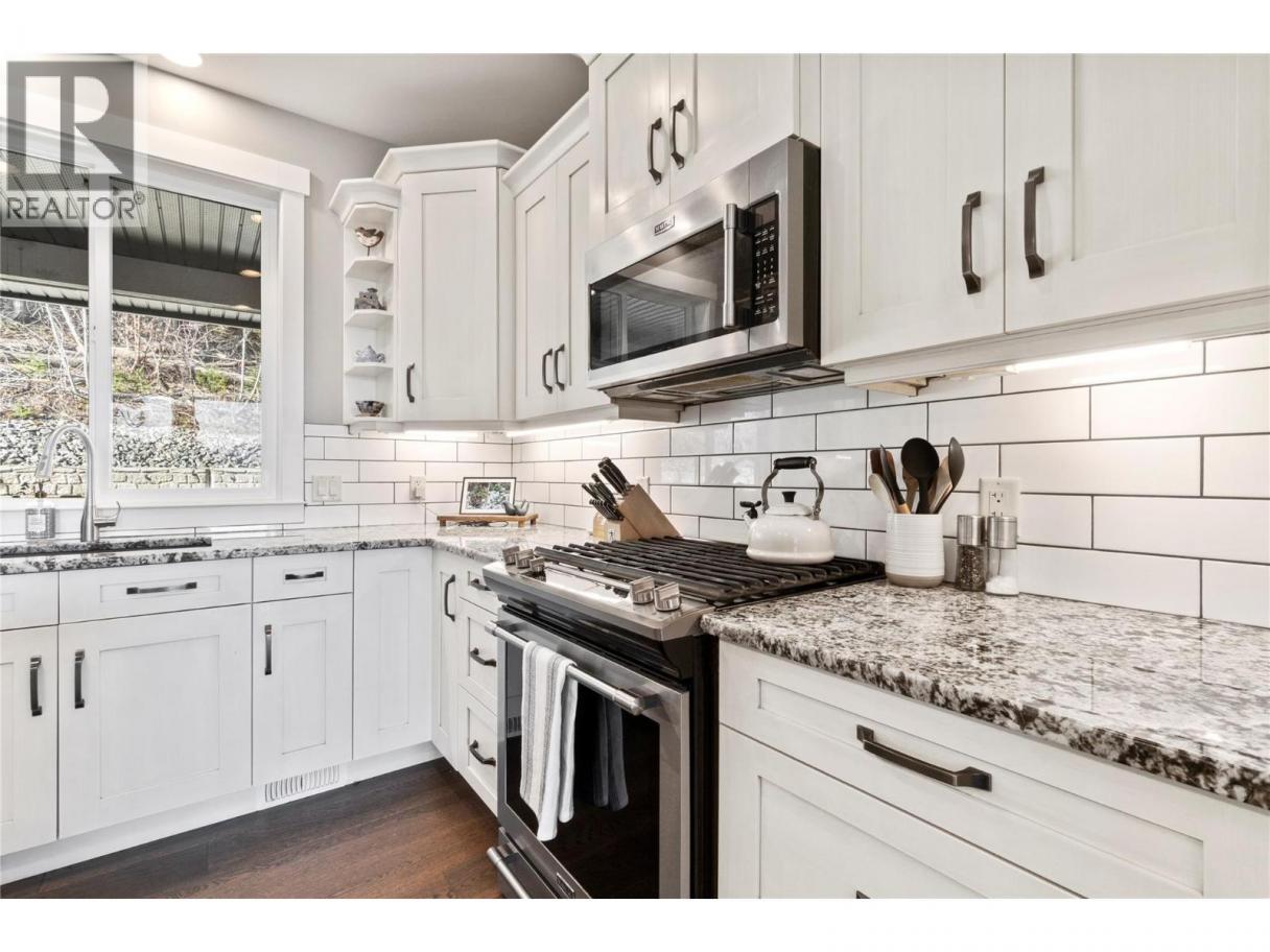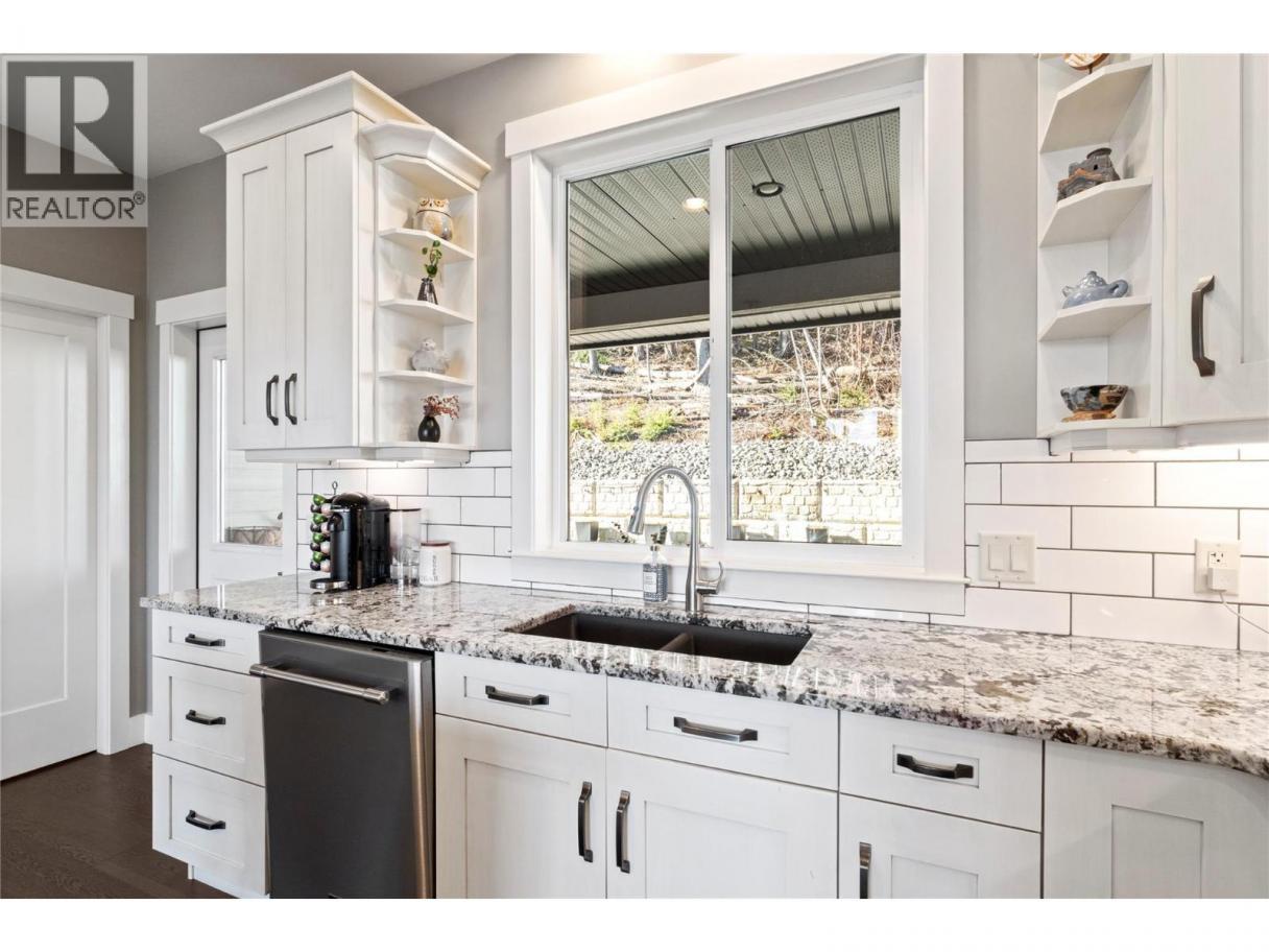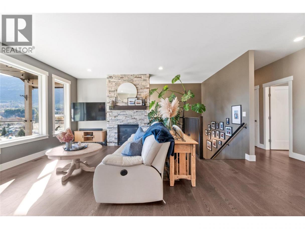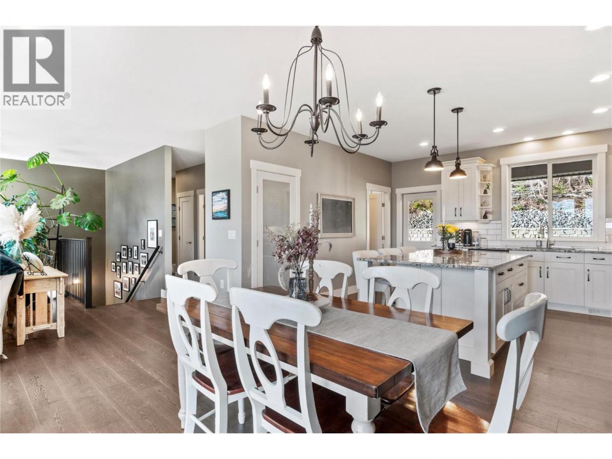 Captivating lakeview home in the welcoming community of Canoe, just a short walk to the beach/trails. Built in 2017 and meticulously maintained, this 5-bedroom home offers excellent flexibility with a fully self-contained 1-bedroom suite—ideal for extended family or easily incorporated back into the main home. The open-concept main living area features a wall of front-facing windows showcasing stunning lake views & sunsets. The kitchen offers granite countertops, subway tile backsplash, gas stove, pot drawers, a large island w/storage & power, and a walk-in laundry room with sink & pantry Enjoy seamless indoor-outdoor living w/ direct access from the kitchen to the backyard, complete with built-in counters, bar seating, and gas BBQ hookup—perfect for Shuswap summer evenings. The front deck is spacious, partially covered, and ideal for relaxing and taking in the view. The living room features a striking rock-faced gas fireplace. The primary bedroom includes a window bench and a spa-inspired 5-piece ensuite with double sinks, soaker tub, and oversized tiled shower. Downstairs offers a spacious foyer, additional bedroom or office. Suite has its own entrance, laundry, 9’ ceilings, solid surface kitchen counters - very nice and comfortable. Additional perks include central A/C, a fully fenced low-maintenance yard with artificial turf, backing onto parkland, and an extended garage bay for added storage or workspace. See feature sheet for more info and highlights (id:6769)