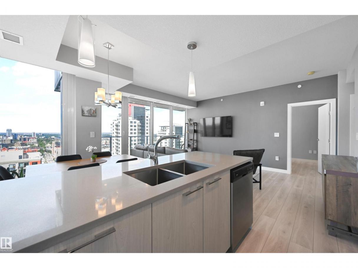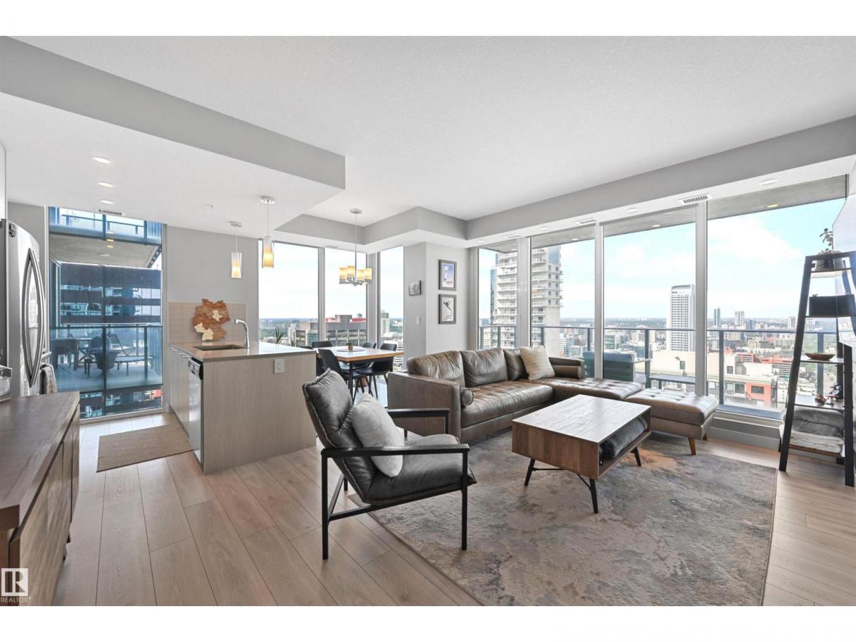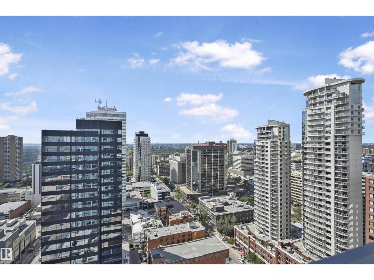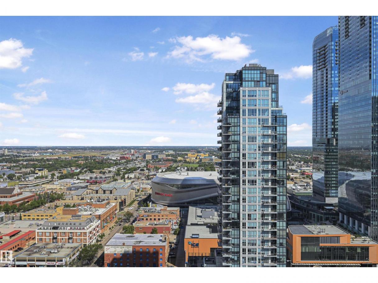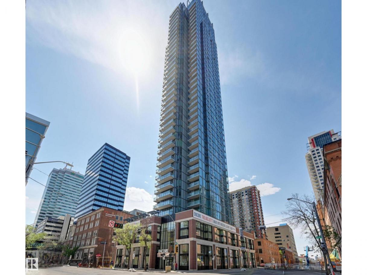 Encore Tower is a stunning 43 storey glass highrise in the heart of our downtown core, within walking distance to every amenity including Rogers Place/Ice District. Impressive skyline views from every suite & designed by Dub Architects. Gorgeous 3 storey lobby w/full concierge service & an expansive amenity floor including a fitness facility & indoor/outdoor entertaining lounges. #2701 offers a naturally lit & well functioning layout, perfect for the professional or empty nester & ideal for an urban lifestyle. Enjoy stunning West/South/North views through expansive floor-to-ceiling windows, w/direct access from your private balcony. Wide plank flooring, neutral tones & sleek modern lines offer timeless appeal for any style. Kitchen highlights modern flat panel cabinets, quartz counters, prep island & dining nook. Primary bedroom is complete w/dual closets & 3pc ensuite. 2nd bedroom & 4pc guest bathroom are on opposite ends for maximum privacy. Insuite laundry & titled underground stall complete this home. (id:6769)