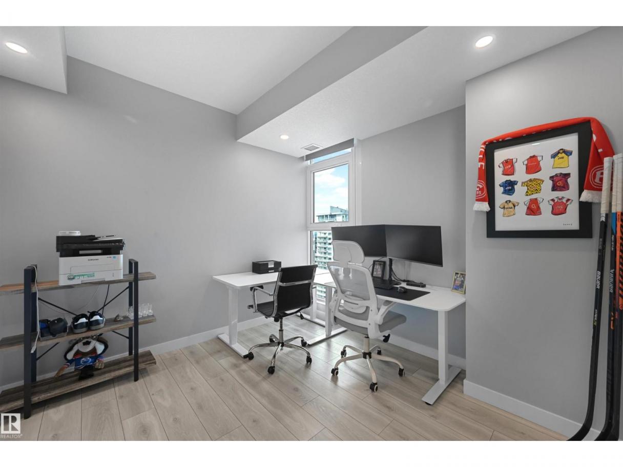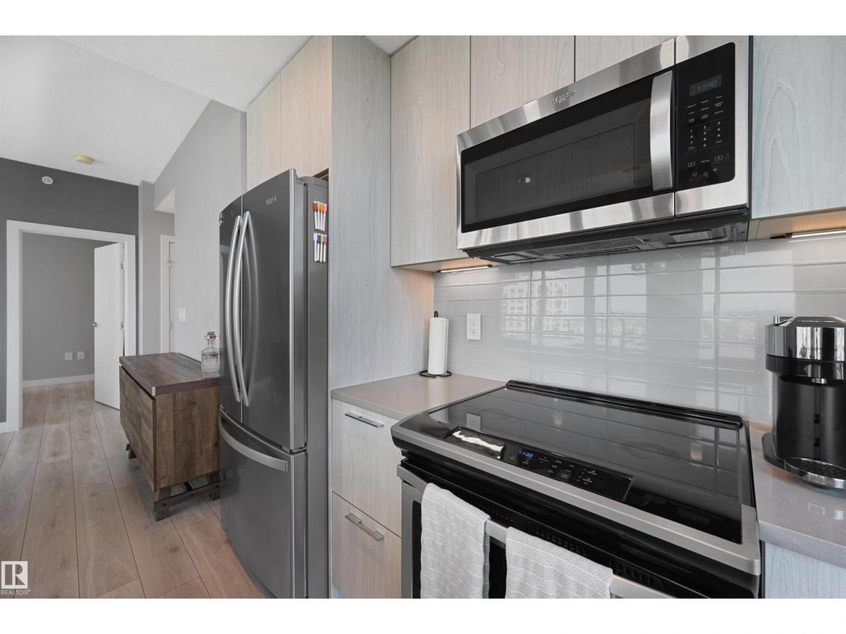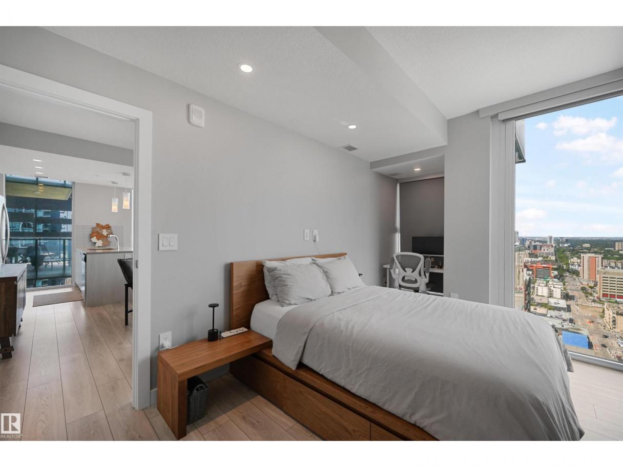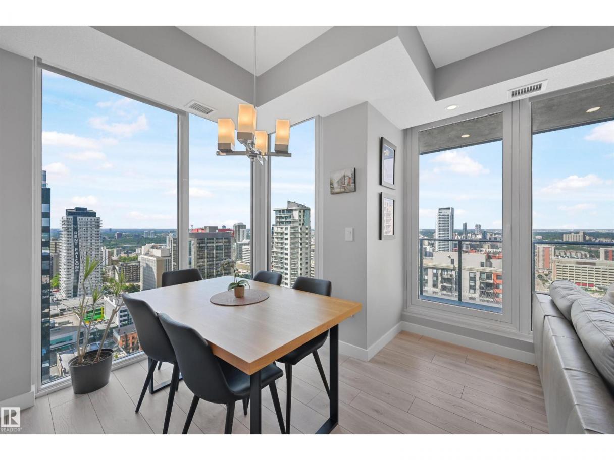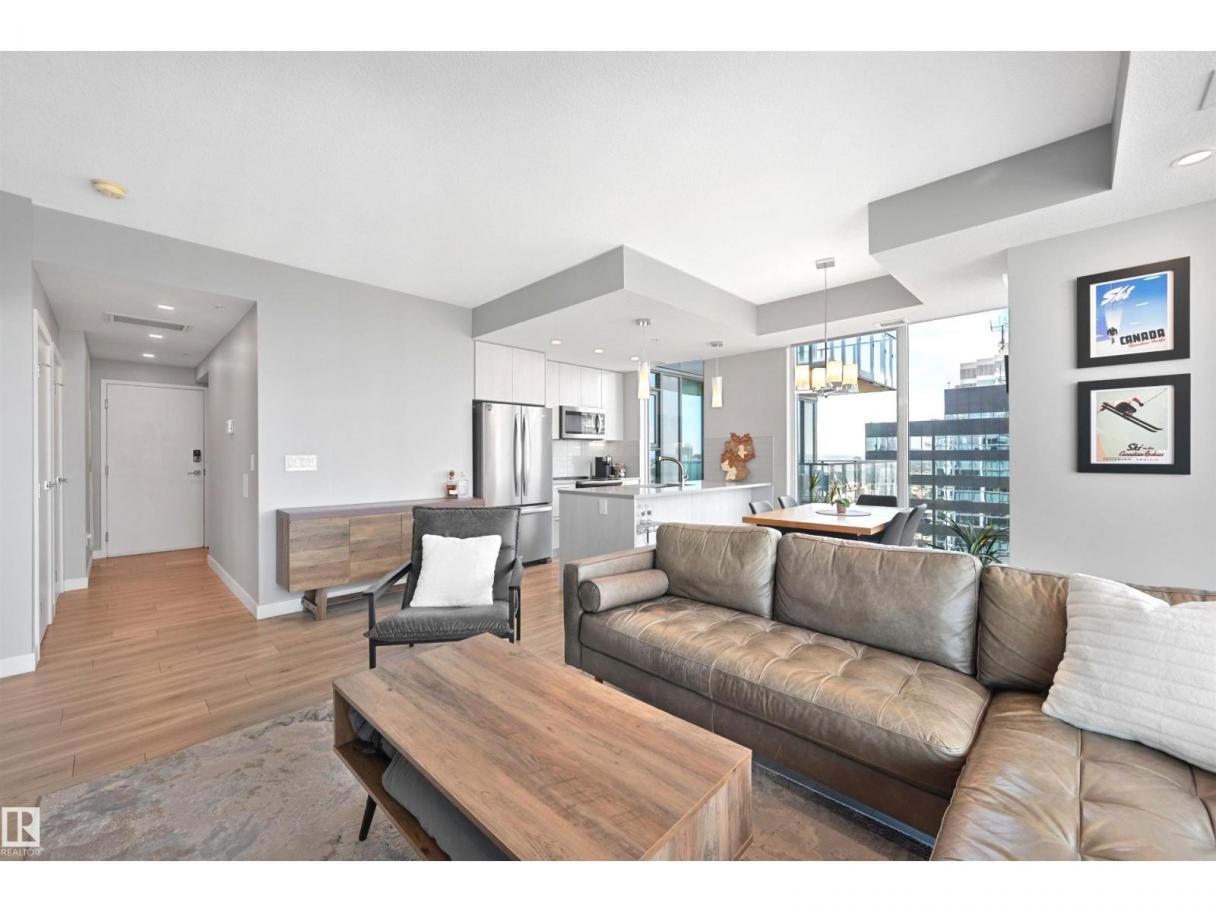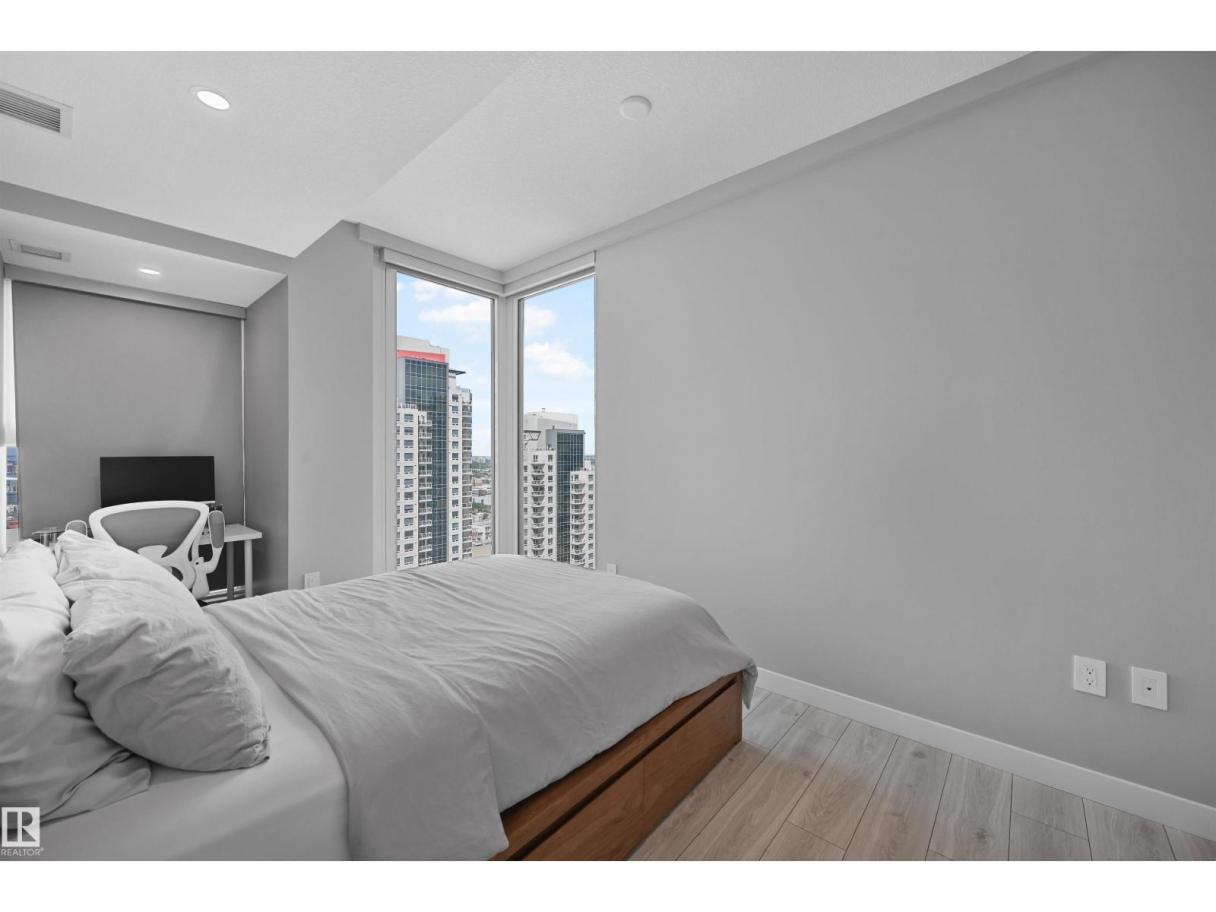 Encore Tower is a stunning 43 storey glass highrise in the heart of our downtown core, within walking distance to every amenity including Rogers Place/Ice District. Impressive skyline views from every suite & designed by Dub Architects. Gorgeous 3 storey lobby w/full concierge service & an expansive amenity floor including a fitness facility & indoor/outdoor entertaining lounges. #2701 offers a naturally lit & well functioning layout, perfect for the professional or empty nester & ideal for an urban lifestyle. Enjoy stunning West/South/North views through expansive floor-to-ceiling windows, w/direct access from your private balcony. Wide plank flooring, neutral tones & sleek modern lines offer timeless appeal for any style. Kitchen highlights modern flat panel cabinets, quartz counters, prep island & dining nook. Primary bedroom is complete w/dual closets & 3pc ensuite. 2nd bedroom & 4pc guest bathroom are on opposite ends for maximum privacy. Insuite laundry & titled underground stall complete this home. (id:6769)
