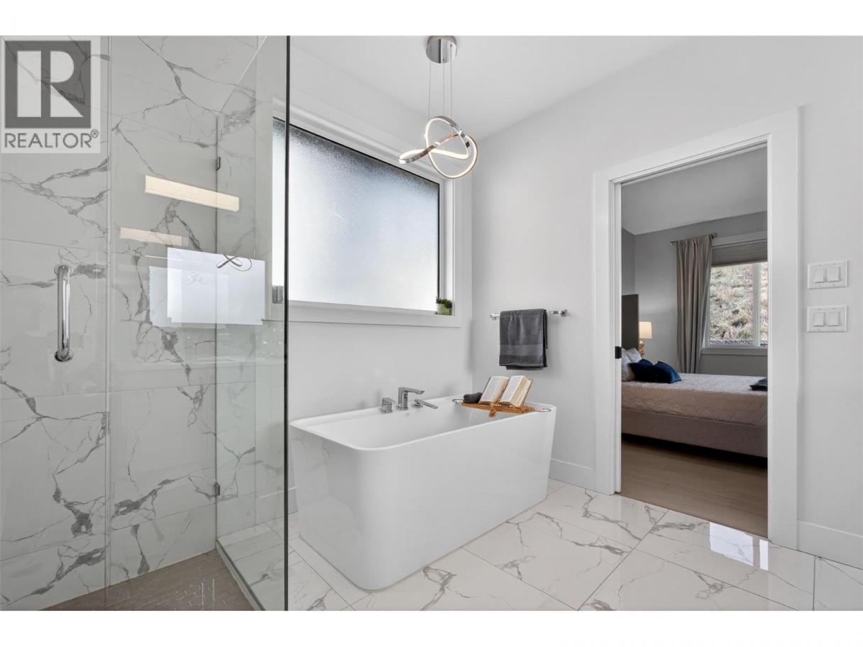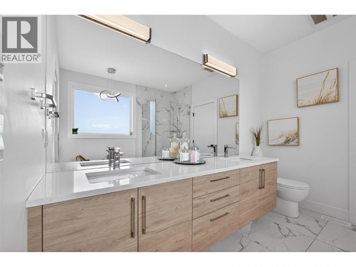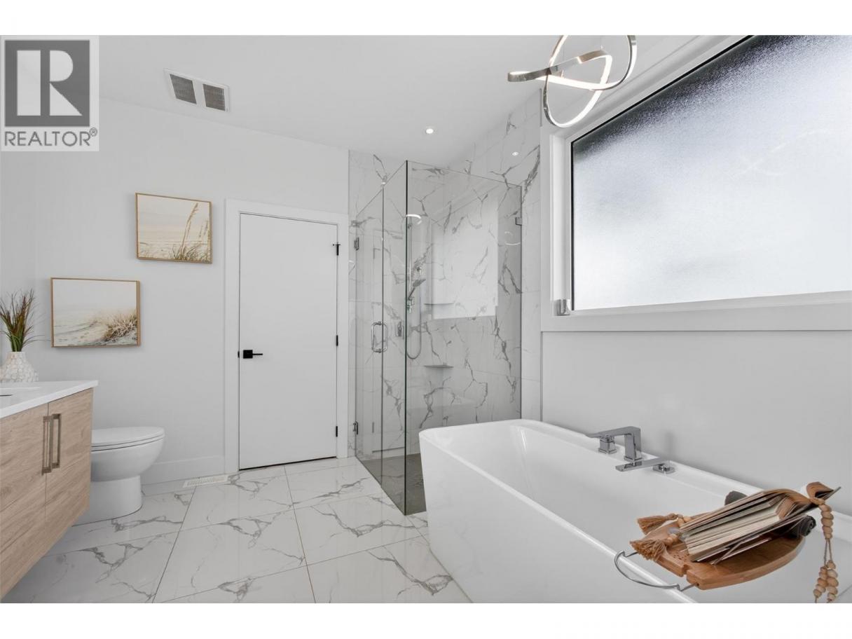 Located in the highly sought-after Wilden neighbourhood is a custom-built rancher with a 2-bed LEGAL suite blending upscale living with everyday practicality. Offering 5 bedrooms, 3.5 bathrooms, and over 3,600 sq ft, this home is perfectly suited for families who value space, style, and flexibility.The main level has a thoughtful design and high-end finishes throughout, featuring a bright open-concept layout with vinyl plank flooring and large windows that flood the home with natural light. The kitchen is a true standout, complete with quartz countertops,sleek black cabinetry,S/S appliances, a gas stove, and a massive 7.5 ft island—perfect for cooking and entertaining. The dining area and living room with a gas fireplace create a warm, inviting space for everyday living.The primary bedroom is a true retreat, featuring a walk-in closet and a stunning 5-piece spa-like ensuite.Downstairs,there is a family room which then also connects the legal suite. The self contained suite offers the option to function as a 1 or 2-bedroom layout, giving you flexibility to retain a fifth bedroom for the main home if desired.The fully fenced backyard complete with irrigation, a covered patio, and hot tub—ideal for relaxing while kids and pets enjoy the yard. Located close to schools,parks,UBCO,airport not to mention a future shopping centre coming soon to The Ponds.This location offers both convenience and lifestyle and will check every box to elevate your everyday living. (id:6769)