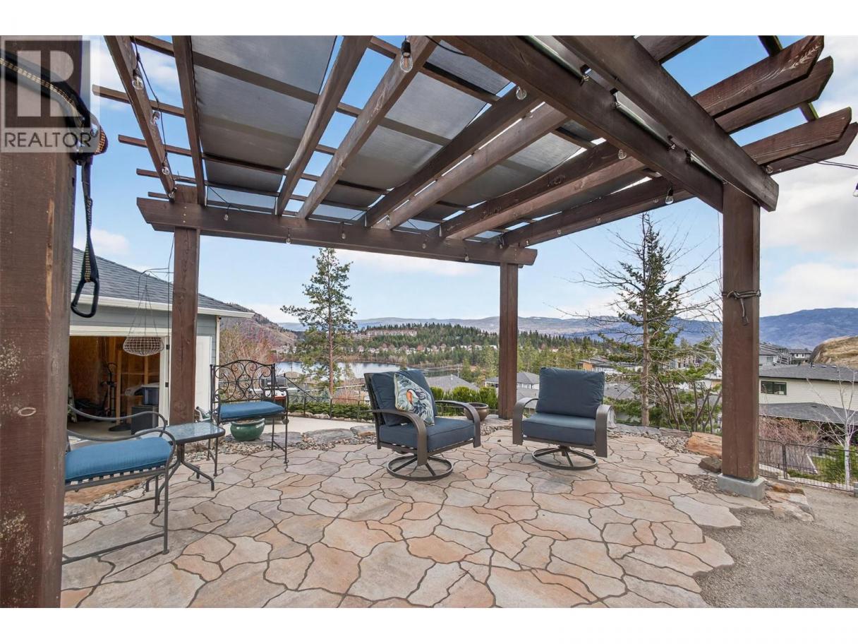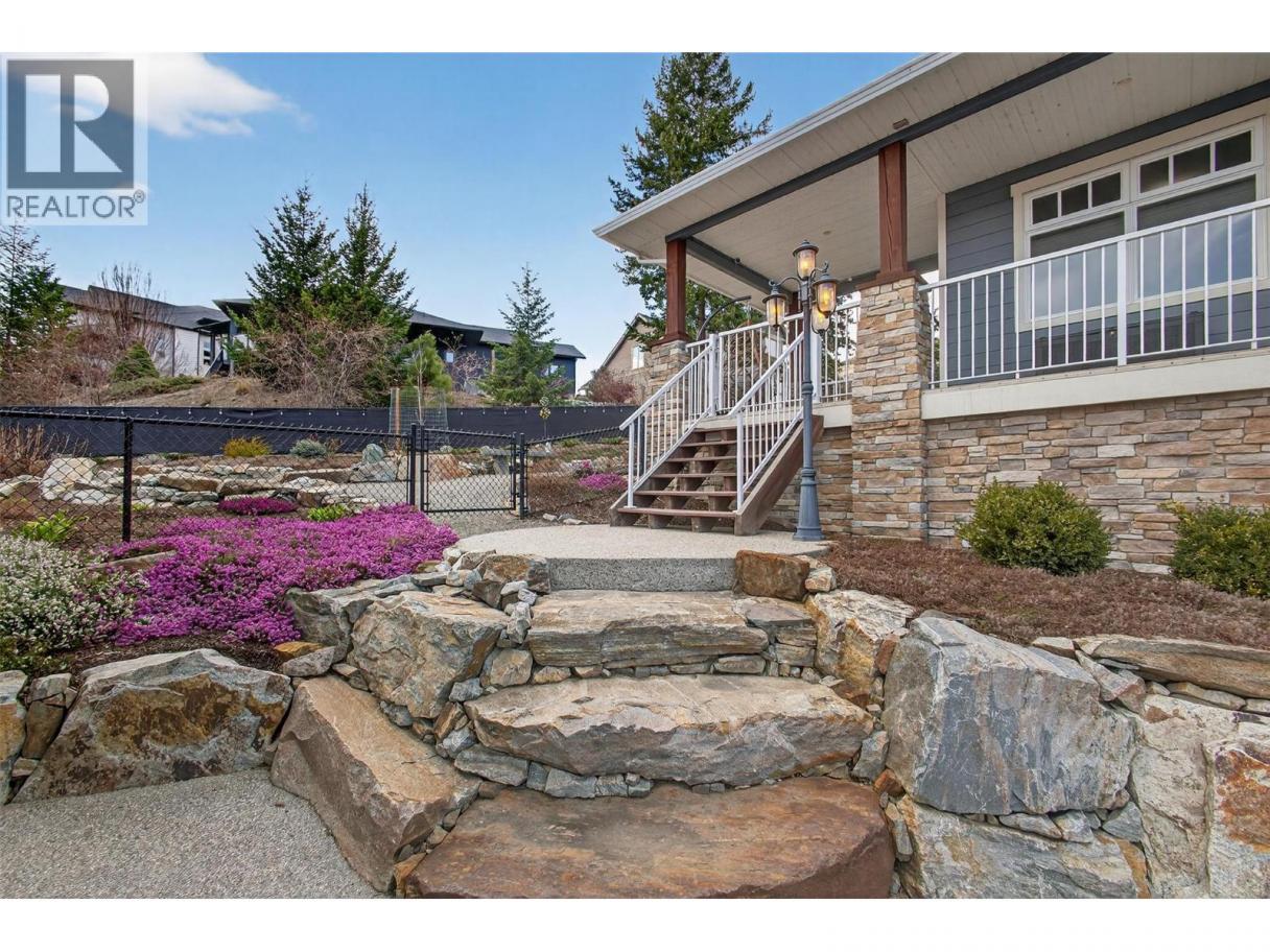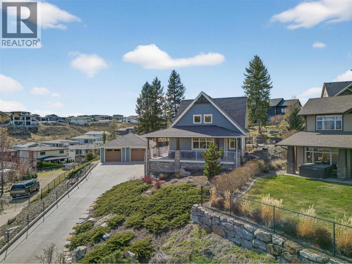 TRULY that “Home Sweet Home” feeling! Tucked into one of West Kelowna’s most peaceful pockets in Tallus Ridge, this custom cottage style home offers a rare sense of comfort, privacy, and everyday escape. Set on a quiet cul-de-sac directly across from Stone Grove Park, the setting invites a slower, more intentional pace of living. Spanning 2,700+ sqft (including unfinished basement), this 3-bedroom, 2-bath home blends warmth and functionality with a layout that feels both welcoming and refined. The main level is designed for connection, featuring a beautifully appointed kitchen with Norelco custom cabinetry, granite countertops, and induction cooking, flowing seamlessly into bright, inviting living spaces ideal for gathering and unwinding. Upstairs offers a peaceful retreat with the primary suite, second bedroom, and a spa-inspired ensuite featuring a walk-in tiled shower and deep soaker tub, the perfect place to recharge. One of the most charming features is the wraparound veranda with remote sunshades, it offers an extension of the living space and the perfect spot for slow mornings & those golden-hour moments. The fully landscaped and irrigated 0.41-acre property has been designed for privacy and enjoyment, offering multiple stone patio areas, a pergola with awning overlooking Shannon Lake, garden spaces, and room to add a pool for those envisioning a true backyard retreat. A standout feature is the detached double garage & workshop, offering 1,000+ sq. ft. of versatile space with 220 AMP service, EV-ready wiring, and direct access to the backyard — ideal for hobbies, storage, or future flexibility. With vision, there is also potential to enhance the property over time, including the option to explore a suite in the lower level and/or a carriage suite above the garage. Steps away from Shannon Lake Golf Course, and surrounded by trails, parks, and the natural beauty of Tallus Ridge -- this property invites you to slow down, settle in, and truly feel at home. (id:6769)