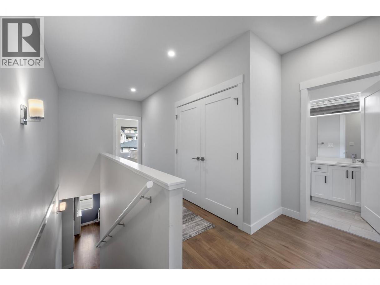 Welcome to this bright & airy, pristine 3 bedroom & den, 4 bathroom end unit townhome in The Ridge at Juniper West - an excellent choice with so much space and versatility! The open concept main living area flows seamlessly with an abundance of natural light and a beautiful modern kitchen featuring cabinetry to the ceiling, an island with seating for four, quartz countertops and stainless steel appliances including a gas range. New laminate flooring has been installed throughout the upper floor - aesthetically pleasing with smooth transition from room to room. The primary bedroom offers upgraded features - a walk in closet with durable closet organizer and ensuite with two undermount sinks and quartz countertops. New carpet has been installed on the stairs, laminate in the lower level bedroom, recent painting done and stylish Fittes floor vents added. Parking isn't an issue here with an oversized garage, driveway, extra parking stall and street parking out front. With easy access to a dog park, children's playground and tons of hiking and biking trails nearby, this is a prime location! Central a/c, south facing covered deck, two pets allowed. (id:6769)