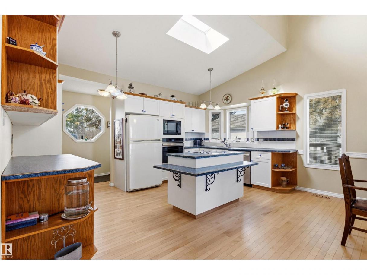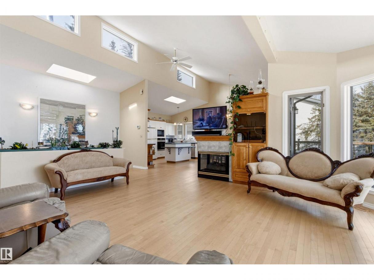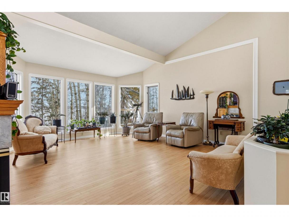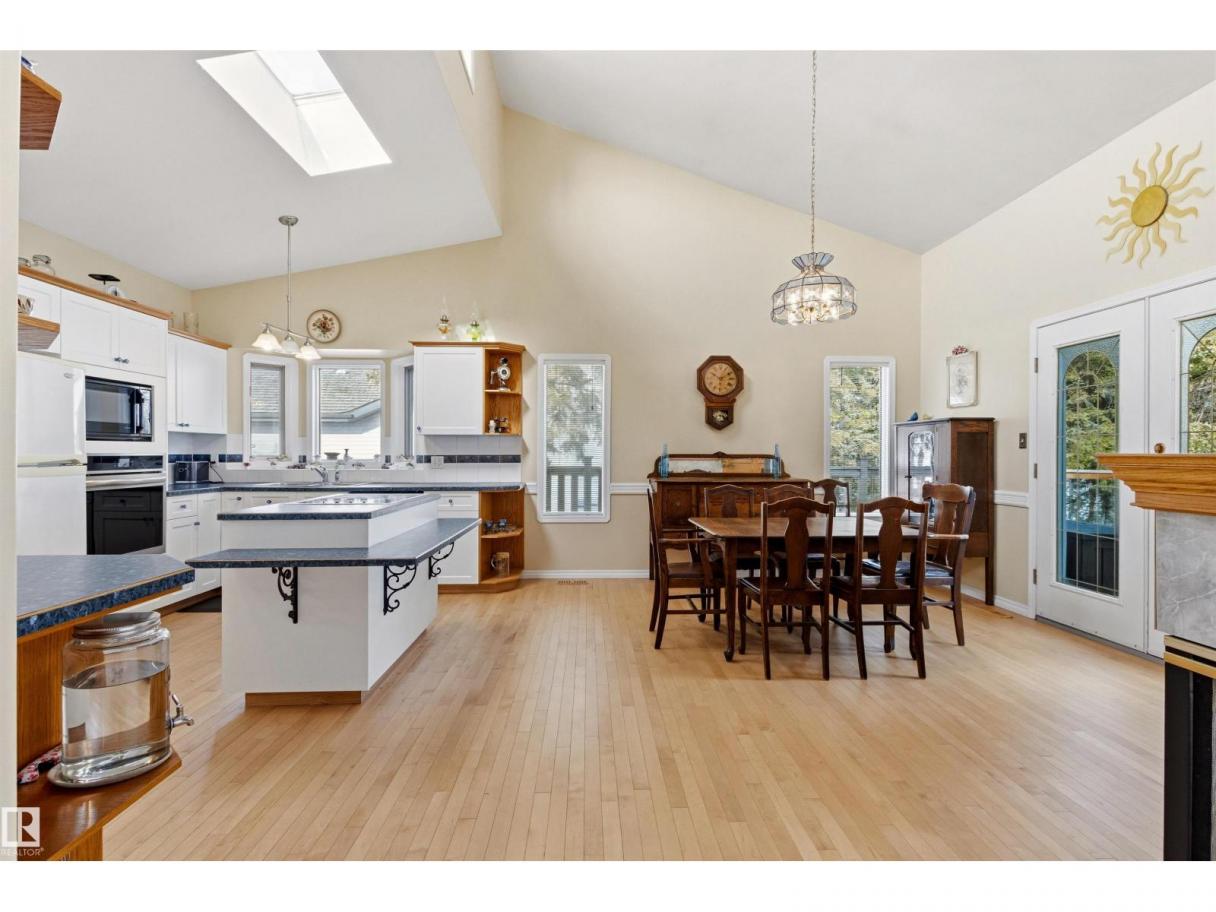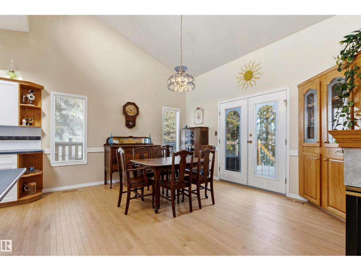 Nestled above the water in South Seba Beach and less than 1 hour from Edmonton, this stunning bungalow w/ over 2400 sq. ft. of total living space provides private lakefront living, peaceful enjoyment of lake views & bird watching. The interior features vaulted ceilings, a three-sided fireplace & maple hardwood floors throughout the spacious main level, which is flooded in natural light from skylights & plentiful windows. From the dining room, French doors open onto a glass-railed deck overlooking the perfect water backdrop. The main floor bdrm w/ its own French doors, offers deck access, lake views, a walk-in closet & a 4-pc ensuite. A main-level laundry area & 2nd bathroom add to everyday convenience. The fully finished basement w/ a roomy rec. area & 2 more bdrms provide space for family & friends. Exterior highlights include a wraparound deck, mature landscaping, perennial flower beds & private stairs to the shoreline. A dbl heated garage, metal roof & 3 storage sheds complete this exceptional offering (id:6769)