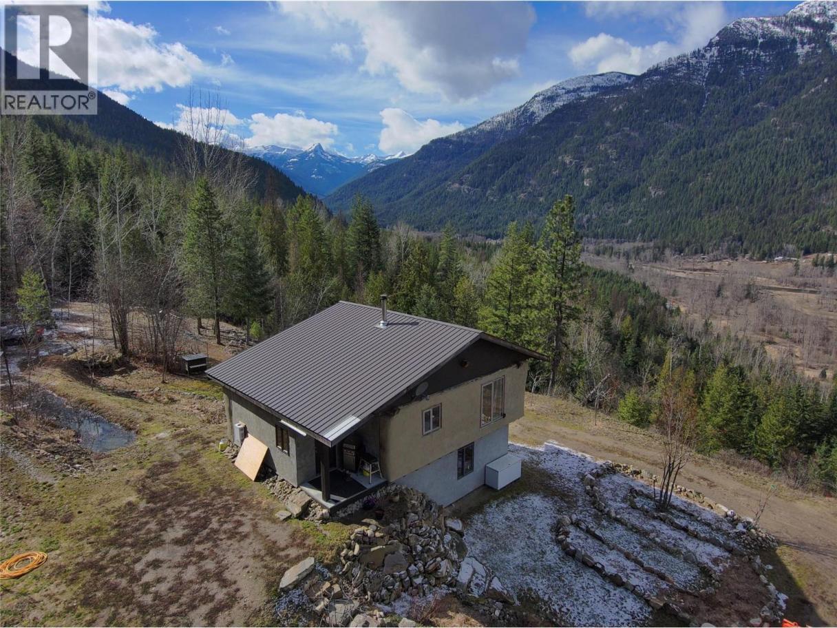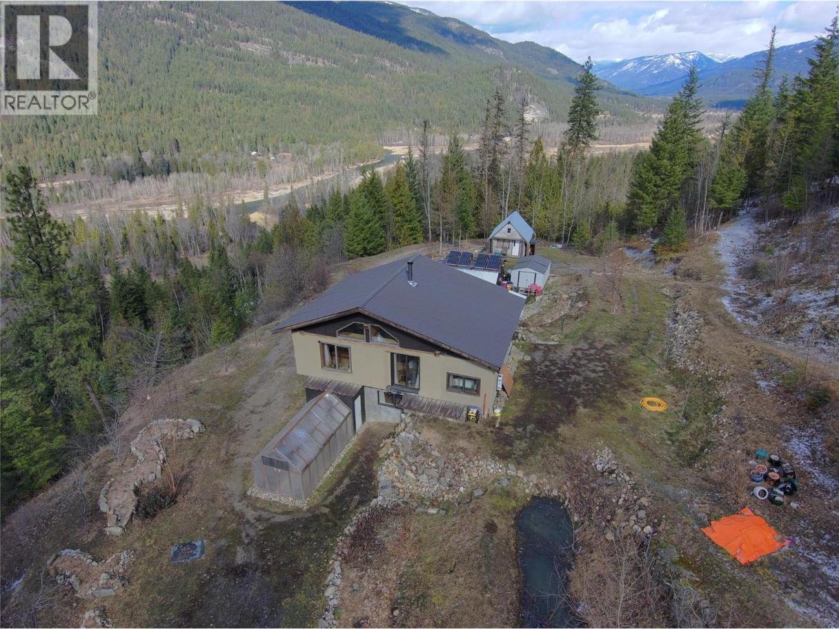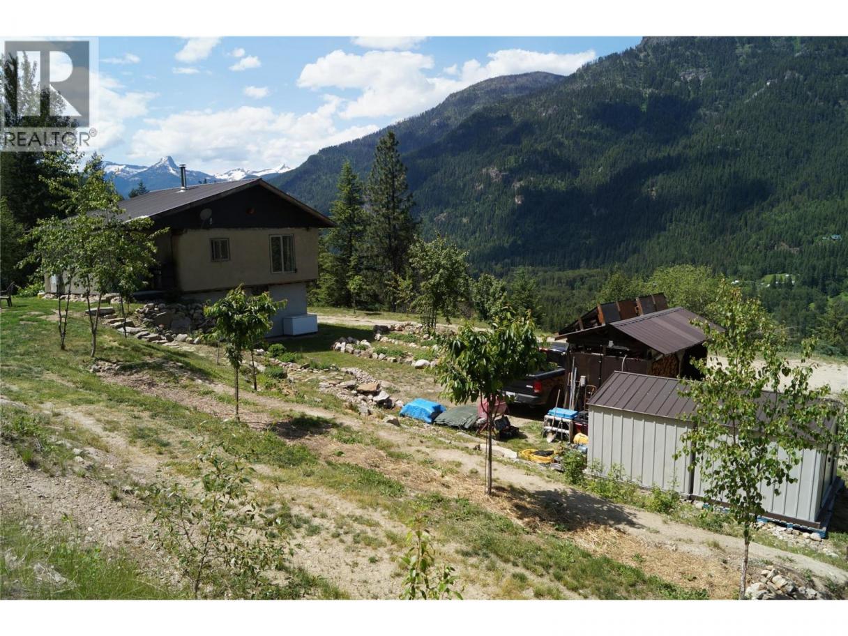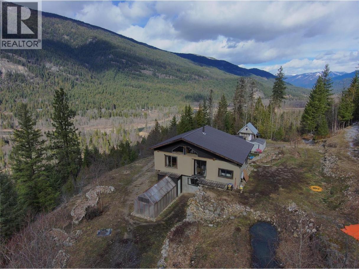A quarter share of 78.78 acres made affordable through a co-operative share structure. The title, covering only four exclusive lots, is owned by Slocan 4566 Co-operative Association (CP-0002012). Purchasing this share grants you exclusive use of Housing Site 4 and 1.5 acres of a cleared bench of land and buildings. This unique off-grid homestead built in 2007, offers a blend of rustic craftsmanship and modern sustainability on unzoned land with direct access to Crown land. The home is a two-story, open-concept house featuring straw-bale insulation, metal roofing, wood flooring, and granite countertops. It also features Italian marble tiles and a traditional fireplace. The home is fully self-sufficient with 4 solar panels, a spring-fed water system, a composting toilet, and on-demand propane hot water. Operating costs average just $500 per month, insurance included. The sun-exposed acreage features a greenhouse, chicken coop, and a variety of fruit trees and berries (apple, cherry, plum, grape, and more). A secondary 12' x 16' straw-bale cabin with a loft, wood stove, and wood flooring is included. There are one woodshed, two 16'x8' storage sheds, and a dedicated root cellar that houses the electrical battery bank. Despite its remote feel, internet is available. Very rare, move-in-ready opportunity for anyone seeking a self-sufficient lifestyle, a creative off-grid retreat, or a sustainable hobby farm with breathtaking panoramic views. Click on the ""Multimedia"" link below for the 3D tour. (id:6769)