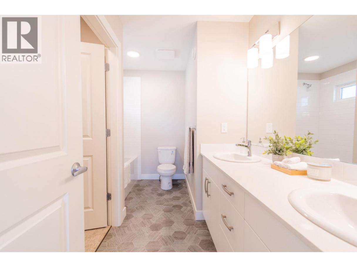 The last brand new unit available at The Burrows in Campbell Creek, and it has gotten even better with Step 4 Building Code construction, making it more energy efficient than most homes. Located just a 15 minute drive from downtown Kamloops, this bareland strata development offers fenced yards, garages, and a park just steps away with pickleball courts and walking paths. This level entry home is located close to the park space and offers over 2,000 sqft of living space. Inside you’ll find an open concept living area and a stylish kitchen with quartz countertops and a spacious island that works well for everyday living or hosting friends. The primary bedroom includes a full ensuite with double sinks and a walk in closet, while the second bedroom is ideal for guests or a home office. The unfinished basement provides plenty of room to expand with space for additional bedrooms, a rec room or storage. The home also features a single car garage plus parking in the driveway and a fenced yard. Low strata fee of $105 per month and pet friendly. This home may qualify for the new first time home buyer GST rebate, and buyers using CMHC financing may also qualify for up to a 25% rebate on mortgage insurance due to the energy efficient construction. Late spring / early summer possession available. Photos are of show suite. (id:6769)