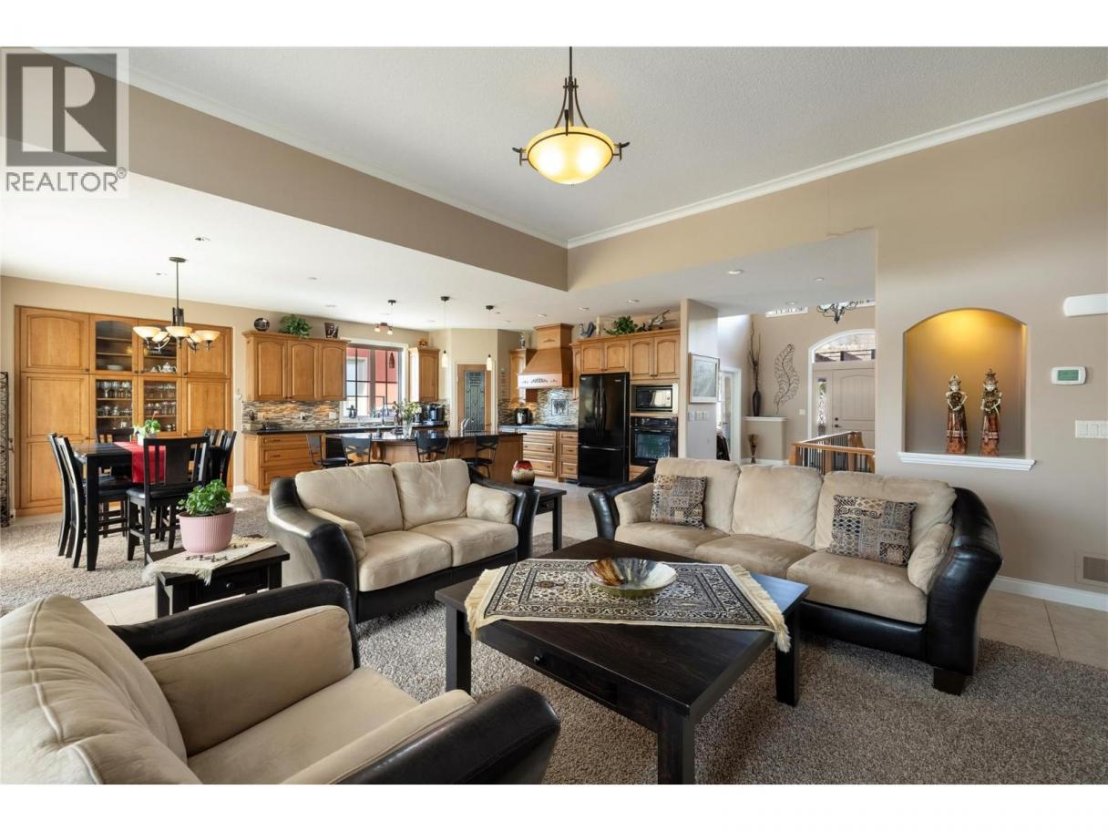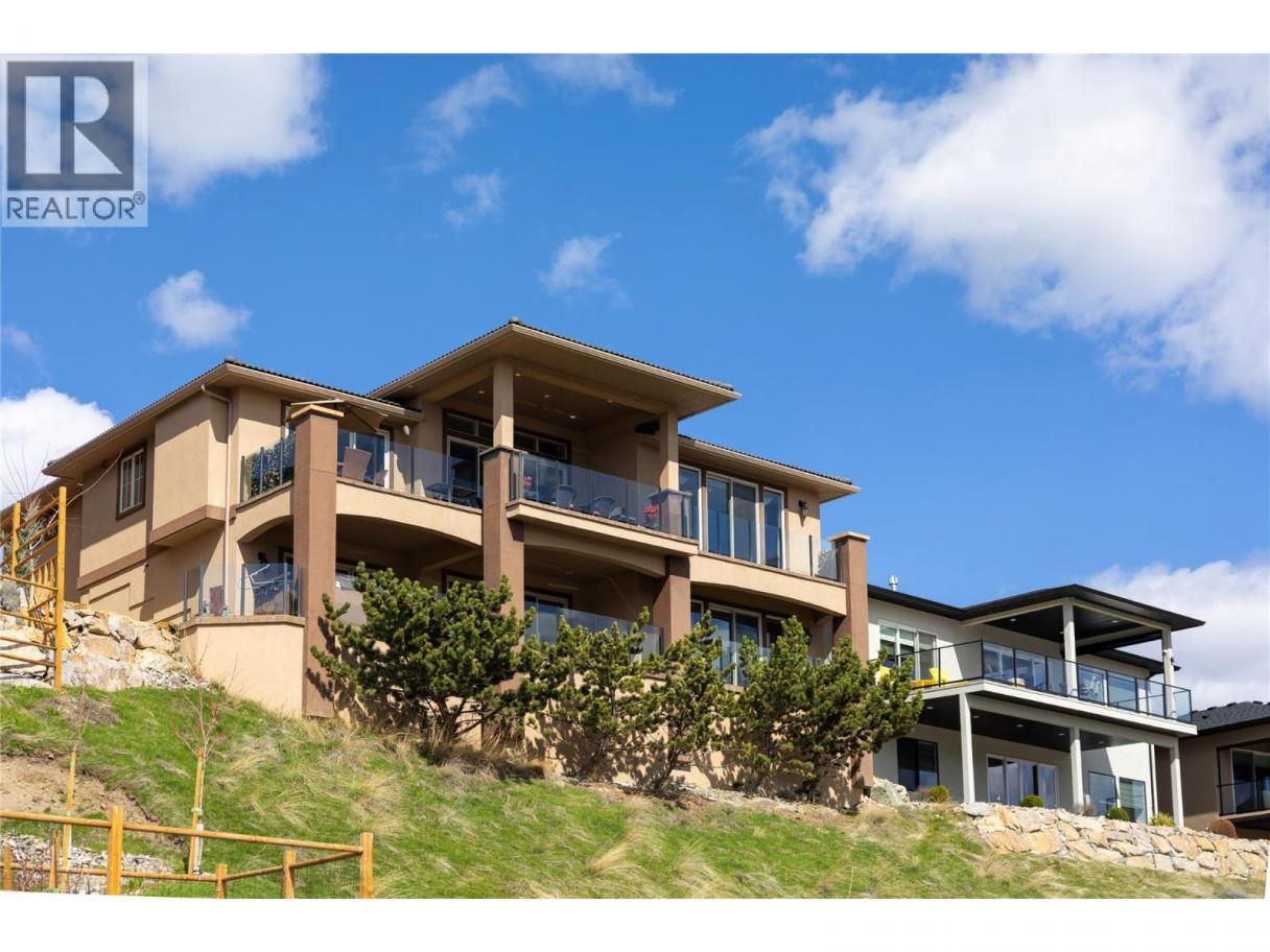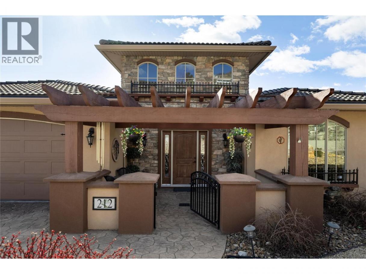 A truly spectacular view of Okanagan Lake and the neighbouring vineyards is made even more perfect by sharing it with friends on the covered and sun decks both up and down. This custom designed and built home is perfect for entertaining and being located in the prestigious golf neighbourhood of The Rise, the neighbourhood aesthetic is carefully cared for. Entering through the Tuscan-inspired courtyard, the towering 16' ceiling of the entryway will take your breath away as you explore the spacious main floor plan. The great room comprises a generous entertaining space adjoining the dining room and chef's kitchen that features a large granite island. The principal bedroom offers more of that view that just doesn't quit as well a well-appointed ensuite. Downstairs you'll find 2 more bedrooms and multiple entertaining spaces including an under-garage space prepped for a future media room. Heated and cooled by geothermal, this home's efficiency will surprise you despite it's ample size. With a 100 yr concrete tile roof and quality construction evident throughout, 212 Harvest Court will endure for many years to come. Book your private tour and make this amazing property yours today!! (id:6769)