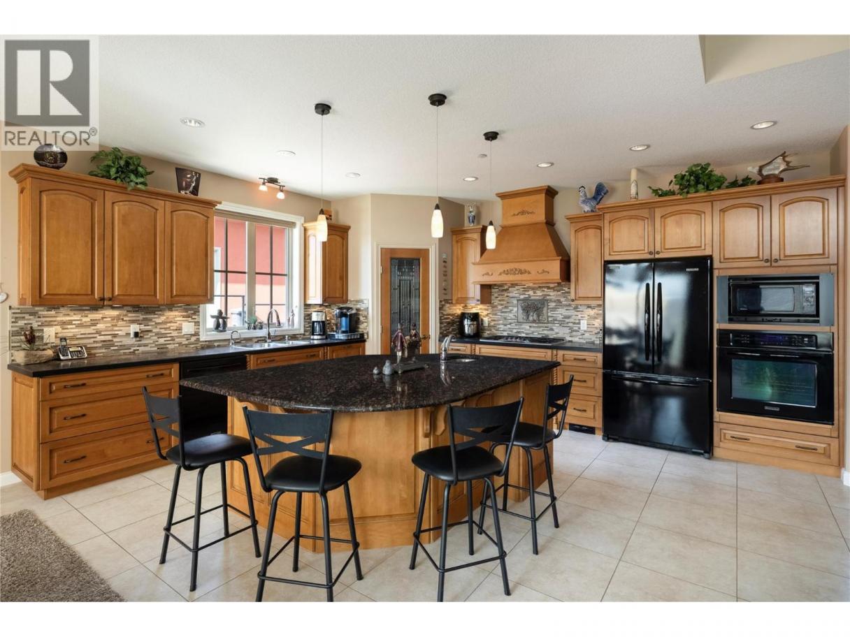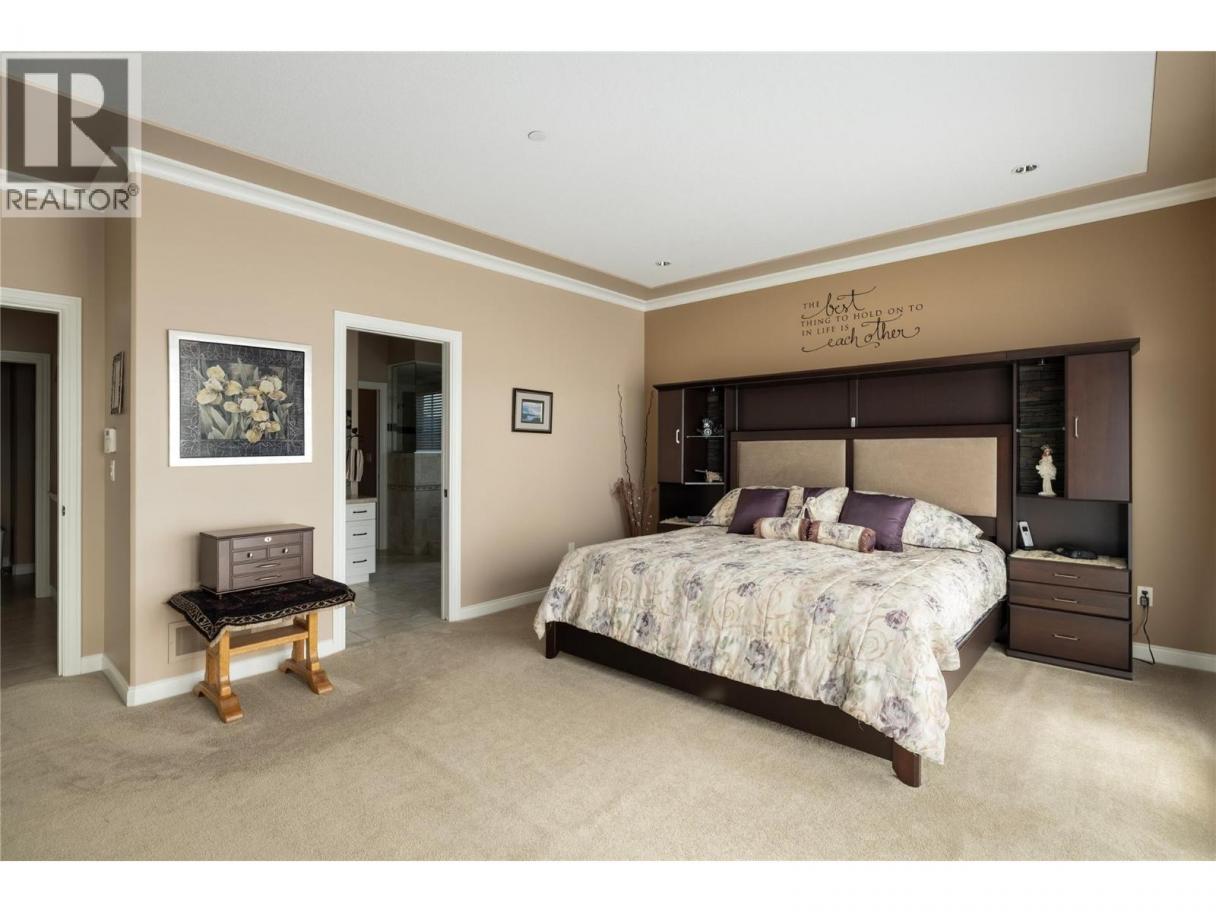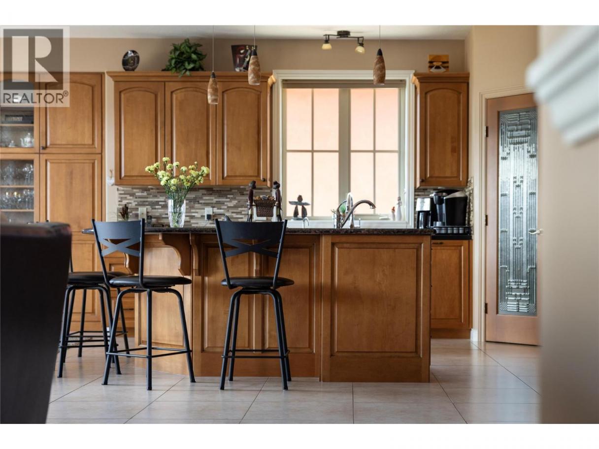 A truly spectacular view of Okanagan Lake and the neighbouring vineyards is made even more perfect by sharing it with friends on the covered and sun decks both up and down. This custom designed and built home is perfect for entertaining and being located in the prestigious golf neighbourhood of The Rise, the neighbourhood aesthetic is carefully cared for. Entering through the Tuscan-inspired courtyard, the towering 16' ceiling of the entryway will take your breath away as you explore the spacious main floor plan. The great room comprises a generous entertaining space adjoining the dining room and chef's kitchen that features a large granite island. The principal bedroom offers more of that view that just doesn't quit as well a well-appointed ensuite. Downstairs you'll find 2 more bedrooms and multiple entertaining spaces including an under-garage space prepped for a future media room. Heated and cooled by geothermal, this home's efficiency will surprise you despite it's ample size. With a 100 yr concrete tile roof and quality construction evident throughout, 212 Harvest Court will endure for many years to come. Book your private tour and make this amazing property yours today!! (id:6769)