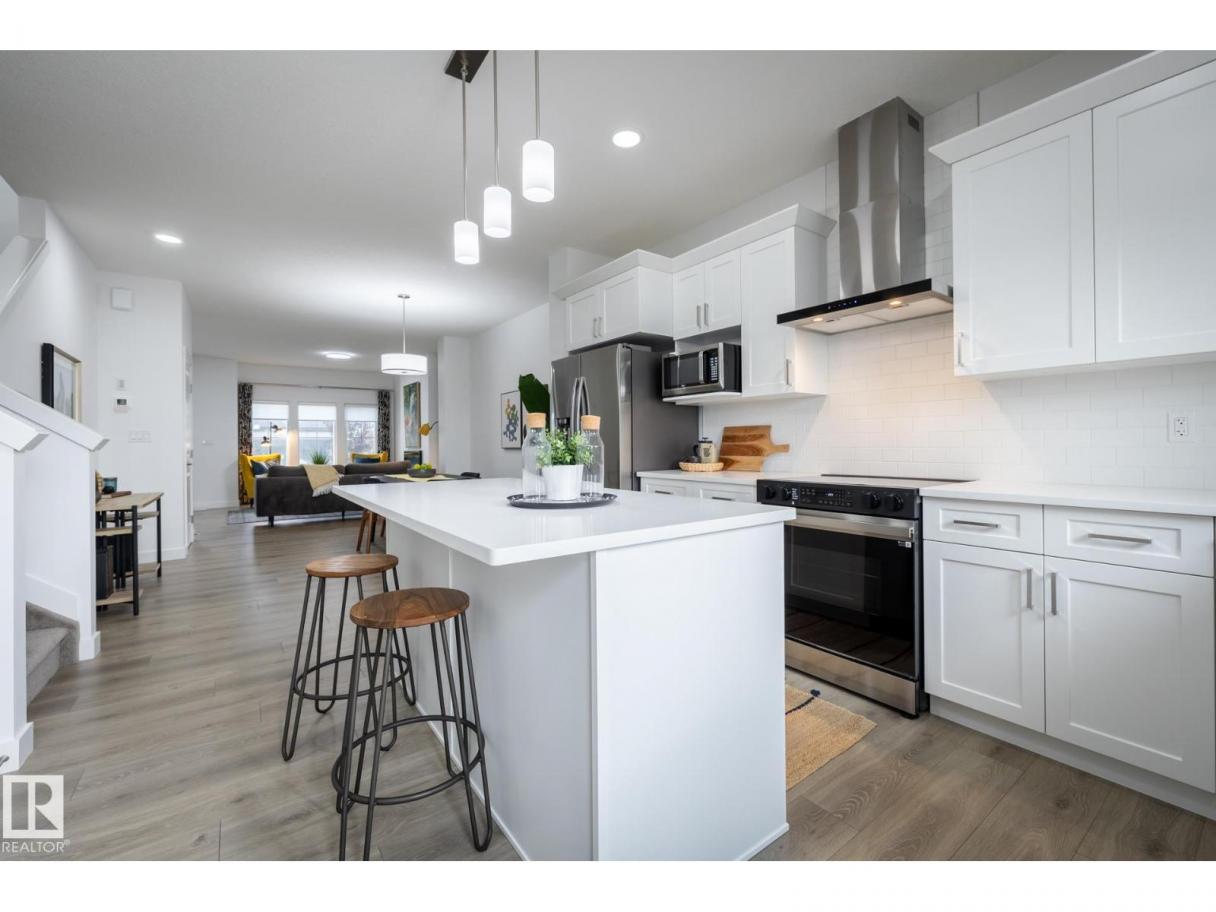 Discover the Kenton-Z by Akash Homes, a beautifully crafted 1602 sq ft two-storey home in Verge at Stillwater. Designed for modern family living, this home features an open-concept main floor which offers 9' ceilings, flowing French-imported laminate flooring and an open-concept flow where the kitchen, dining, and living areas connect seamlessly - perfect for entertaining or everyday comfort. Large windows fill the space with natural light, highlighting stylish finishes and thoughtful design details throughout, including an electric fireplace in the living room. Upstairs, enjoy a flex space, laundry closet, and three spacious bedrooms, including a primary suite with a walk-in closet and a private ensuite. Added perk includes a separate side entrance & $5000 BRICK CREDIT, ideal for future development. PICTURES ARE OF SHOW HOME; ACTUAL HOME, PLANS, FIXTURES, AND FINISHES MAY VARY AND ARE SUBJECT TO AVAILABILITY/CHANGES WITHOUT NOTICE. (id:6769)