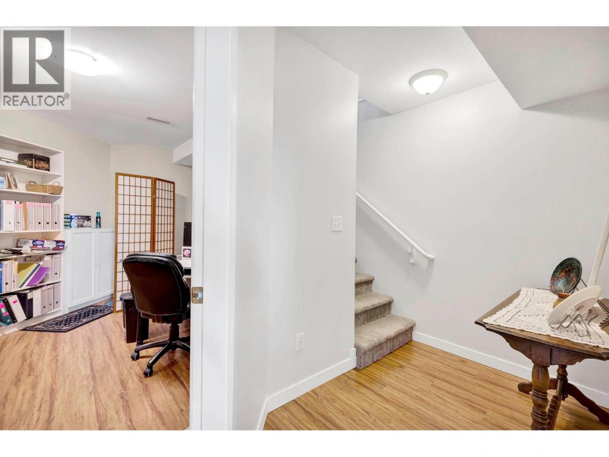 Beautifully maintained and updated 2+1 bedroom 3 bathroom townhouse with unobstructed east facing views in desirable McKinley Court complex. This level entry unit has a bright and open living room, dining room with access to a deck, updated Island kitchen, main bedroom with 3 piece ensuite, 2 piece main bathroom, and main floor laundry. The walk-out basement has a good sized den, two additional bedrooms, 4 piece bathroom, and access to a private patio. Immaculate condition inside and out with great views upstairs and downstairs. Many updates done throughout including, kitchen, bathrooms, flooring, hot water tank, and more. Move-in ready and quick possession possible! (id:6769)
