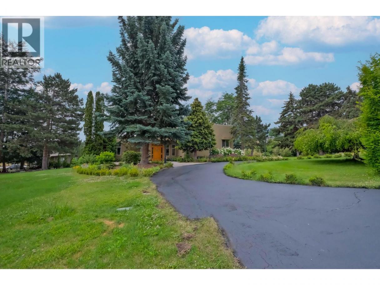Welcome to your own private retreat. This exceptional adobe-style rancher offers over 3,800 sq. ft. of comfortable, versatile living space set on a beautifully landscaped, mostly flat lot of more than three-quarters of an acre. Thoughtfully designed for effortless living, the main level is completely step-free, seamlessly connecting the front entry to the expansive rear patio truly embodying the essence of a sprawling rancher. Inside, the well-planned layout is intelligently divided into two distinct living quarters anchored by a central kitchen, making it ideal for multigenerational living, extended guests, or added privacy. The main floor hosts the primary bedroom and principal living areas, while three additional bedrooms are positioned on the upper level. Downstairs, a fully self-contained one-bedroom suite currently operates as a successful Airbnb, providing excellent mortgage support or comfortable guest accommodation. Outdoor living is just as impressive, featuring three generous patios designed for relaxation and entertaining. A standout is the shaded patio off the kitchen, nestled beneath mature trees that create a natural canopy and welcome relief from the southern sun. This home was made for gathering spacious enough to host 50+ guests indoors, with even more room when the patios extend the celebration outdoors. Additional highlights include two furnaces, two hot water tanks (one on-demand), and two septic fields, offering both comfort and long-term functionality. Whether you’re seeking a peaceful sanctuary, a flexible family layout, or the perfect home for entertaining, this property truly delivers. (id:6769)