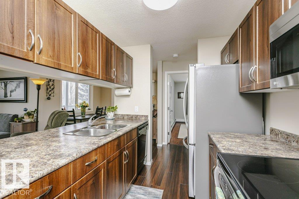 Bright and stylish second-floor corner end unit with an oversized wrap-around deck and desirable west exposure—perfect for soaking up evening sun. This well-maintained 2-bedroom, 2-bath condo features an efficient galley kitchen with upgraded appliances, a formal dining area, and a comfortable living space enhanced by laminate flooring and fresh modern paint throughout. The spacious primary bedroom offers a private ensuite, while the second bedroom and full bath provide flexibility for guests or home office use. Enjoy the convenience of in-suite laundry, additional storage, and a heated underground parkade. Ideally located close to public transit and just minutes from shopping, restaurants, grocery stores, and pharmacies. A fantastic opportunity for first-time buyers, downsizers, or investors seeking low-maintenance living in a prime location. (id:6769)