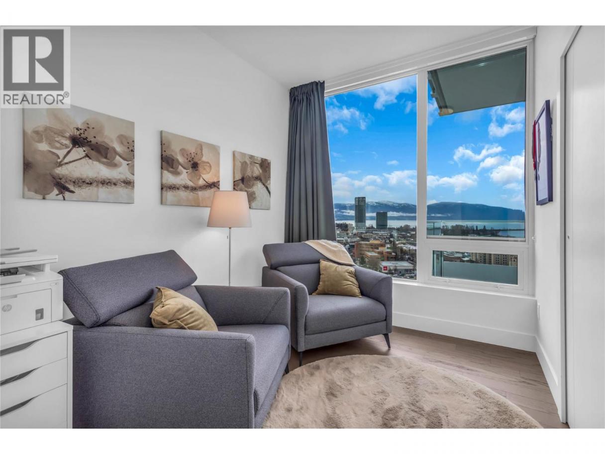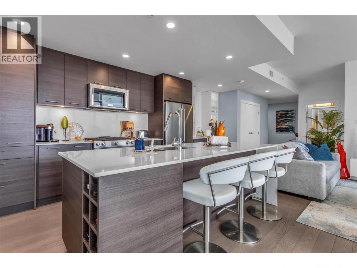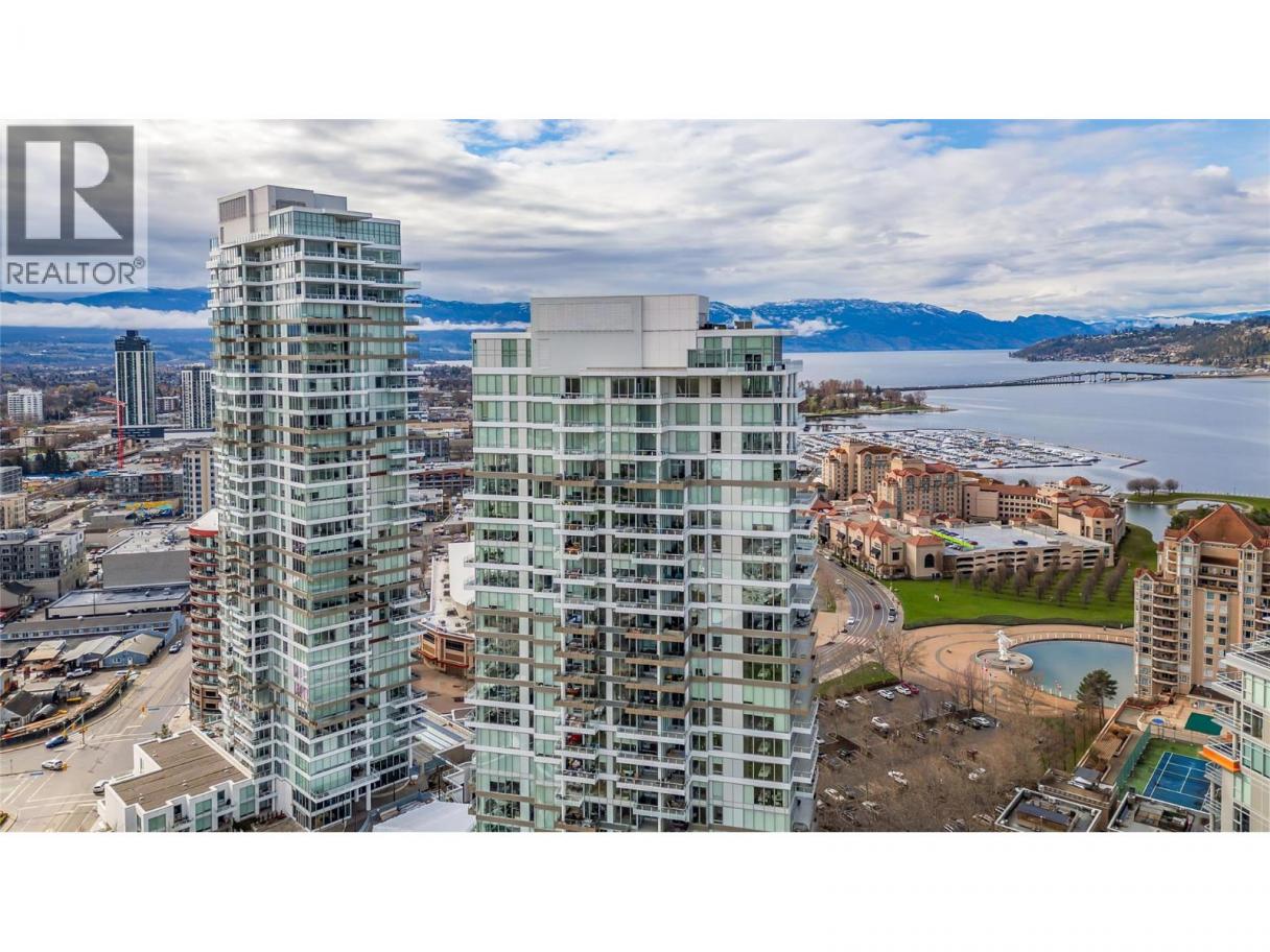 Not your average One Water Street apartment! UNOBSTRUCTED lake, city and mountain viewsfrom every window. HUGE deck. Lovingly maintained two bedroom unit with split floor plan. Bright island kitchen with built in coffee bar/ hutch, stainless steel appliances and loads of cabinets finished with pantry style pull out shelves. Spacious king accommodating primary suite with floor to ceiling windows, 5 piece ensuite and walk-in closet. Beautifully finished throughout. The 20th floor offers a view that is not so high you can't enjoy the view but high enough to be above any obstructions. One Water Street offers a 1.3-acre oasis of resort-style amenities. Residents enjoy access to two outdoor pools, inviting lounge areas with fire pits, a state-of-the-art fitness center with a yoga studio, an entertainment space, a business center, a pickleball court, and guest suites. The building's prime location places residents within easy reach of on-site restaurants and coffee shops, and within walking distance of the beach, the lake, downtown Kelowna, and the yacht club. To enhance convenience, the residence includes a dedicated parking stall and storage locker. This One Water Street condo is more than a home; it's a lifestyle, offering unparalleled views and a wealth of amenities in a prime location. (id:6769)