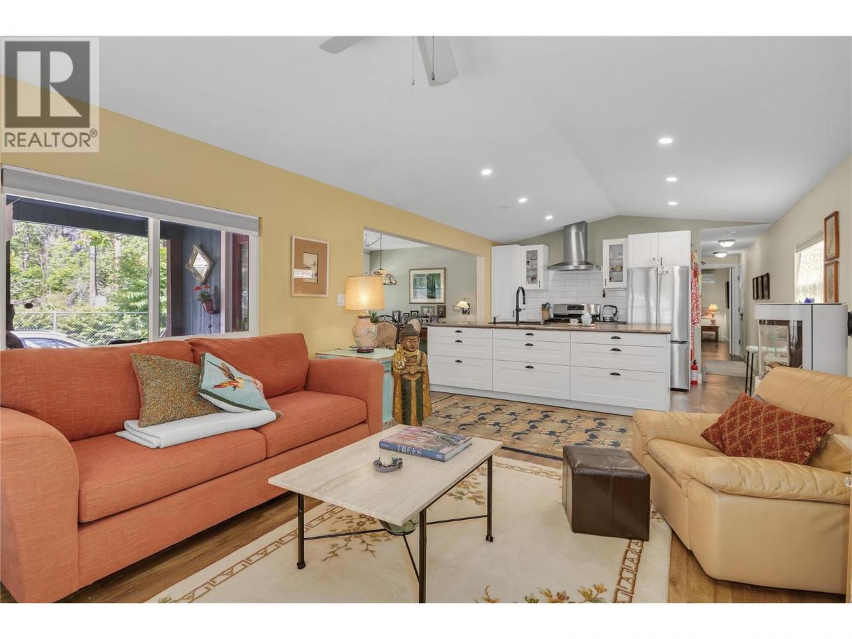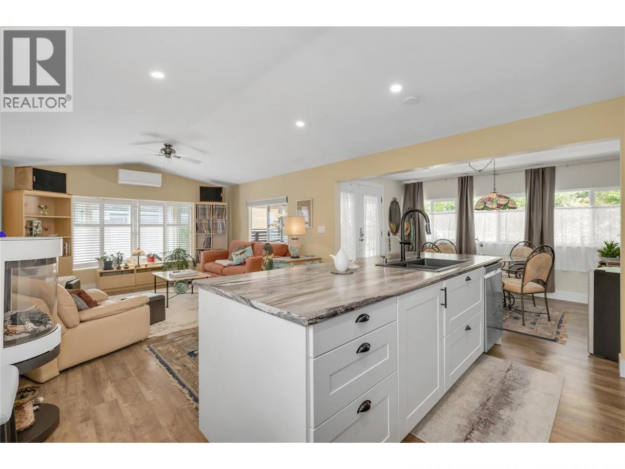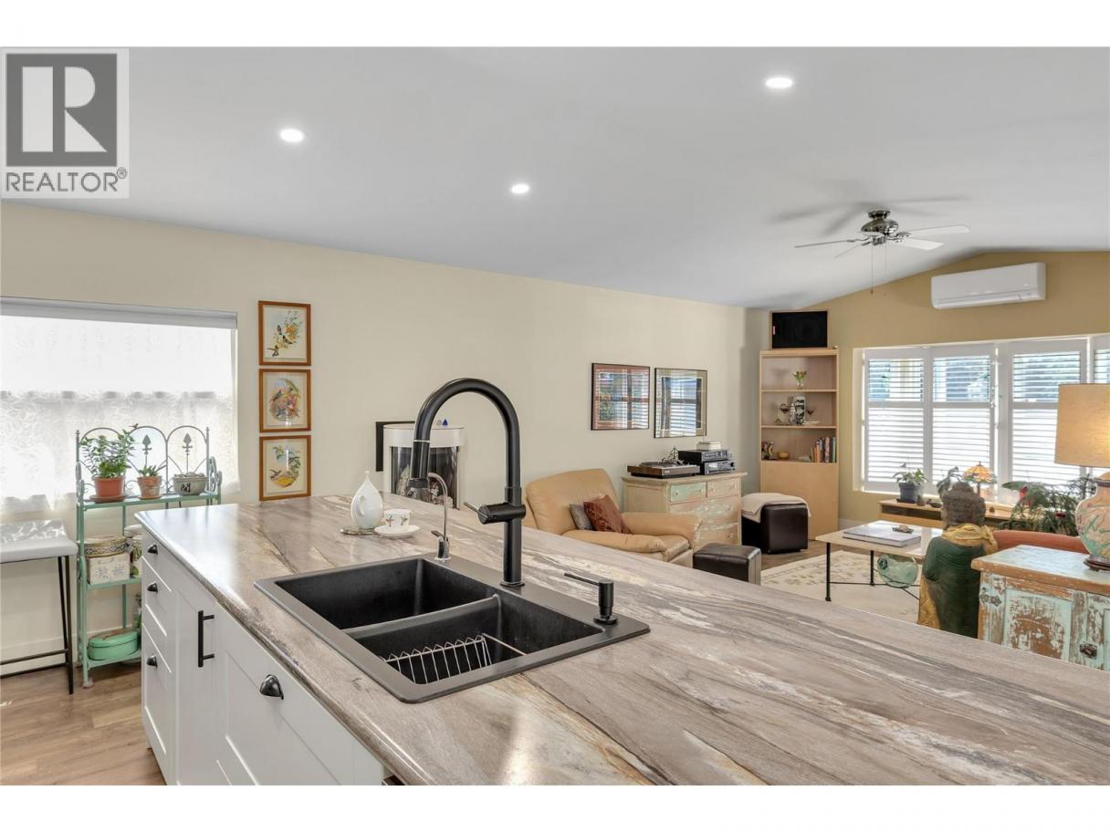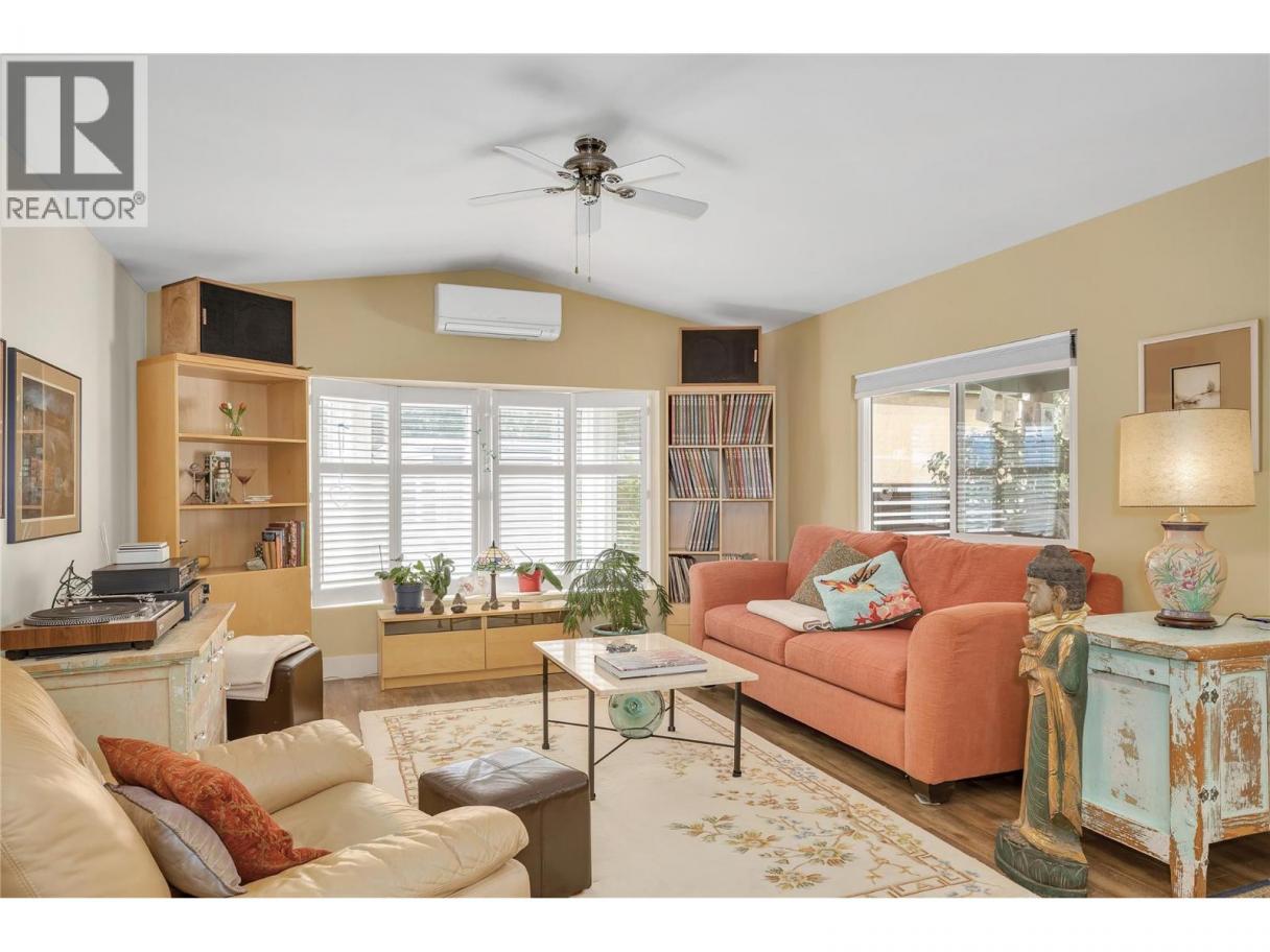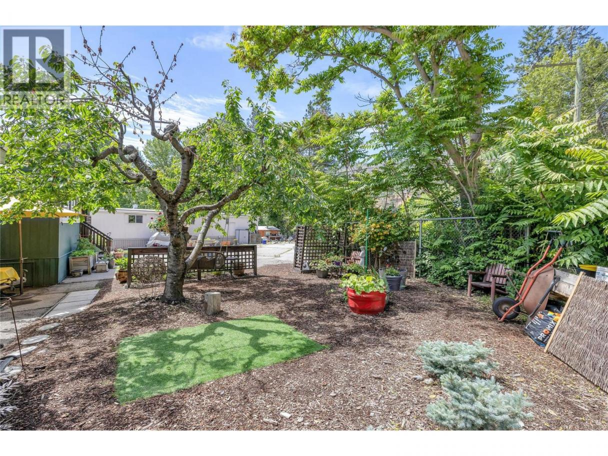 *OPEN HOUSE SUN MAY 3, 12-2.* View this beautifully updated and meticulously maintained manufactured home, rebuilt in 2020 and truly “Best in Show."" A quality property that offers a rare blend of style, function, and lifestyle. This home is perfectly placed in the sought-after Edgewater Pines community of Peachland, walking distance to the lake. Offering just under 1,000 sq. ft. of bright, modern living space, this 2 bedroom, 1 bath residence showcases many smart upgrades designed for comfort and efficiency, including a Mitsubishi heat pump, Enviro S50 gas fireplace, 2023 Rheem hot water tank, water purification system, and full stainless steel appliance package. This bright kitchen features an LG Energy Star dishwasher, Samsung gas range with convection oven, and a Samsung bottom-freezer refrigerator. Fresh Benjamin Moore paint and quality laminate flooring flow seamlessly throughout, creating a warm, contemporary feel. Step outside and discover a true gardener’s dream. The private south and west-facing yard is well placed and designed with covered deck and coordinated sunshades that invite you to relax outdoors and entertain in comfort. Multiple sitting areas are tucked throughout the garden, including a peaceful retreat beneath your own heritage cherry tree. Adding to the appeal is an attached hobbyist's shop with electrical service and underground power. The additional outbuildings include a generous garden shed, perfect for storage, projects, or creative pursuits. Located just a short stroll to Antlers Beach and Hardy Falls, this home offers an unbeatable Okanagan lifestyle surrounded by nature and tranquility. Whether you’re downsizing, retiring, or searching for the perfect lakeside retreat, this property truly lives up to its name, ""Best in Show."" Book your private showing today. (id:6769)