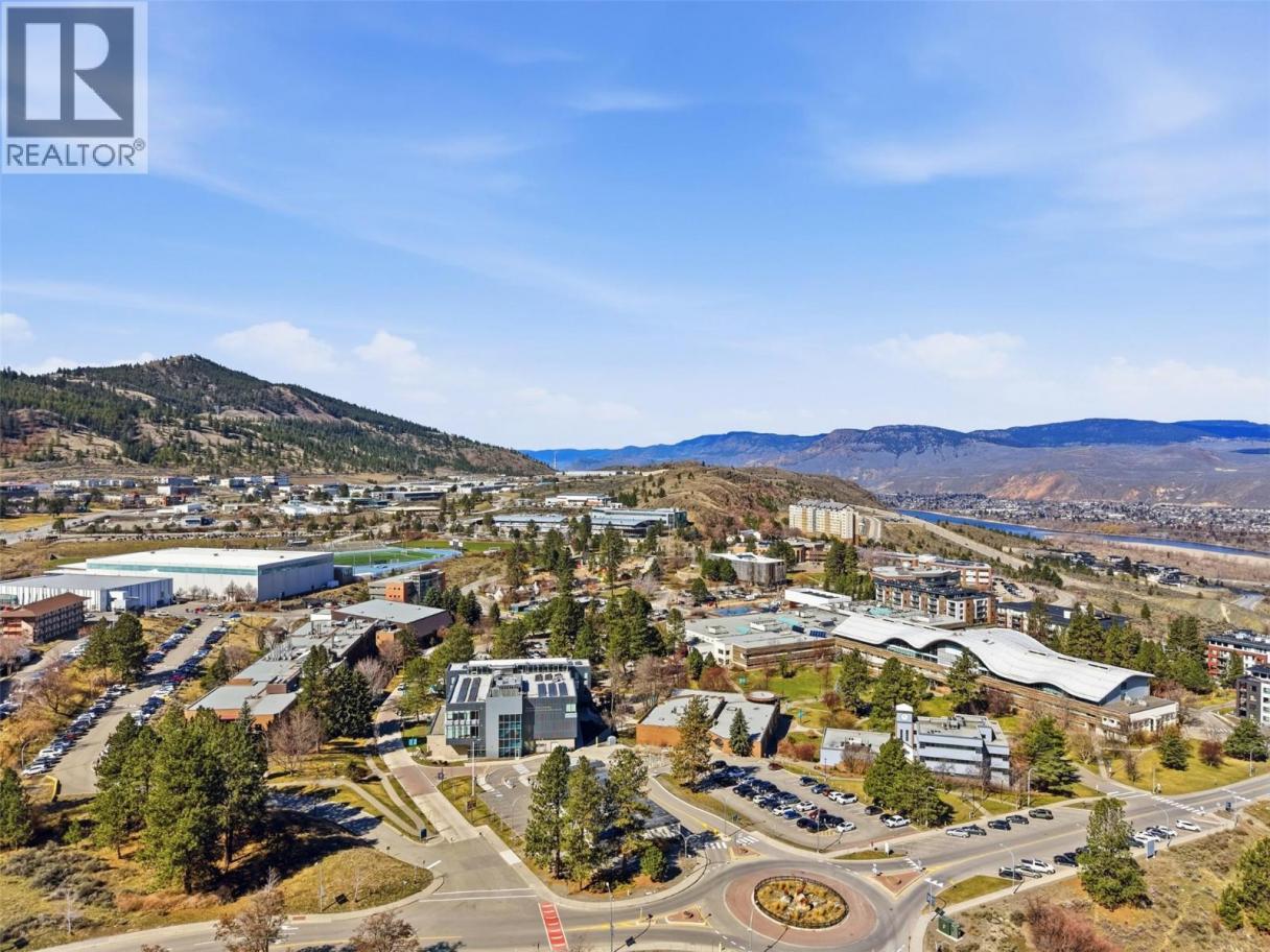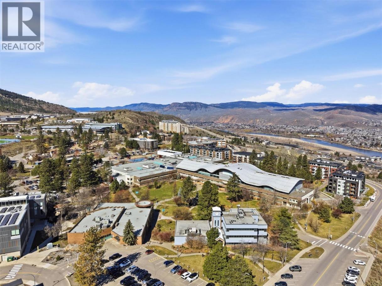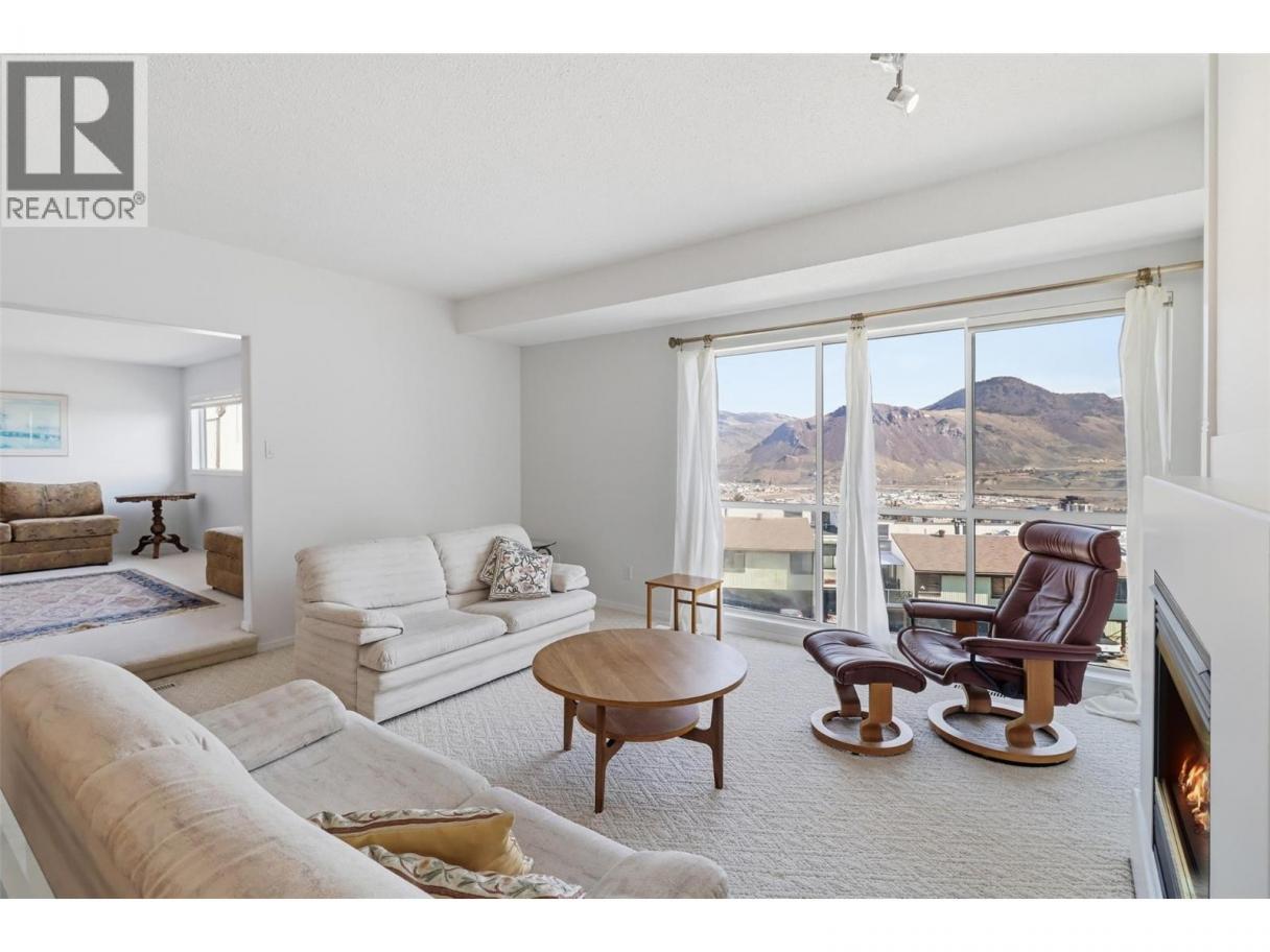 Perched on the top floor, this rare three-bedroom condo offers an elevated lifestyle defined by space, light, unforgettable views and of course lifestyle. Soaring 14-foot vaulted ceilings create an airy, open atmosphere, perfectly complemented by a modern layout designed for both comfort and entertaining. Expansive windows frame panoramic, breathtaking views of the city and surrounding mountains—your daily backdrop from sunrise to sunset. The open-concept living area w/ gas fire place flows seamlessly, making it easy to host, relax, or simply take in the scenery. Each bedroom provides flexibility for family, guests, or a home office, all while maintaining a sense of privacy and tranquility above it all. Large rear deck with upgraded aluminum roof. Step outside and enjoy the convenience of being just a walk to Thompson Rivers University, the hospital, and the vibrant heart of downtown. Cafes, restaurants, shops, and everyday amenities are all within easy reach, making this location ideal for students, professionals, and anyone seeking a connected, walkable lifestyle. Whether you’re starting your day with a coffee overlooking the mountains or winding down with city lights below, this rare unit offers a rare blend of style, convenience, and inspiring views. All measures approx buyer to verify if important - Measurements taken from Essentials Media digital floor plan. (id:6769)