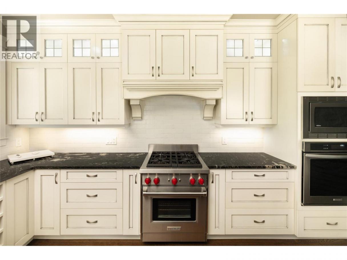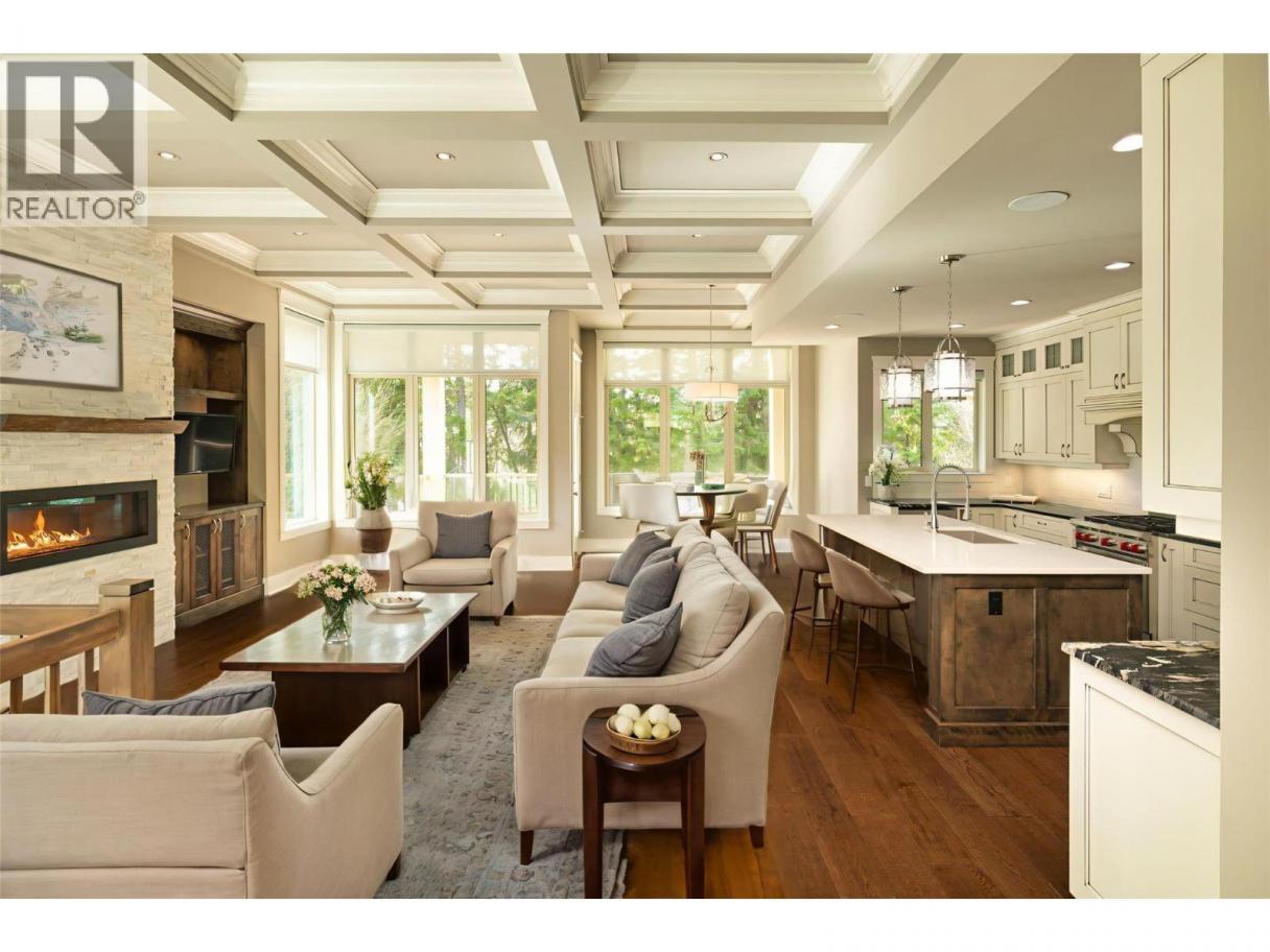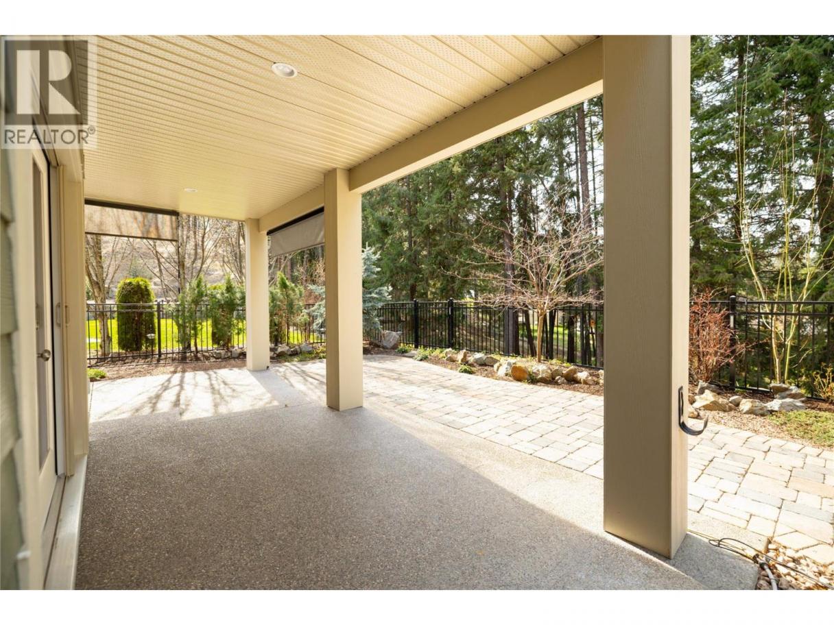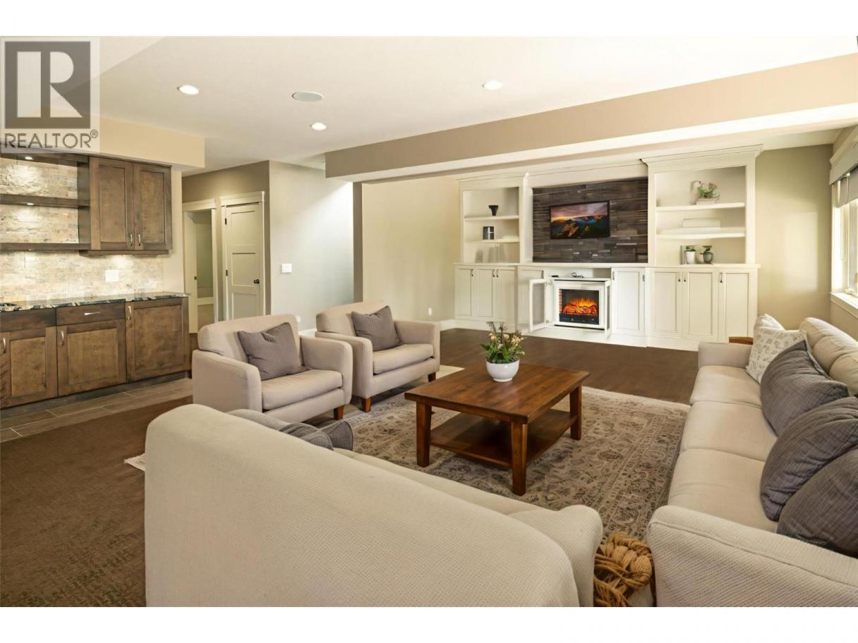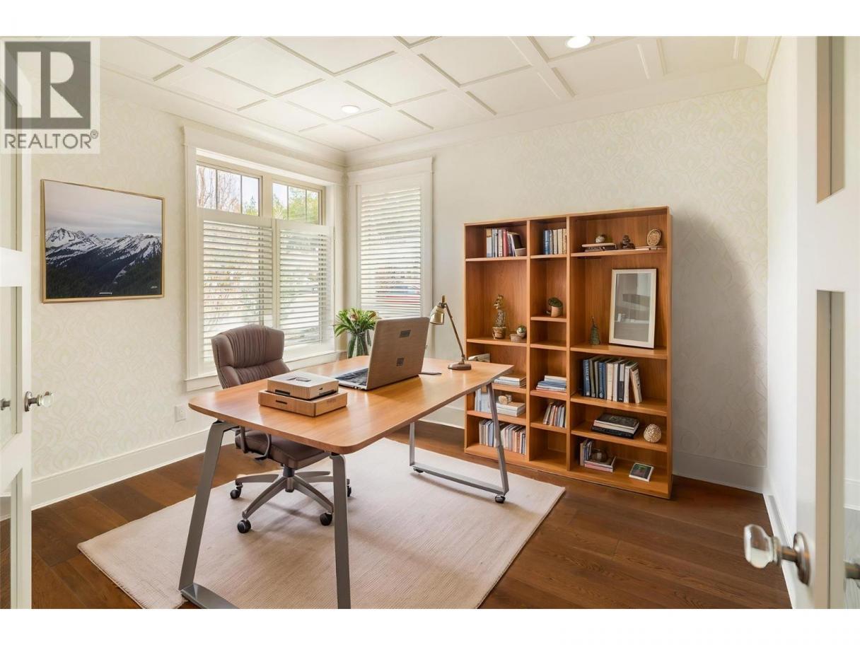 Set within the sought-after community of Gallaghers Canyon, this beautifully finished home offers timeless design, thoughtful upgrades, and a private setting surrounded by mature greenery. Striking curb appeal with stone and Hardie siding, a covered entry, and a charming front patio welcomes you in. Inside, tall ceilings and coffered detailing create a refined feel throughout. The kitchen blends style and function with classic white cabinetry, large island, Wolf range, and walk-in pantry. The living room centres around a floor-to-ceiling stone fireplace with custom built-ins, while a main floor office/den with custom ceiling detail adds versatility. The primary suite is a true retreat with crown moulding accents, designer wallpaper, and a well-appointed ensuite featuring dual sinks, a soaker tub, and walk-in shower. Cohesive cabinetry and finishes carry throughout the home. The lower level is designed for entertaining, offering a spacious recreation area, family room with built-ins, and a stunning wet bar with storage. Walk out to a covered patio overlooking private, lush greenspace. Two additional bedrooms and a full bathroom complete the space. Low-maintenance landscaping, water feature in the front, built-in speakers, and electric blinds add to the home’s comfort and convenience. Enjoy the Gallaghers lifestyle with access to golf, fitness centre, indoor pool, tennis courts, clubhouse, and scenic walking trails—just minutes from everyday amenities. (id:6769)