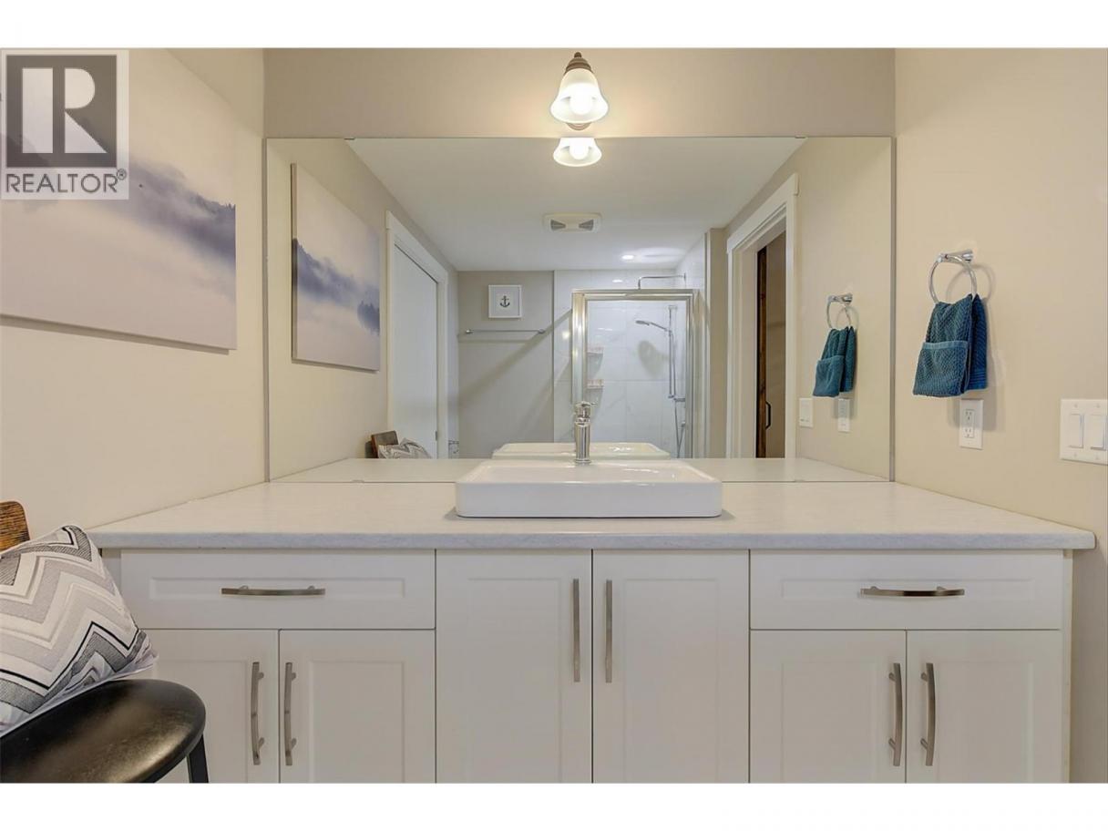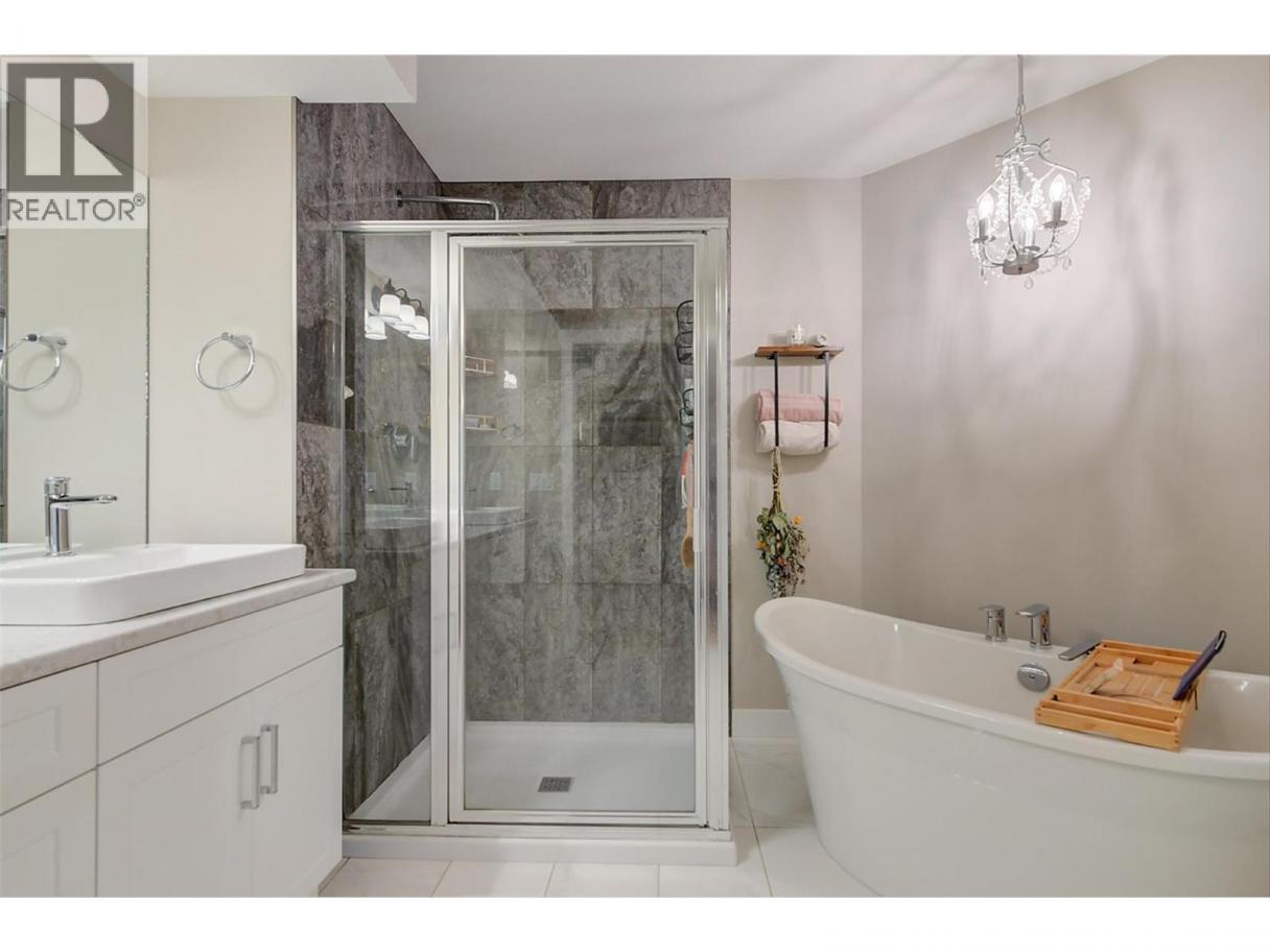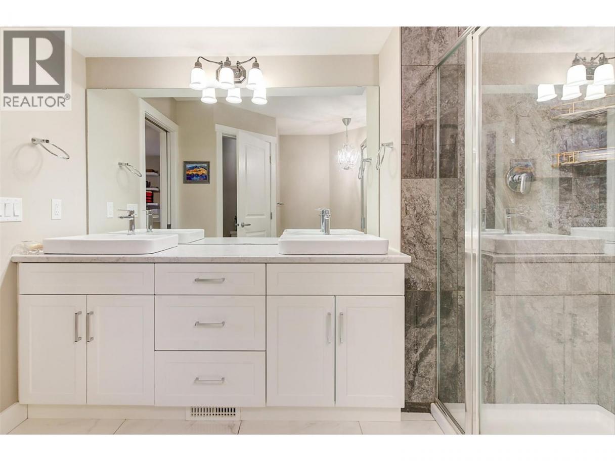 MASSIVE ROOFTOP PATIO, with unobstructed views of LAKE and MOUNTAINS. Rooftop HOT TUB and Rooftop GREENHOUSE included!! Personal gas-powered WINE BARREL SAUNA both dry or steam included! Outdoor shower for cold exposure after sauna session, personal spa experience at home! Upgrades include landscaping with built-in bench around fire pit and beautiful patio stone area. Unit has total of 4 beds & 4 baths! Only unit with NO CARPET, beautiful scratch-proof flooring. FINISHED WALK-OUT BASEMENT with PRIVATE ENTRANCE. HUGE bright kitchen with large island, modern quartz countertops, walk-in pantry, and beautiful cabinetry! OPEN CONCEPT living and dining room off kitchen with TWO fireplaces and high ceilings. Easily access BBQ, fire pit or sauna from quaint wrap around porch off kitchen to backyard. Oversized MASTER bedroom with WALK-IN closet, gorgeous ENSUITE BATHROOM with his and her sinks, private toilet room, and luxurious freestanding soaker tub! Backyard faces south, sun all day! Mature trees and lush vegetated hillside provide privacy, shade, and tranquility. Large 2 car GARAGE with built in cabinets and storage shelves. NO pet restrictions, dog pen, dog friendly community. Walking distance to Starbucks, yoga studio, Pub, Marina, Restaurants, local shops, etc. Easy access to paved bike and walking trail around Wood Lake with access to Okanagan Rail Trail, picnic area, beach, and off-leash dog park with beach, etc. (id:6769)