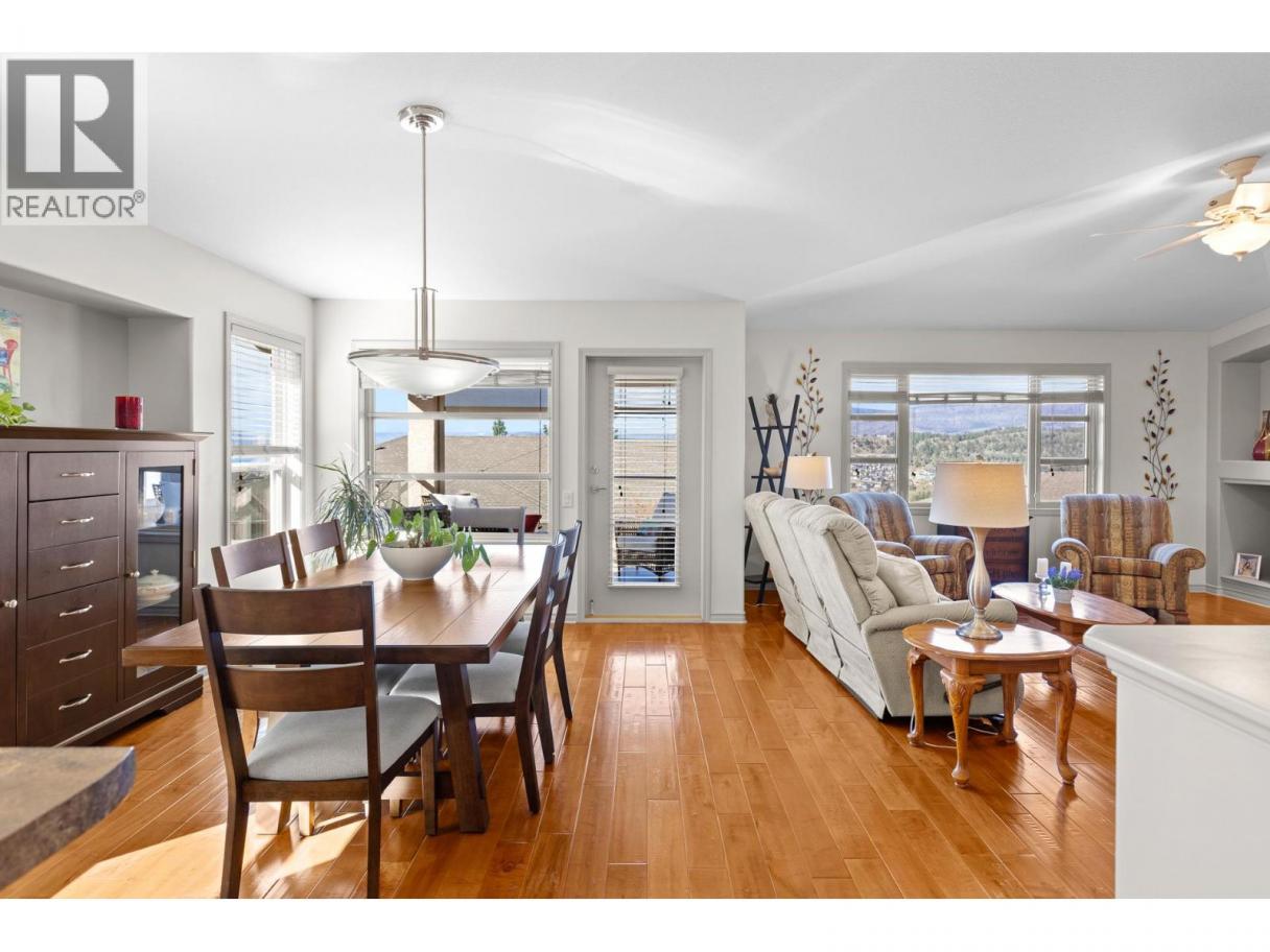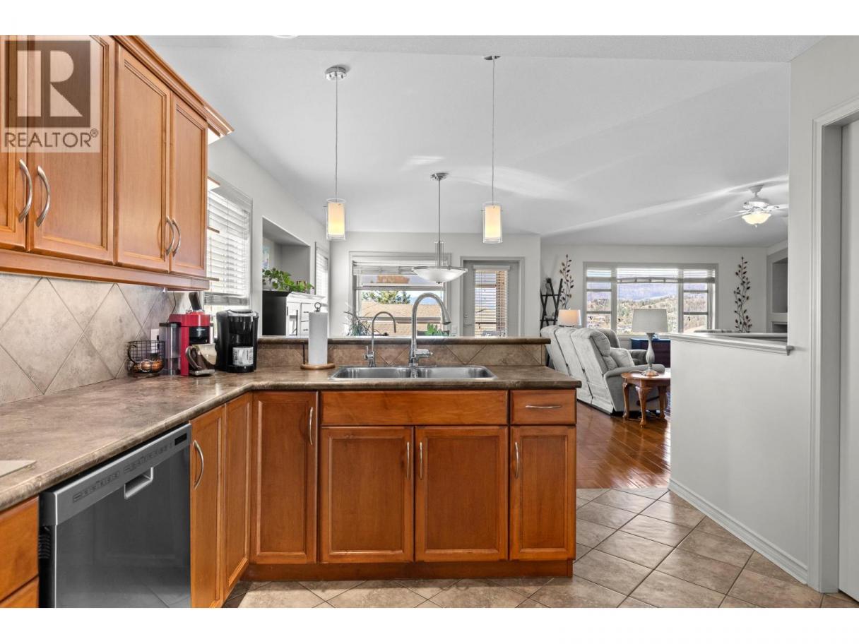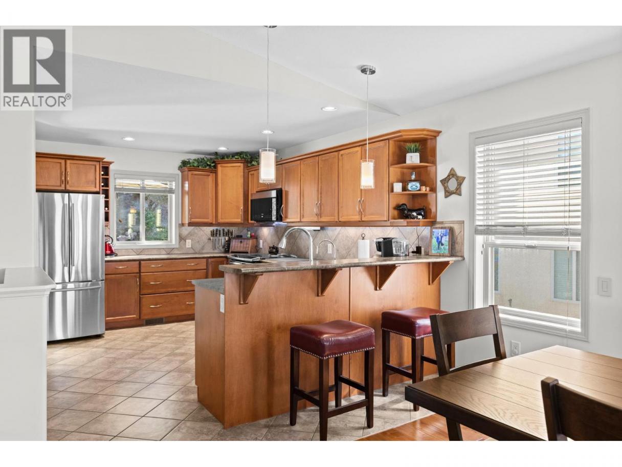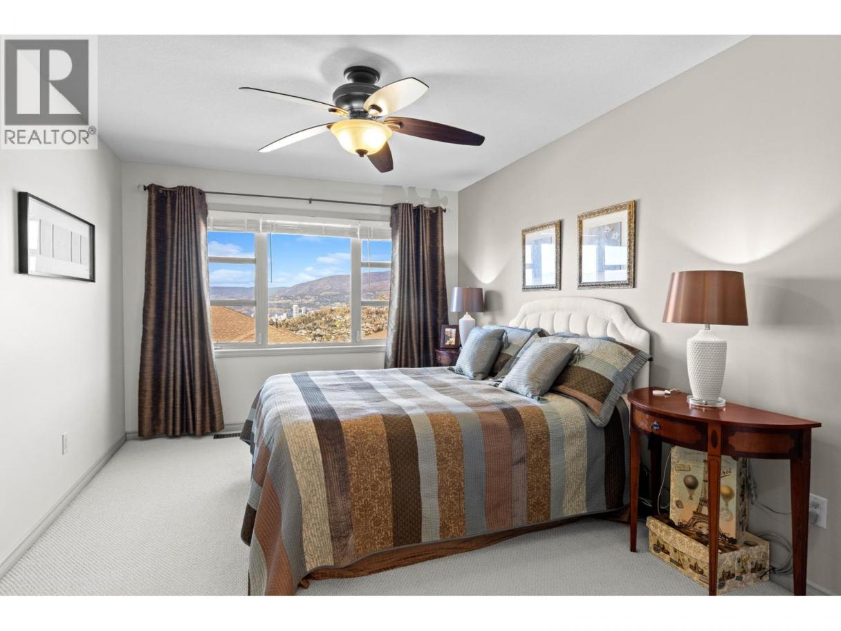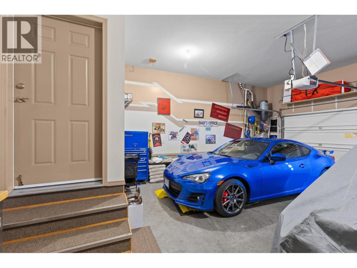 This beautifully maintained townhome in the sought-after Dilworth Mountain area offers a spacious upper level featuring an open-concept living, dining, and kitchen area with a vaulted ceiling. Step out onto the sundeck from the dining area to enjoy stunning mountain views and a glimpse of the lake. The upper level also includes a primary bedroom with a walk-in closet and a 3-piece ensuite, a second bedroom, a full bath, and a laundry area. The kitchen offers a walk-in pantry and provides access to a stunning private backyard and patio. The ground level has a large double garage, family room, guest bedroom, full bath, and plenty of storage space and workshop. Retractable solar blind on the front deck. The sellers have priced the home competitively for the market with quick possession available. Pet restriction:2 dogs or 1 dog 1 cat, no vicious breed (id:6769)