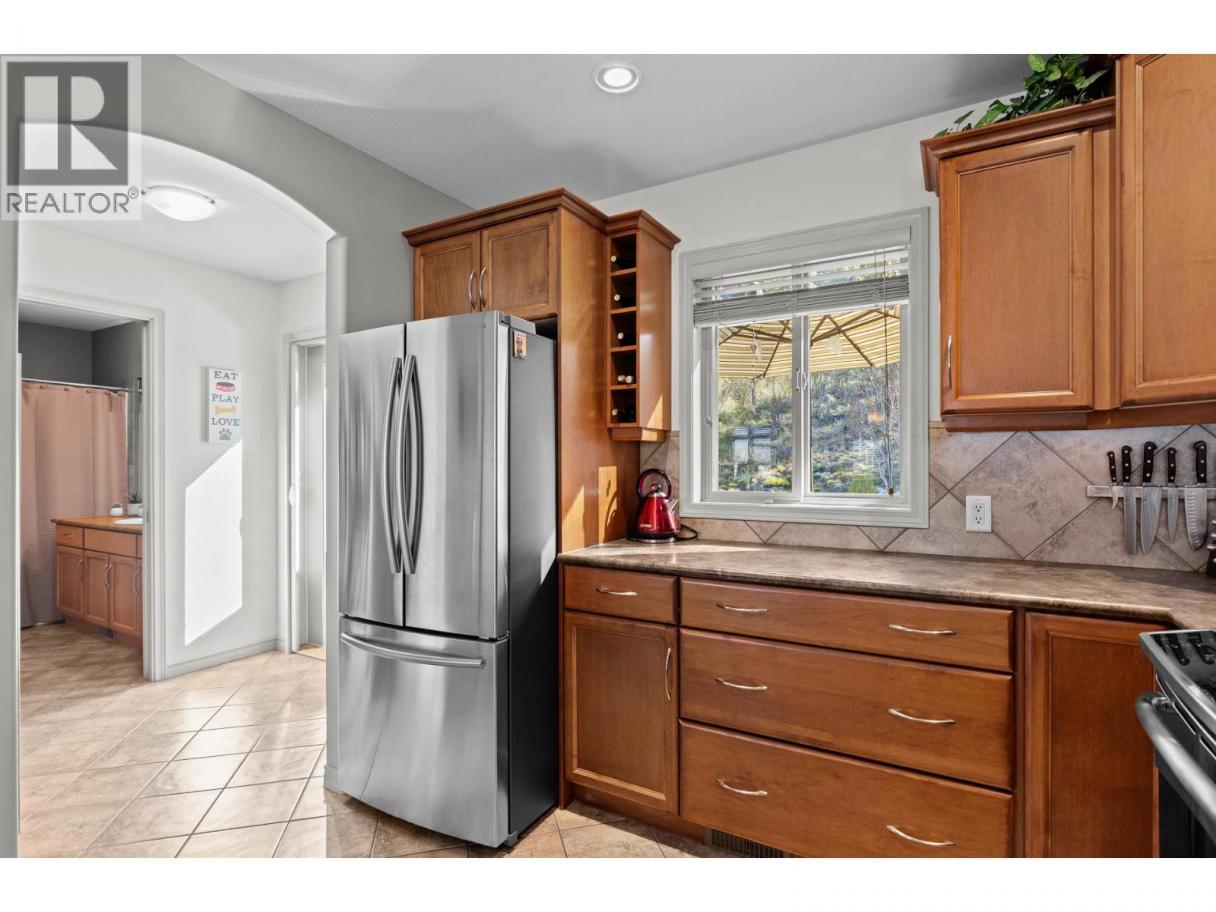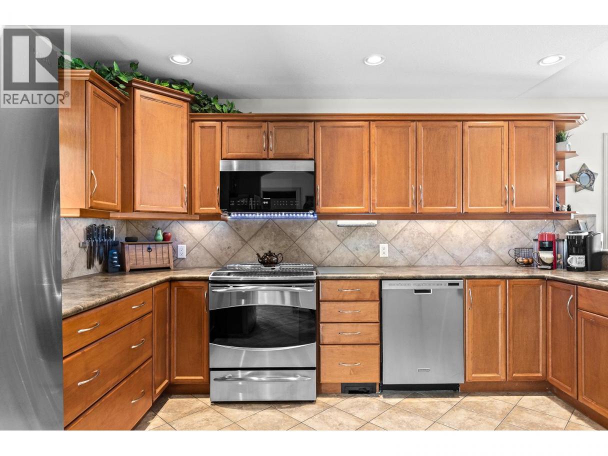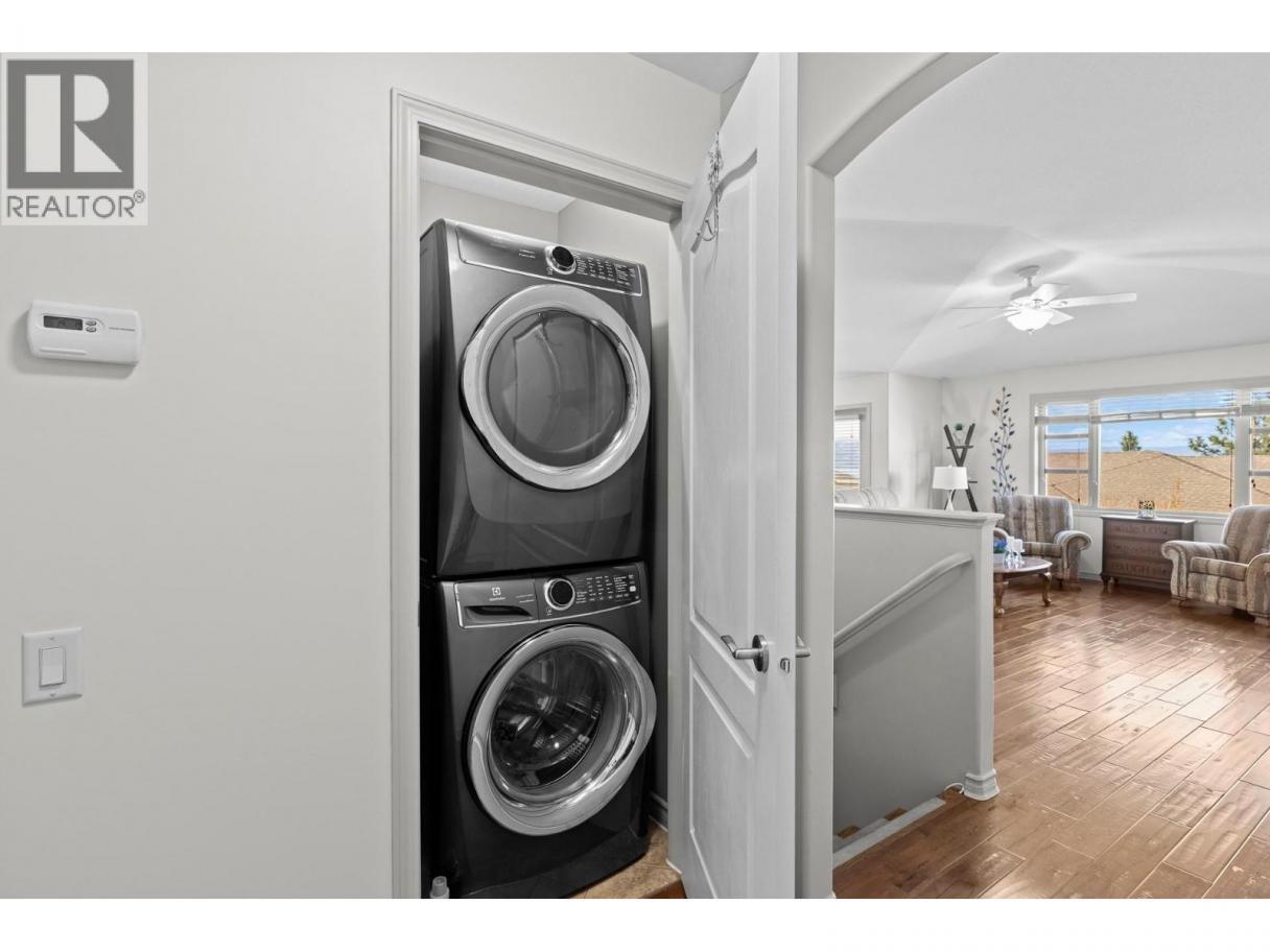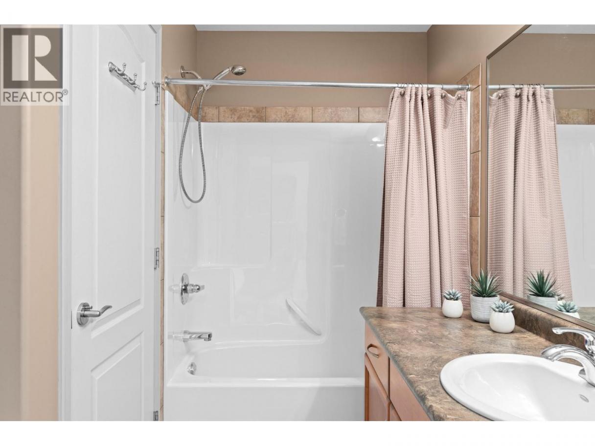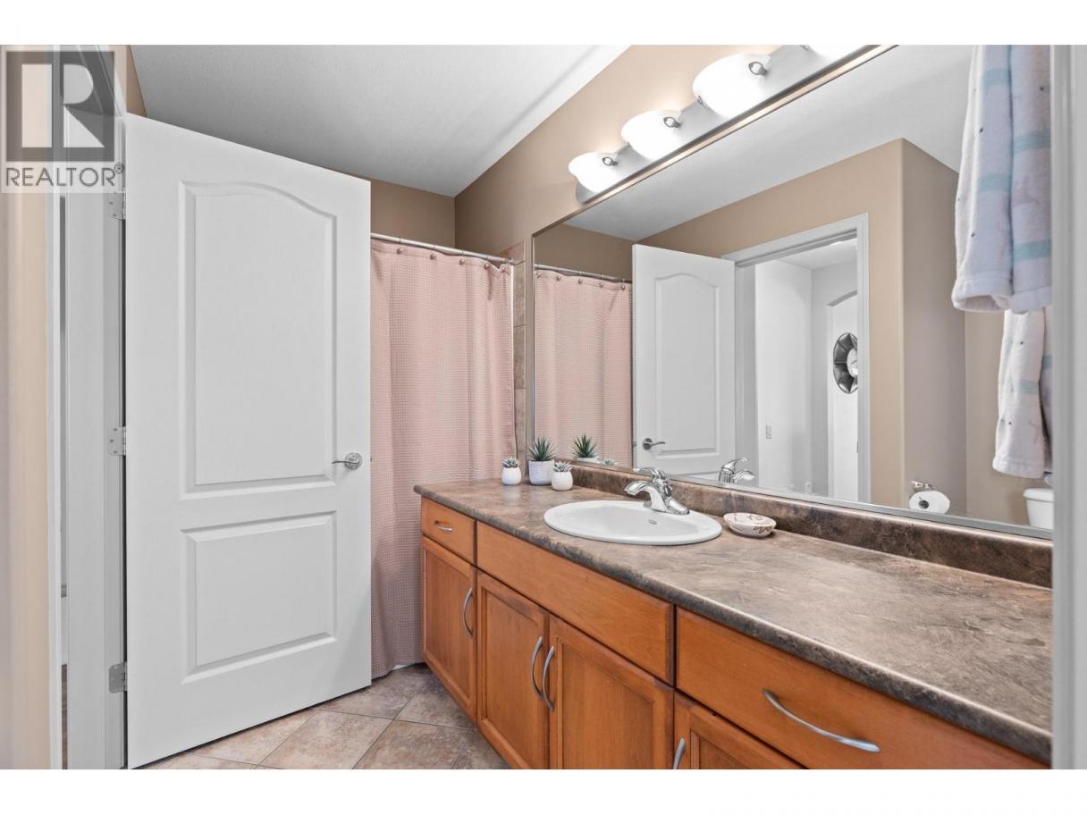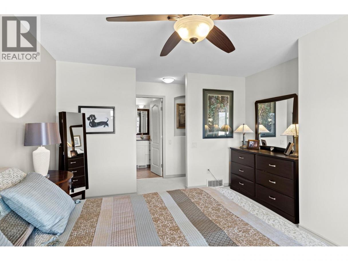 This beautifully maintained townhome in the sought-after Dilworth Mountain area offers a spacious upper level featuring an open-concept living, dining, and kitchen area with a vaulted ceiling. Step out onto the sundeck from the dining area to enjoy stunning mountain views and a glimpse of the lake. The upper level also includes a primary bedroom with a walk-in closet and a 3-piece ensuite, a second bedroom, a full bath, and a laundry area. The kitchen offers a walk-in pantry and provides access to a stunning private backyard and patio. The ground level has a large double garage, family room, guest bedroom, full bath, and plenty of storage space and workshop. Retractable solar blind on the front deck. The sellers have priced the home competitively for the market with quick possession available. Pet restriction:2 dogs or 1 dog 1 cat, no vicious breed (id:6769)