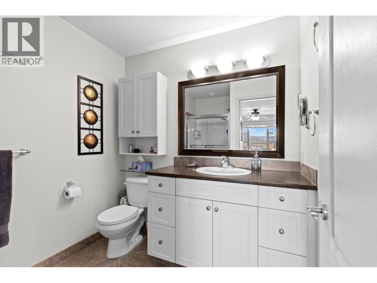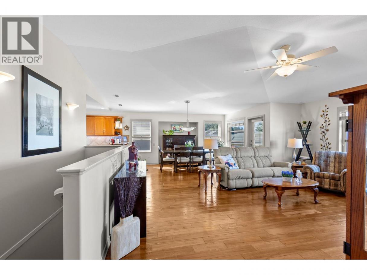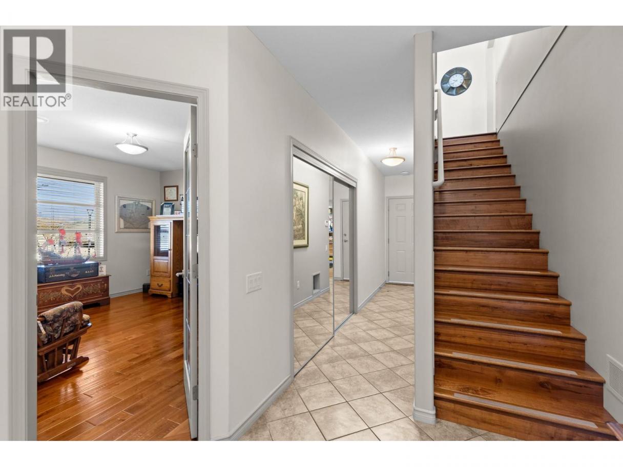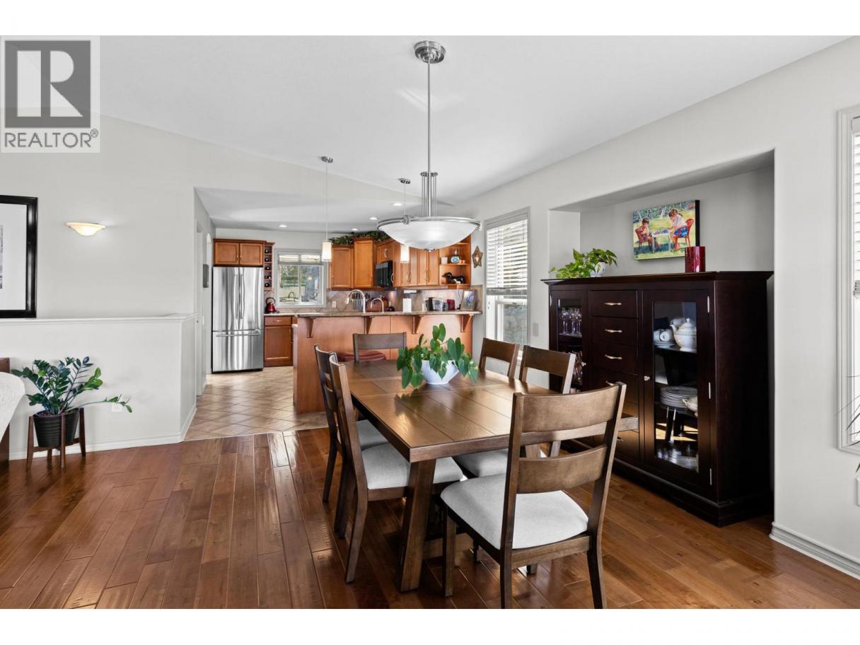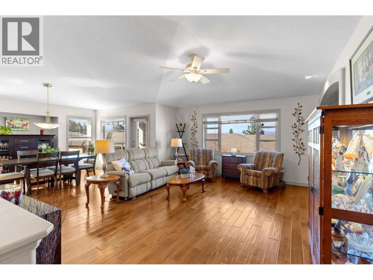 This beautifully maintained townhome in the sought-after Dilworth Mountain area offers a spacious upper level featuring an open-concept living, dining, and kitchen area with a vaulted ceiling. Step out onto the sundeck from the dining area to enjoy stunning mountain views and a glimpse of the lake. The upper level also includes a primary bedroom with a walk-in closet and a 3-piece ensuite, a second bedroom, a full bath, and a laundry area. The kitchen offers a walk-in pantry and provides access to a stunning private backyard and patio. The ground level has a large double garage, family room, guest bedroom, full bath, and plenty of storage space and workshop. Retractable solar blind on the front deck. The sellers have priced the home competitively for the market with quick possession available. Pet restriction:2 dogs or 1 dog 1 cat, no vicious breed (id:6769)