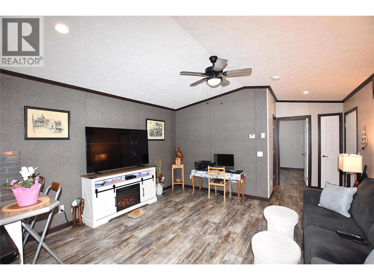 Well-maintained 2-Bedroom, 2-Bathroom 8 year old Modular Home in Louis Brothers Landing Mobile Home Park Discover this beautifully maintained 1056 sq. ft. modular home nestled on a spacious lot in the desirable Louis Brothers Landing Mobile Home Park, located at the scenic Head of the Lake in Vernon. Just a 12-minute drive to town and only 4 minutes to the golf course, this home offers the perfect blend of comfort and convenience. Features include: Open plan design with bedrooms on opposite ends for privacy Kitchen with built-in cabinetry, a pantry and sleek black appliances Spacious master bedroom with a walk-in closet and an en-suite with a double shower Large 35 x 12 partially covered deck, ideal for outdoor entertaining Fenced yard for pets and children Central air conditioning for year-round comfort Water softener and reverse osmosis system for quality water Pet-friendly community with park approval Boat and RV parking available Additional Details: Monthly pad rental of $429, which includes water, weekly garbage pickup, and road maintenance Shared access to beautiful Lake Okanagan Peaceful, country-like setting with quiet surroundings This home combines comfort, functionality, and a fantastic location. Don't miss the opportunity to enjoy lakeside living in a welcoming community! (id:6769)